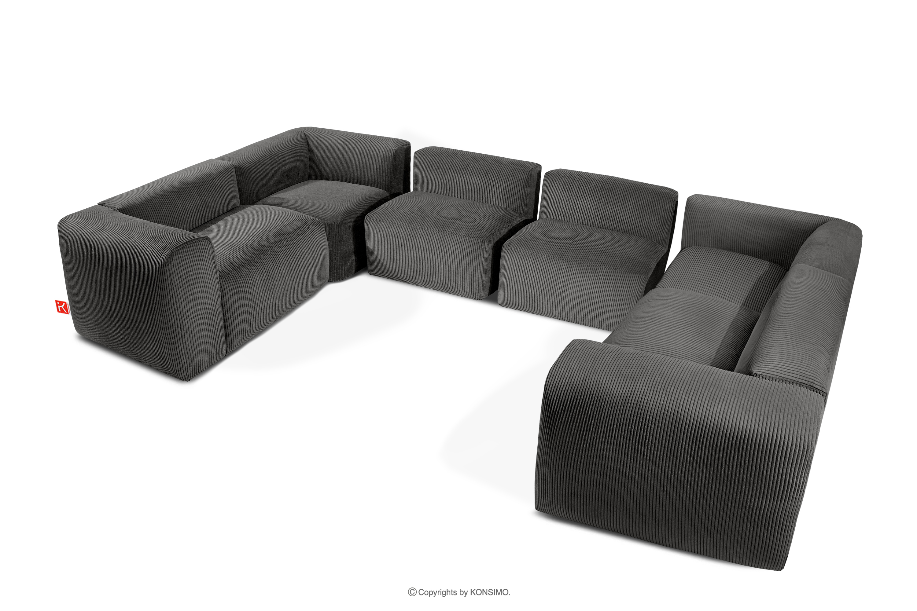 für das Produkt Großes modulares Ecksofa in U-Form aus Kordstoff grau