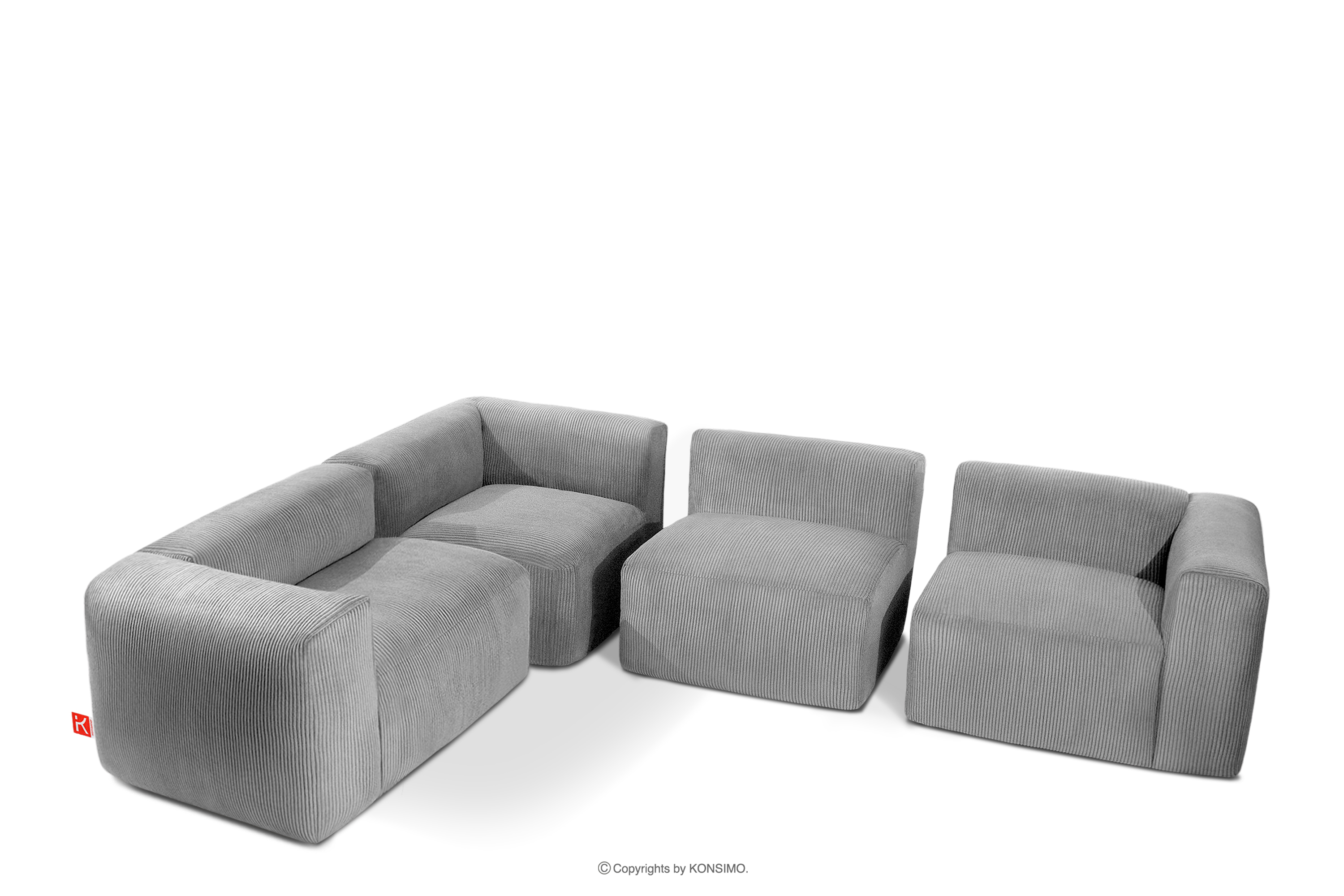 BUFFO Komfortables modulares Ecksofa aus Kordstoff hellgrau, links