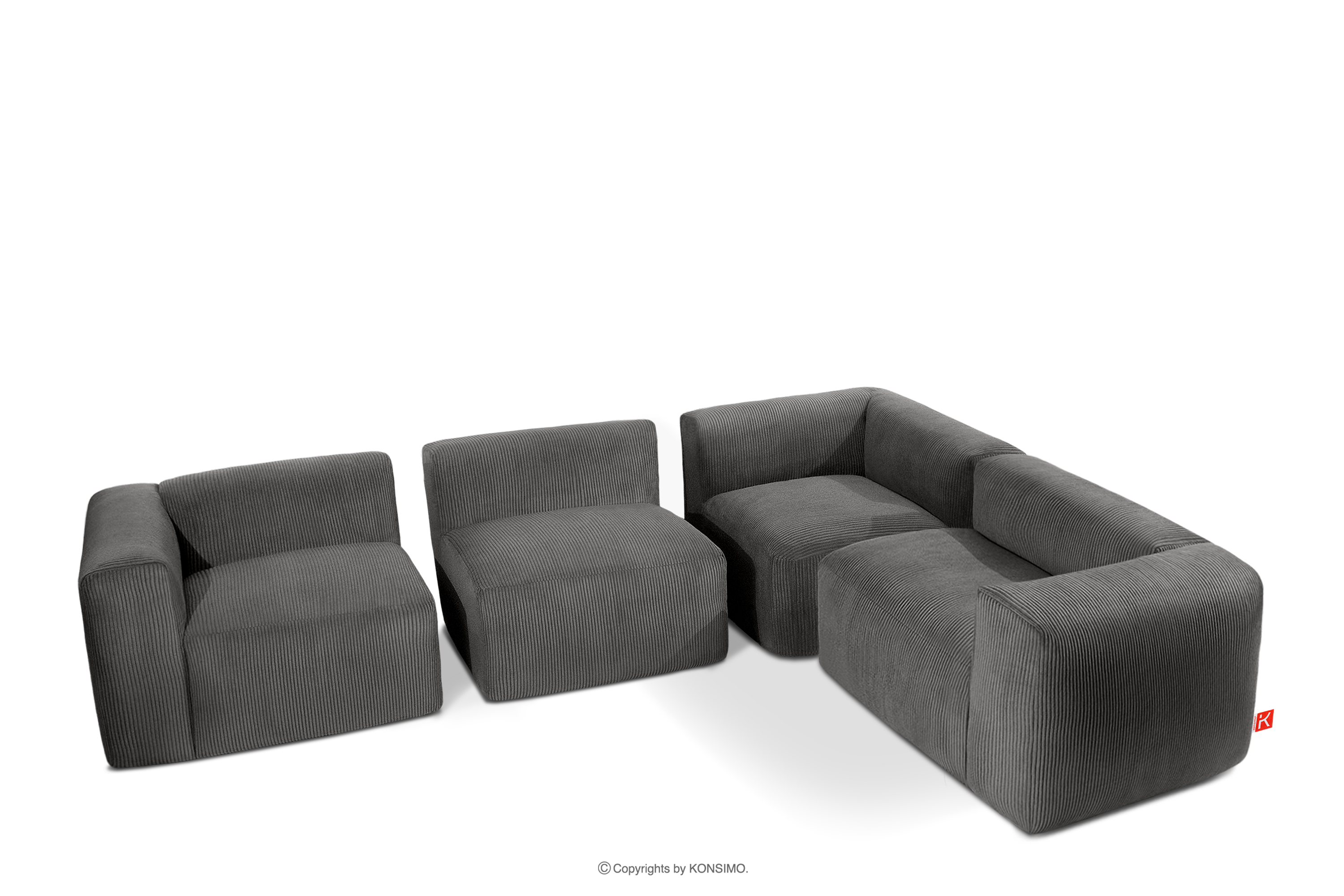 Das bequeme modulare Ecksofa Kordstoff grau rechts wird mit Sicherheit zum Mittelpunkt eines jeden Wohnzimmers. Das Gestell ist aus strapazierfähigem Kiefern- und Buchenholz gefertigt, was nicht nur für Solidität, sondern auch für Ästhetik sorgt. Darüber hinaus erhöht die Verwendung von langlebigen Span- und Faserplatten die Stabilität und Langlebigkeit des Möbels. So bleiben sie auch bei intensiver Nutzung formstabil und widerstandsfähig gegen alle Herausforderungen des täglichen Lebens.