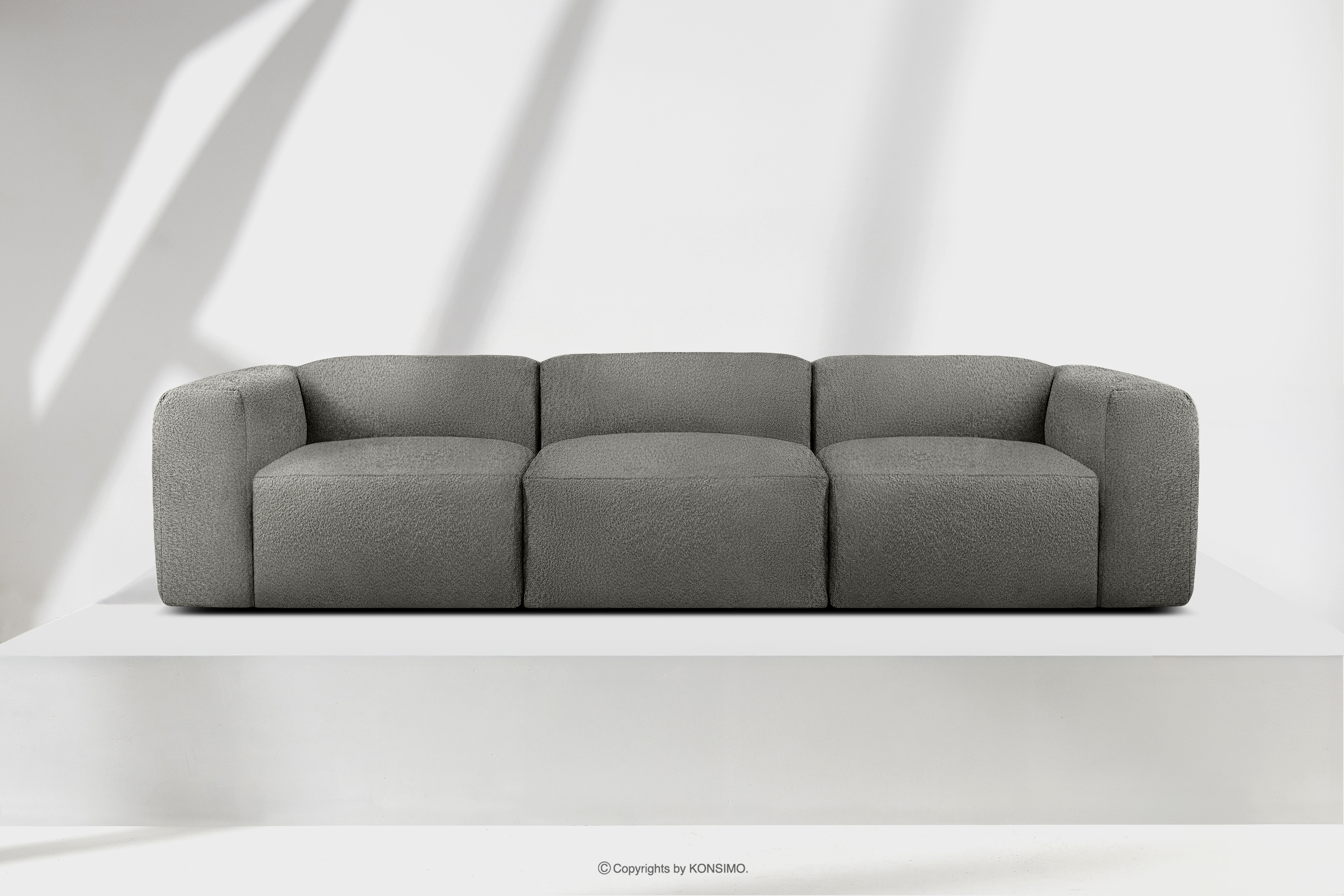 für das Produkt Weiches Dreisitzer-Sofa aus Bouclé-Stoff in Stahlgrau