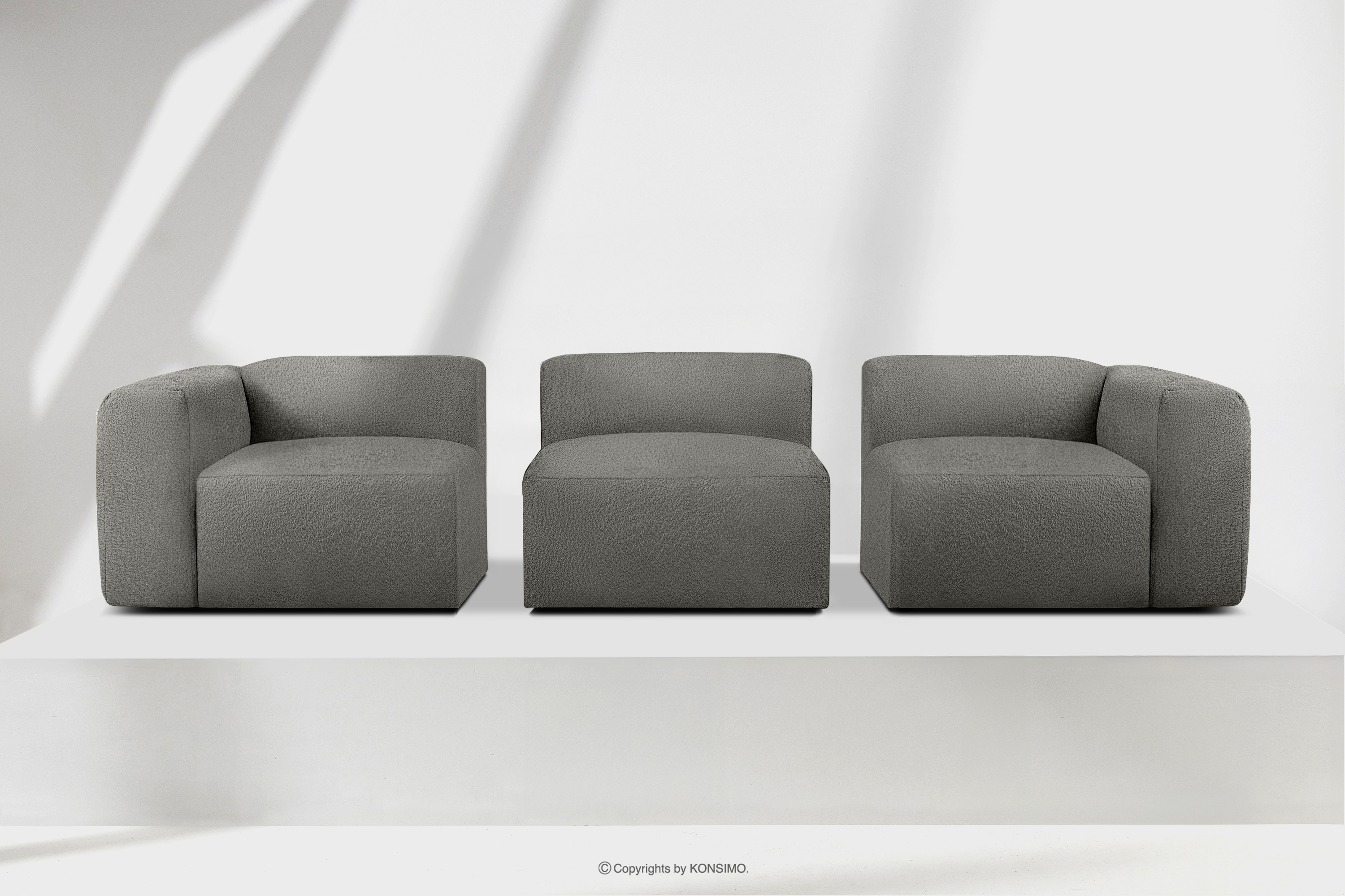 BUFFO Mehr aus der Kollektion Weiches Dreisitzer-Sofa aus Bouclé-Stoff in Stahlgrau- Farbe Stahl