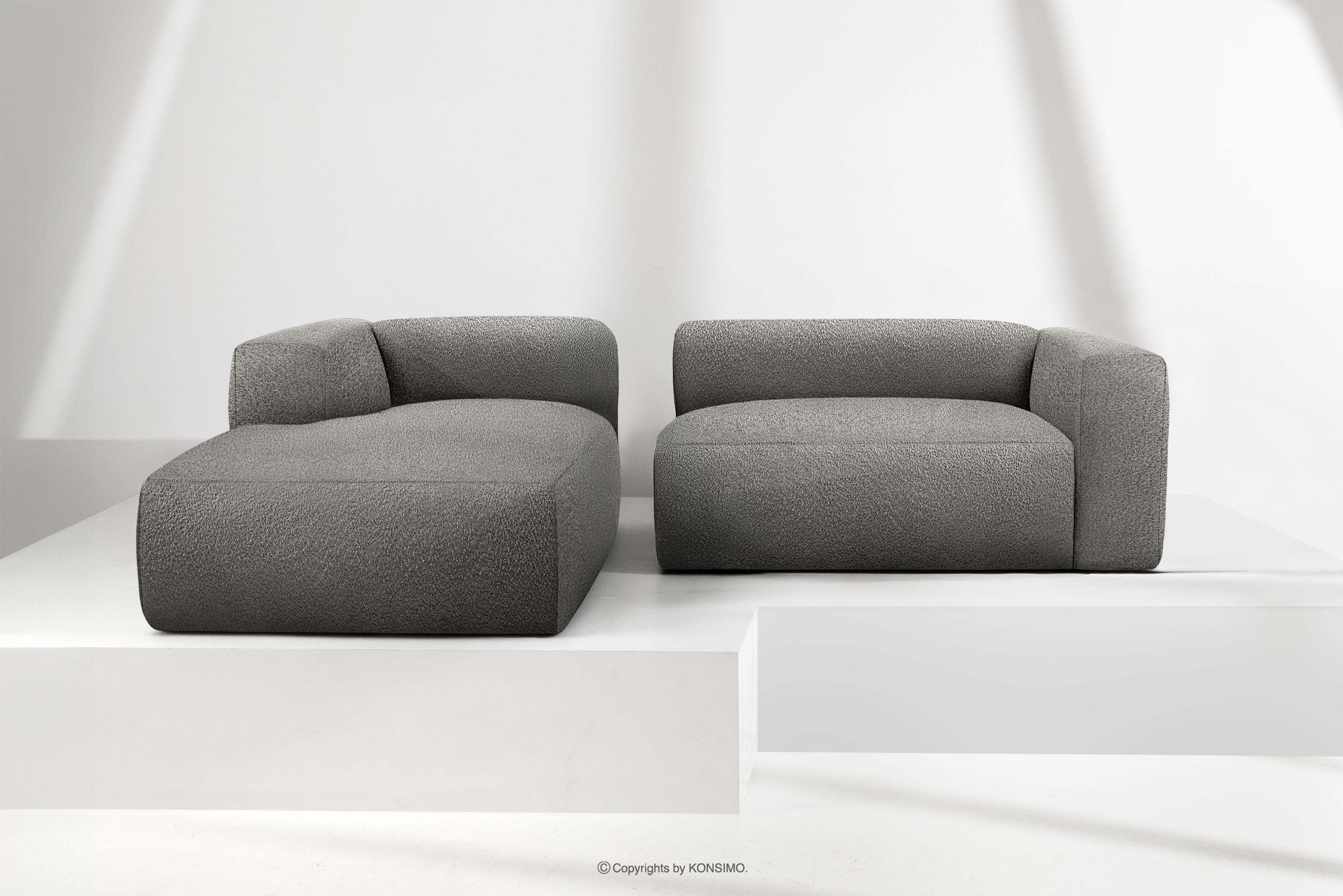 BUFFO Mehr aus der Kollektion Weiches Ecksofa aus Bouclé-Stoff links stahlgrau- Farbe Stahl