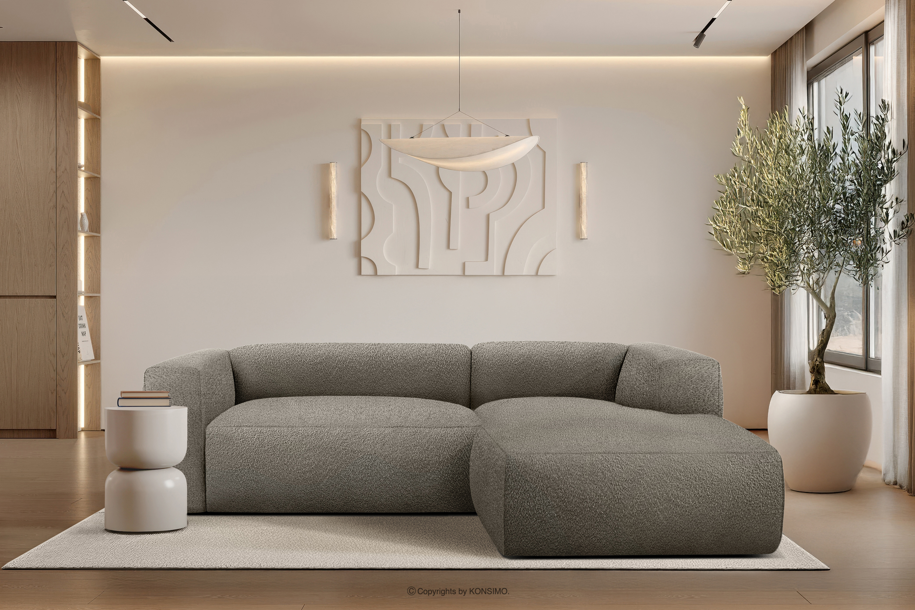 BUFFO Mehr aus der Kollektion Weiches Ecksofa aus Bouclé-Stoff rechts kühles Braun- Farbe Kühles Braun