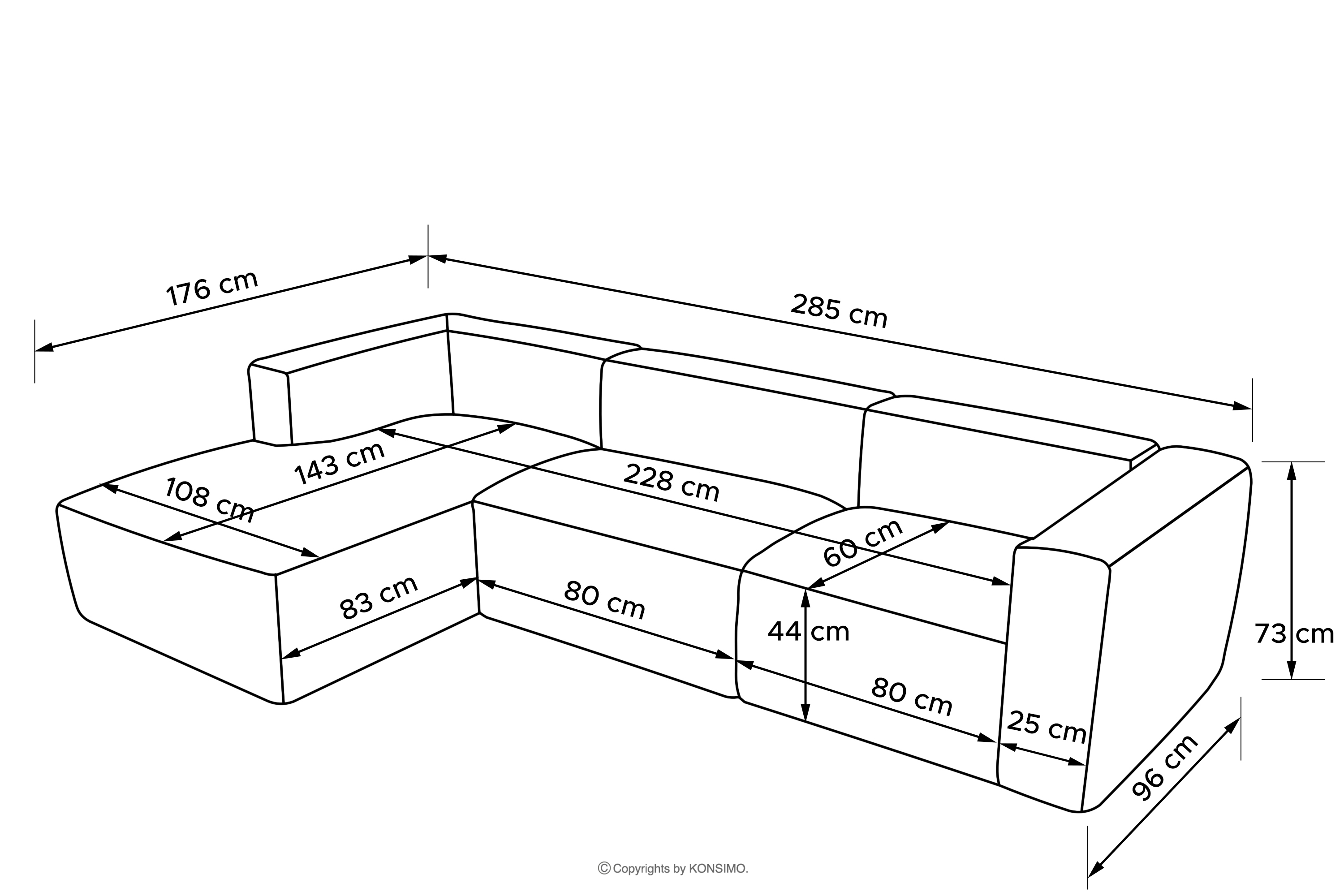 Großes weiches Ecksofa aus Bouclé-Stoff links dunkelgrün wird sicherlich zum Mittelpunkt jedes Wohnzimmers werden. Der Rahmen wurde aus strapazierfähigem Kiefer- und Buchenholz gefertigt, was nicht nur für Stabilität, sondern auch für eine ästhetische Optik sorgt. Darüber hinaus erhöht die Verwendung von strapazierfähigen Span- und Faserplatten die Stabilität und Haltbarkeit des Möbelstücks.