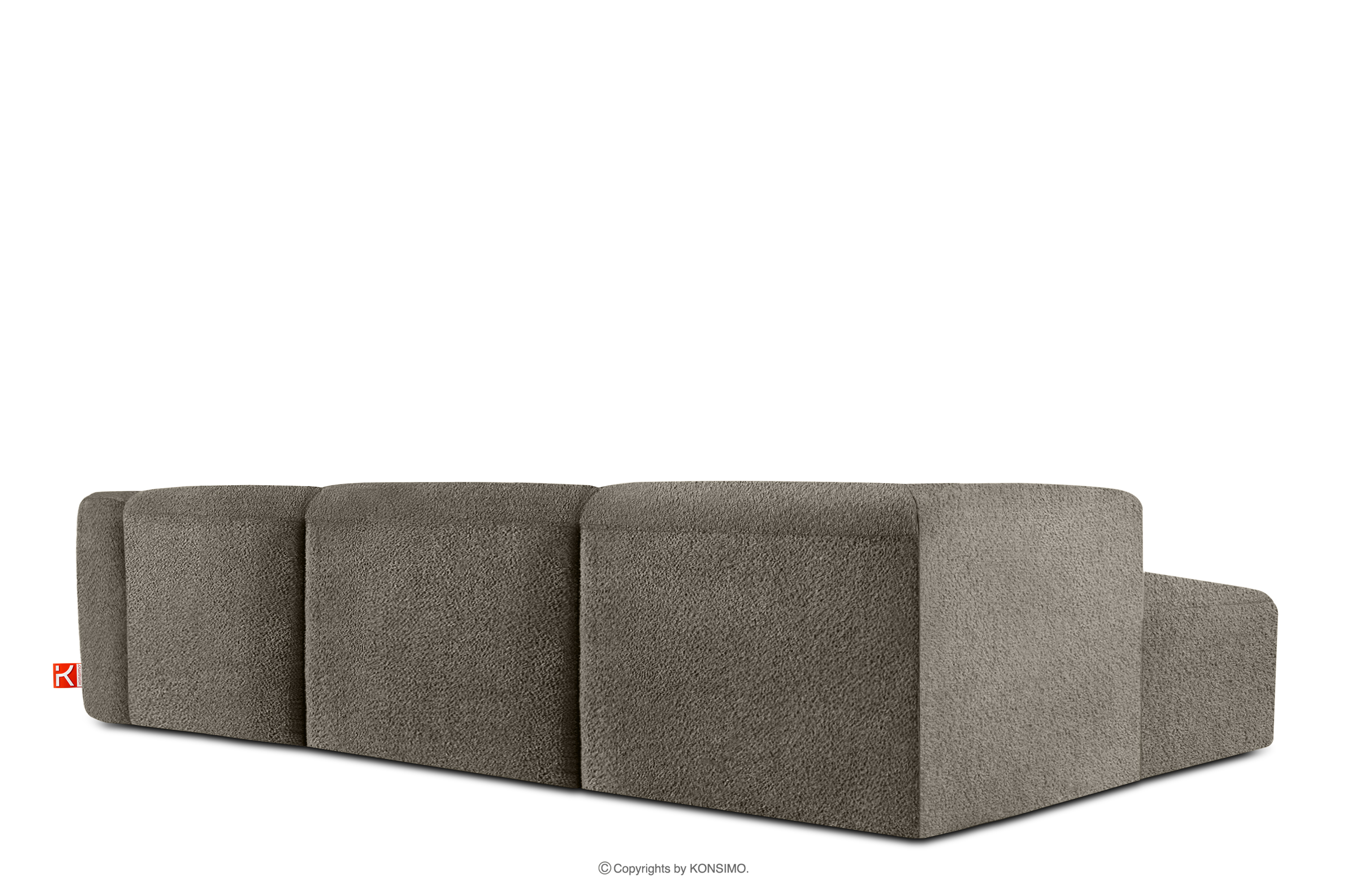 für das Produkt Großes weiches Ecksofa aus Bouclé-Stoff links kühles Braun