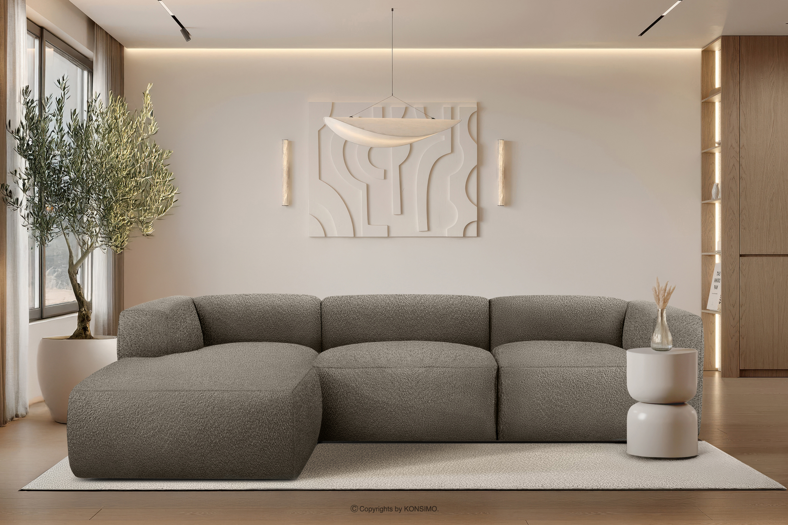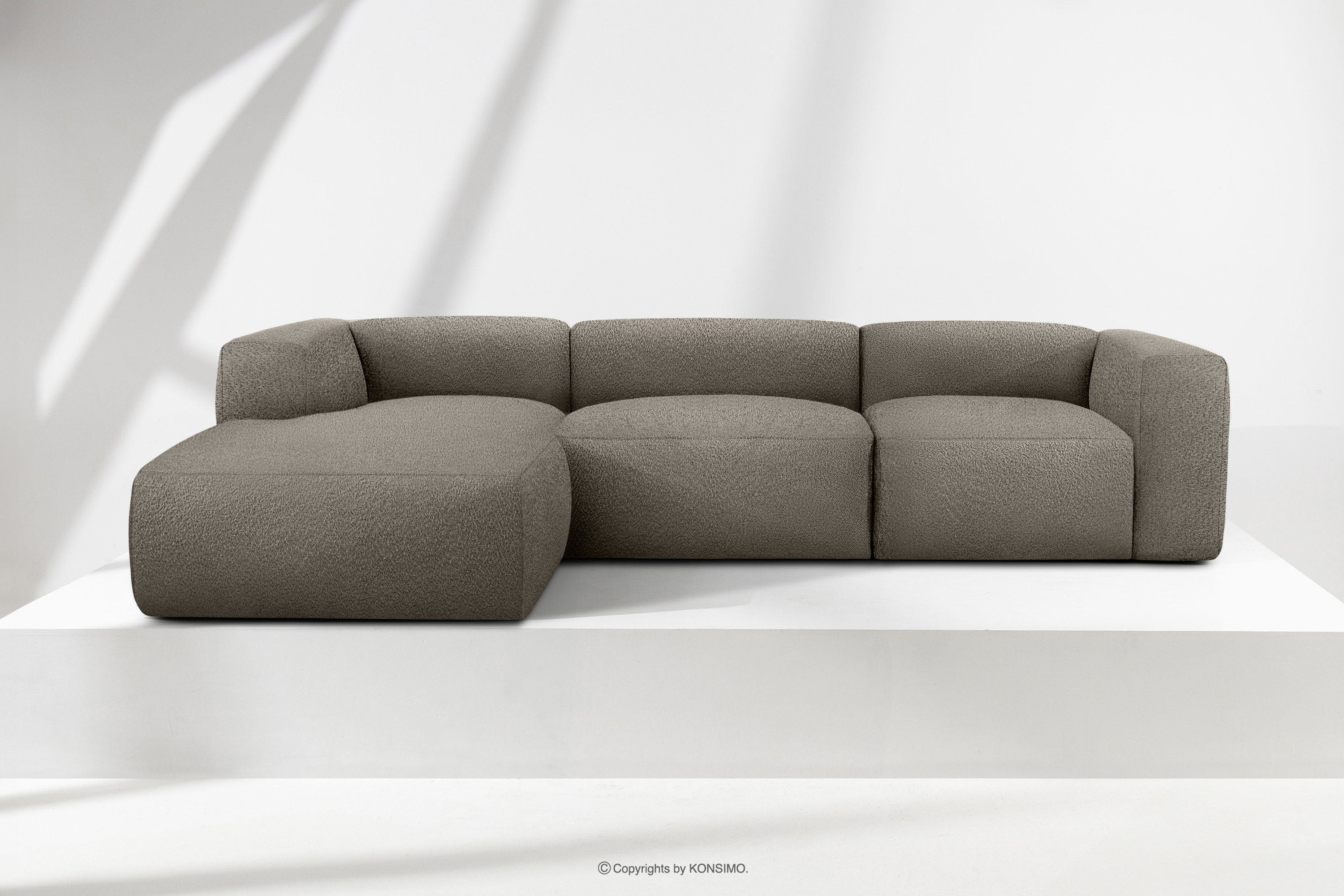 BUFFO Mehr aus der Kollektion Großes weiches Ecksofa aus Bouclé-Stoff links kühles Braun- Farbe Kühles Braun