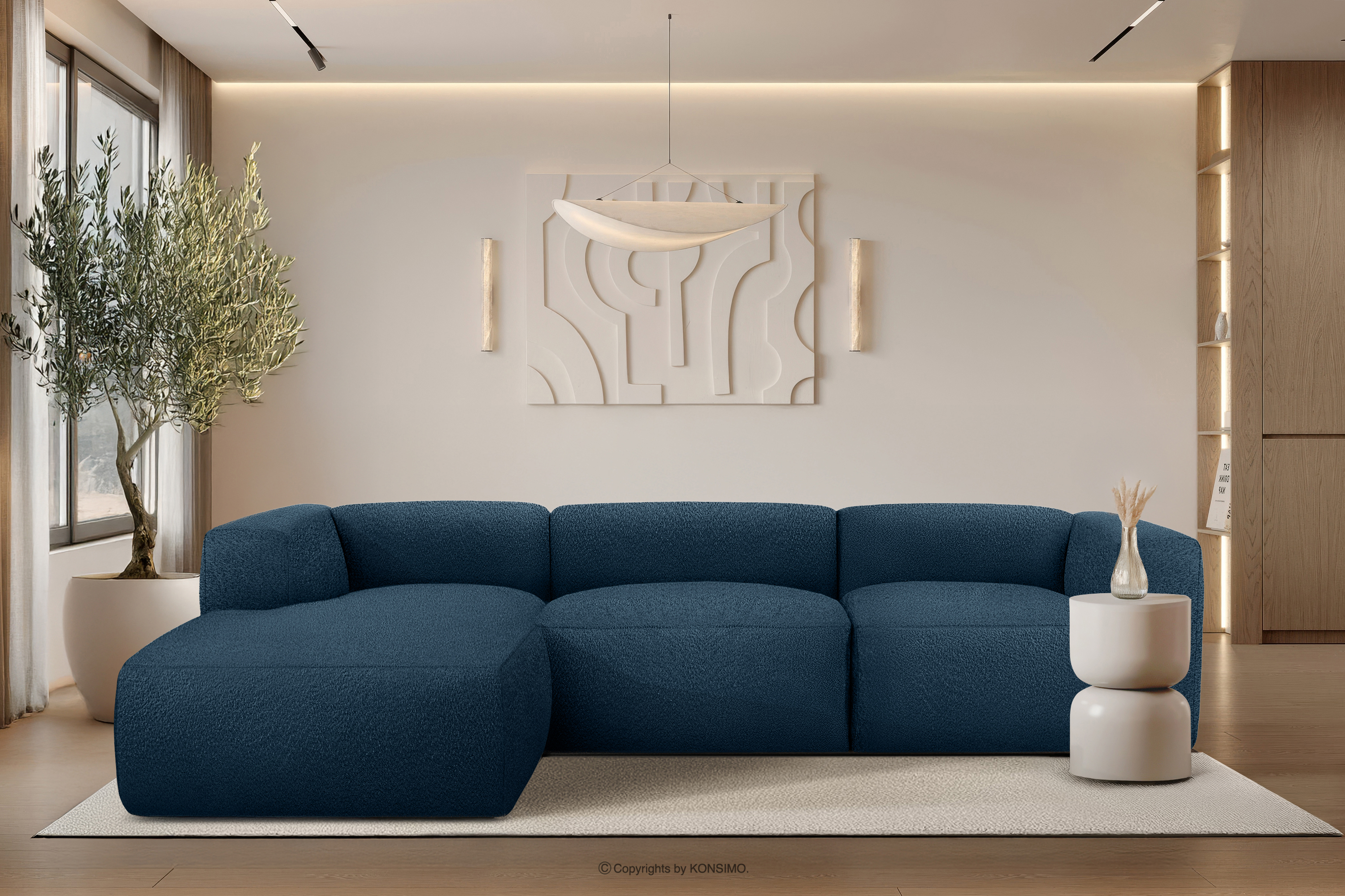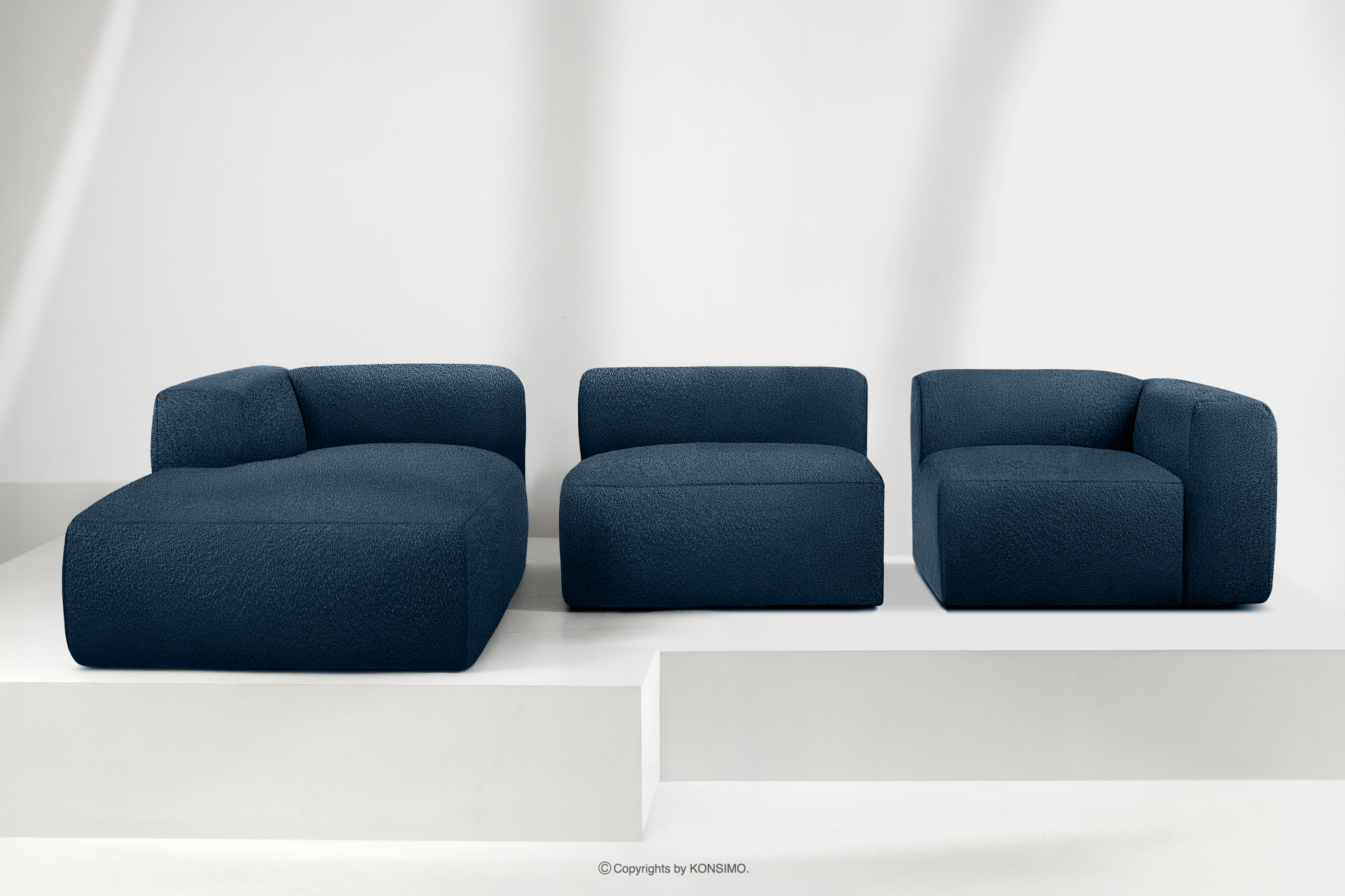 BUFFO Mehr aus der Kollektion Großes weiches Ecksofa aus Bouclé-Stoff links marineblau- Farbe Marineblau