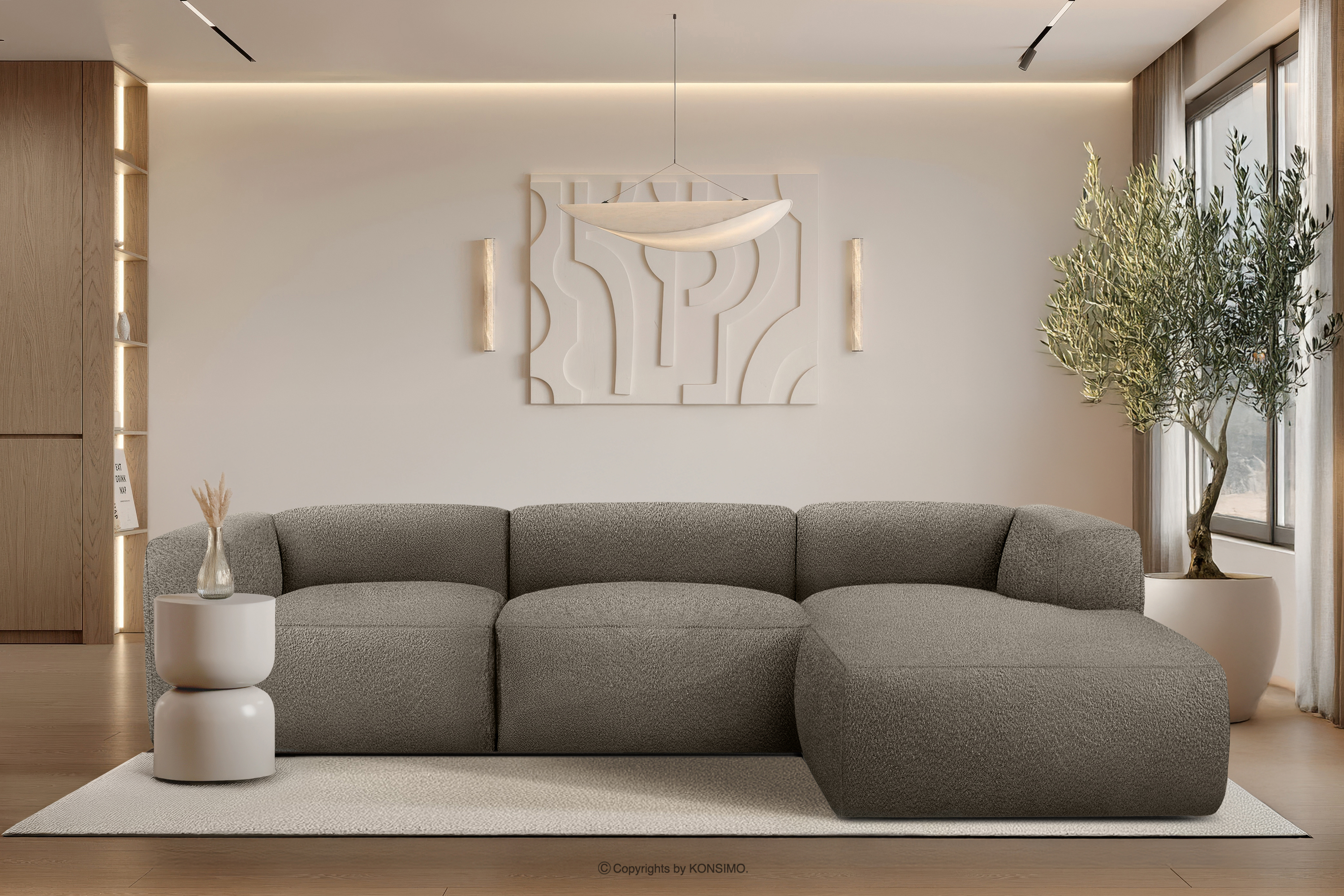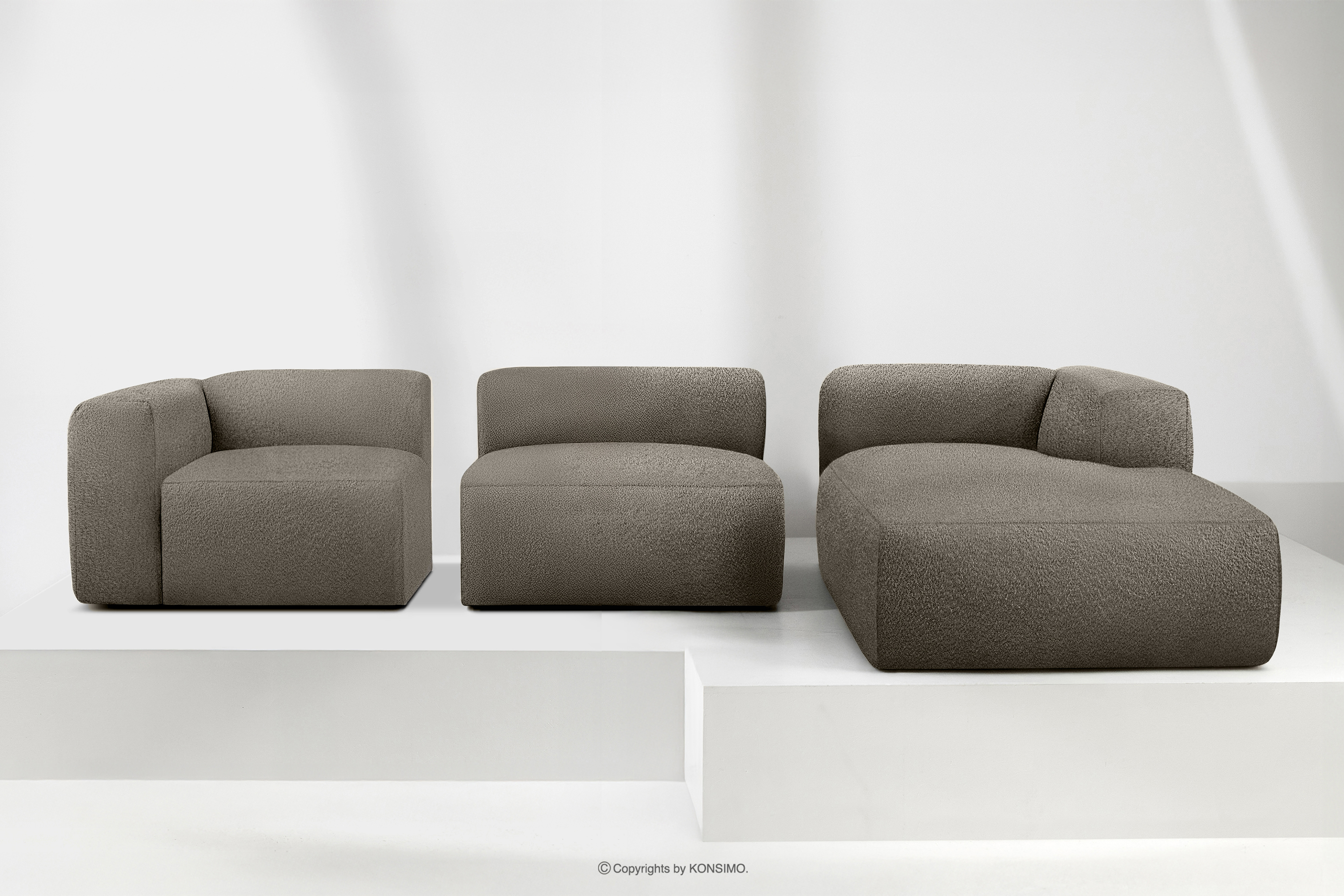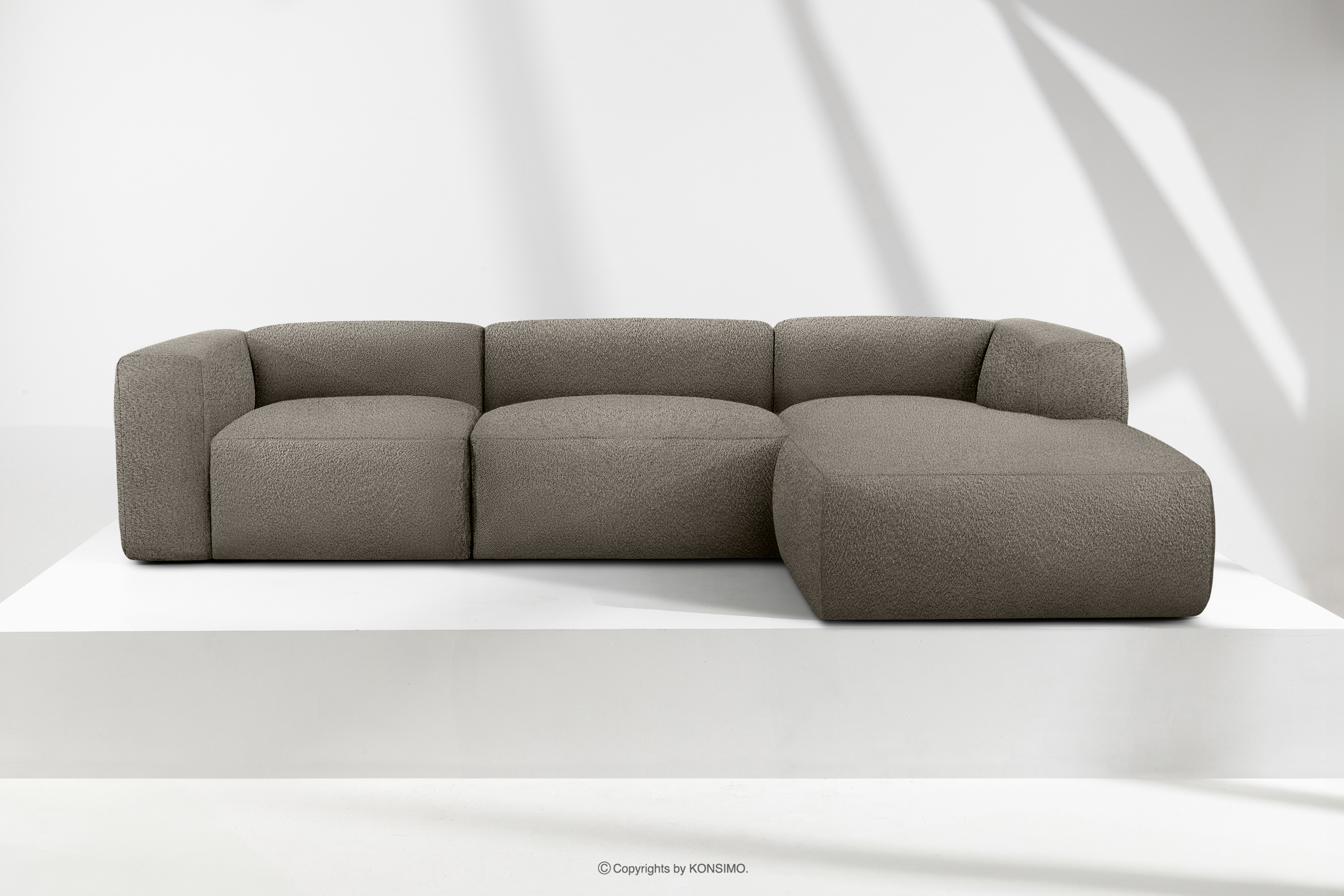 BUFFO Mehr aus der Kollektion Großes weiches Ecksofa aus Bouclé-Stoff rechts kühles Braun- Farbe Kühles Braun