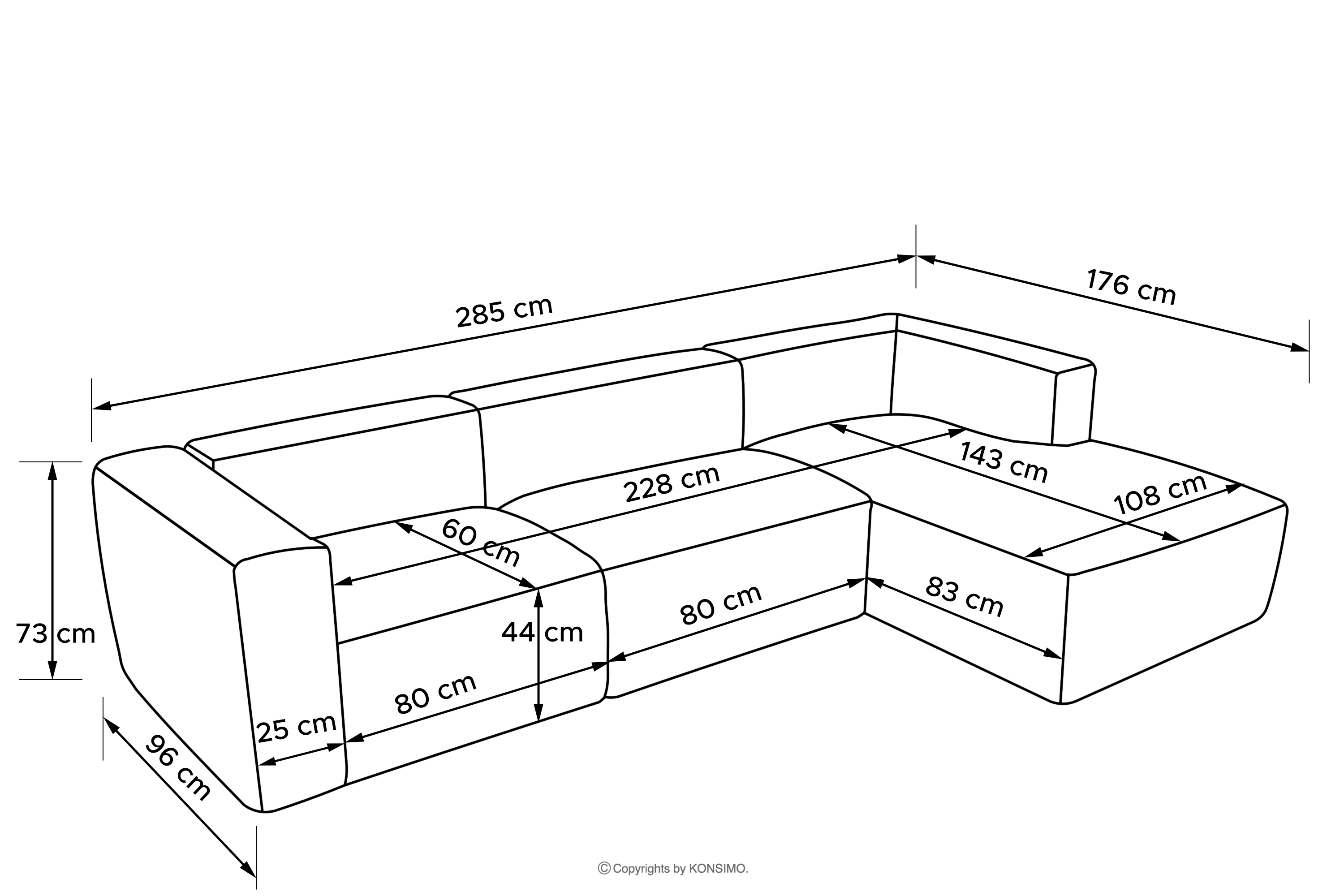 - 285x73x176/96 cm