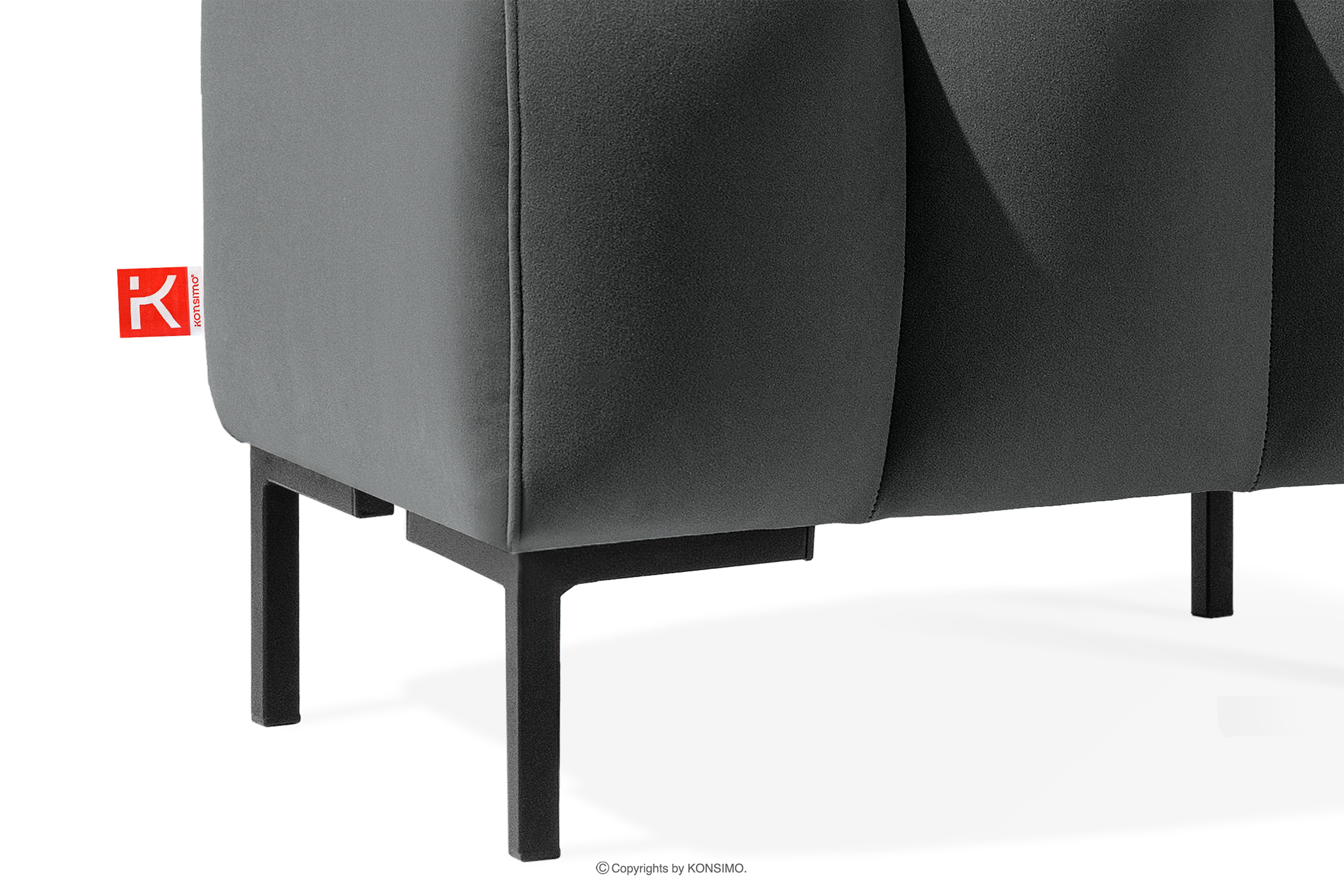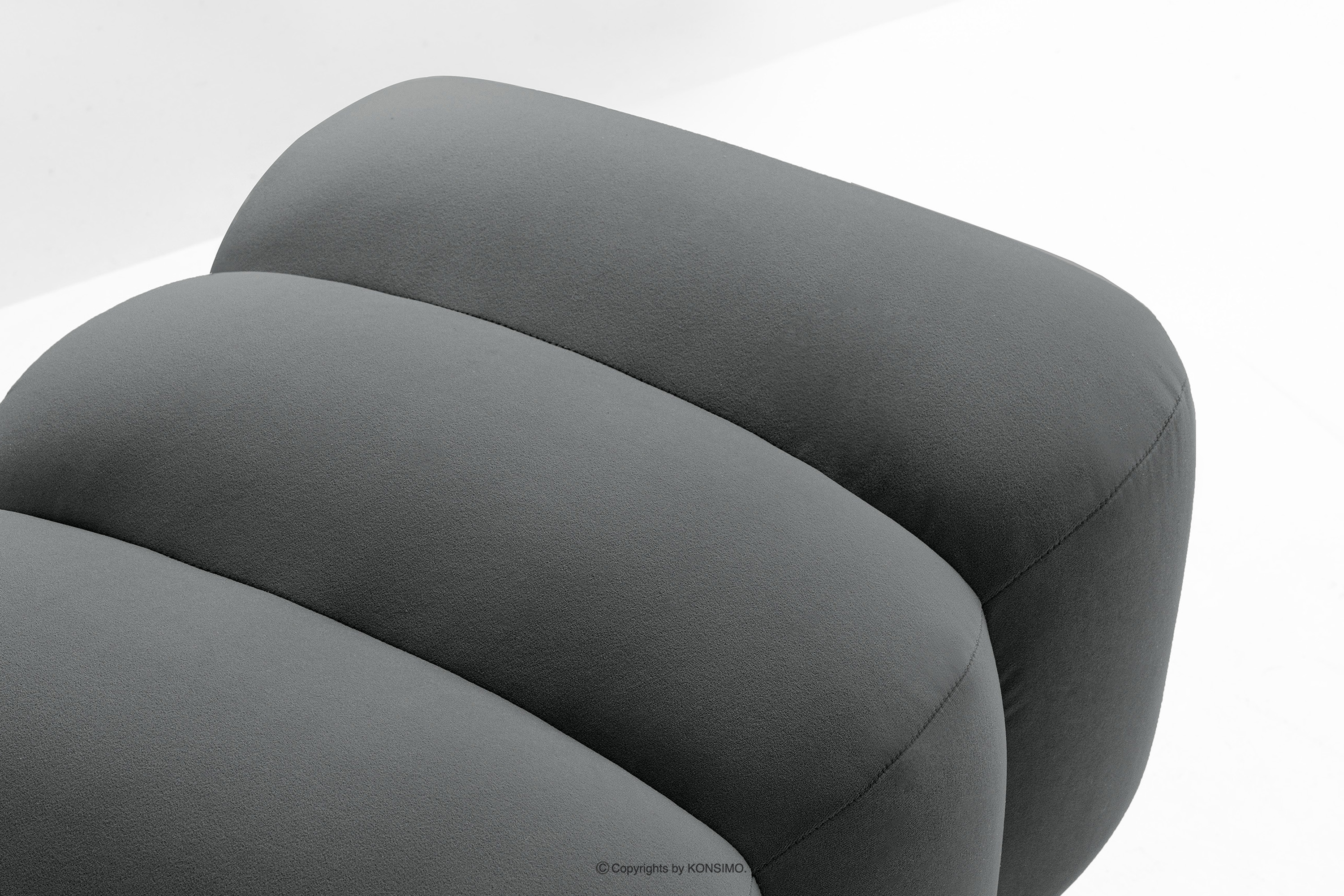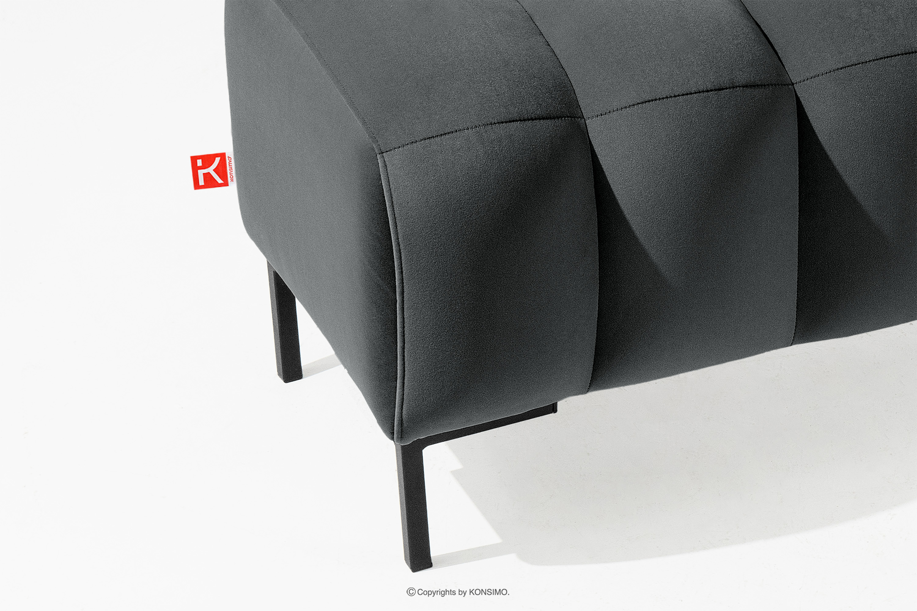Der elegante dunkelgraue Sitzhocker mit hohen Beinen verbindet Funktionalität mit Ästhetik. Die hohen Beine verleihen der gesamten Komposition Eleganz und Leichtigkeit und bilden einen auffälligen Kontrast zur weichen Sitzfläche. Die präzisen Steppungen sind ein weiteres Element, das diesem Möbelstück seinen einzigartigen Charakter verleiht. Die sorgfältige Verarbeitung und die Aufmerksamkeit für jede Naht machen den Sitzhocker nicht nur zu einem praktischen Möbelstück, sondern auch zu einem Designerstück.