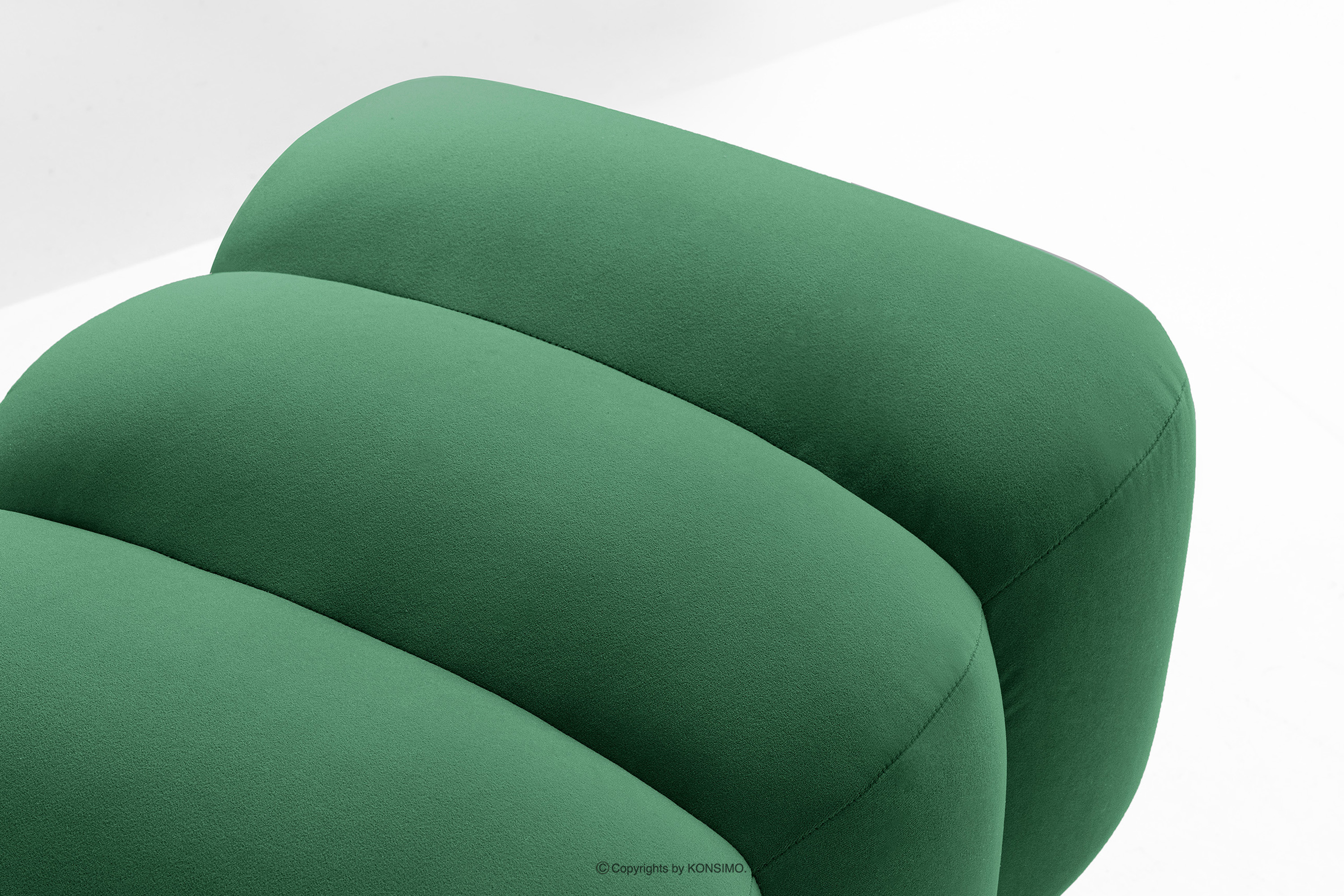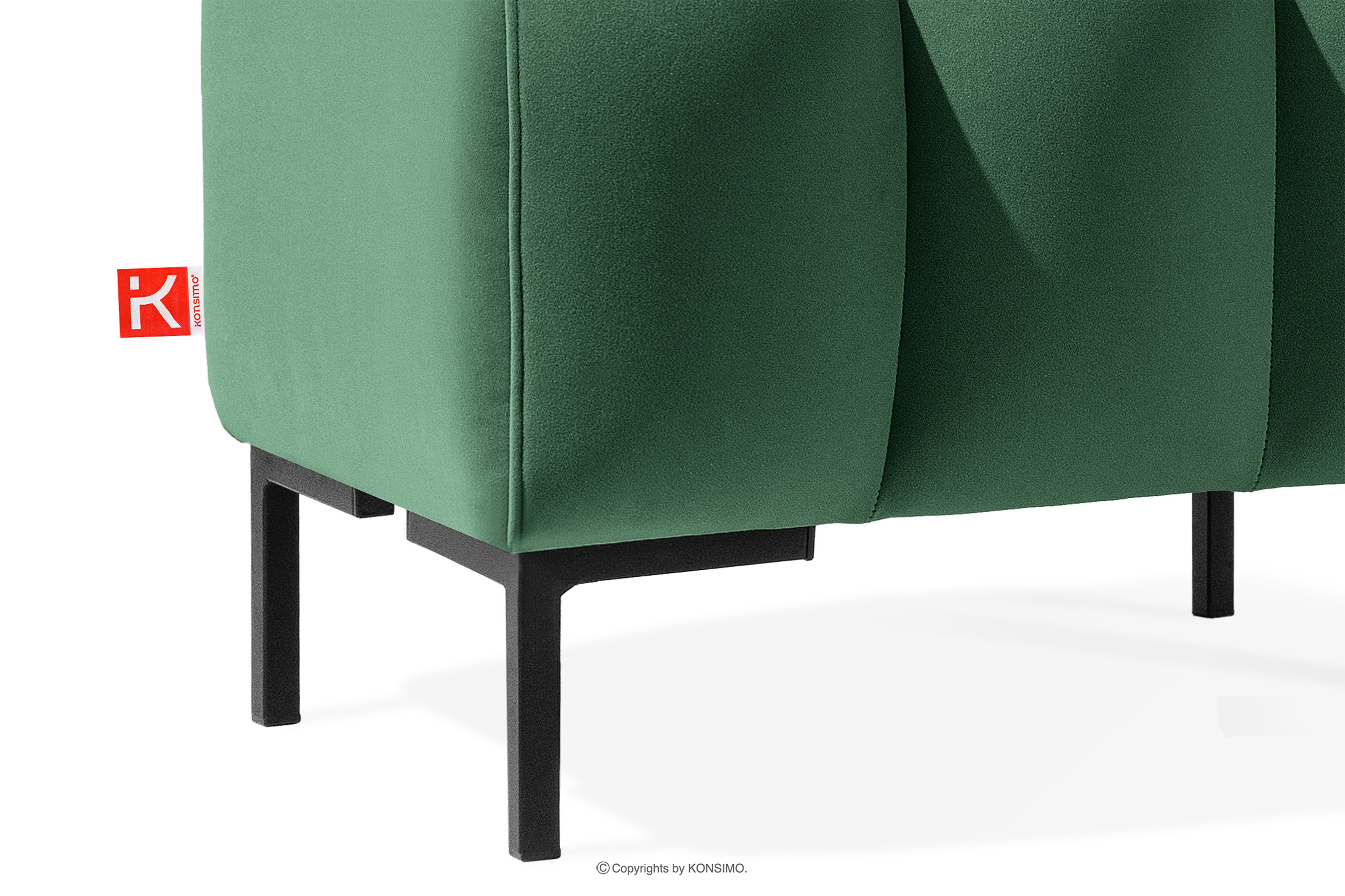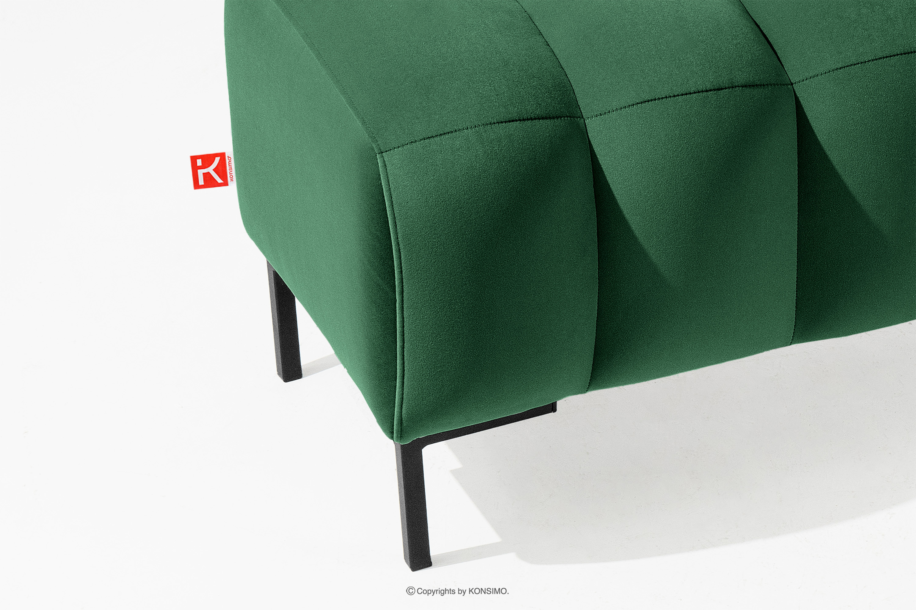 Der elegante dunkelgrüne Sitzhocker mit hohen Beinen verbindet Funktionalität mit Ästhetik. Die hohen Beine verleihen der gesamten Komposition Eleganz und Leichtigkeit und bilden einen auffälligen Kontrast zur weichen Sitzfläche. Die präzisen Steppungen sind ein weiteres Element, das diesem Möbelstück seinen einzigartigen Charakter verleiht. Die sorgfältige Verarbeitung und die Aufmerksamkeit für jede Naht machen den Sitzhocker nicht nur zu einem praktischen Möbelstück, sondern auch zu einem Designerstück.