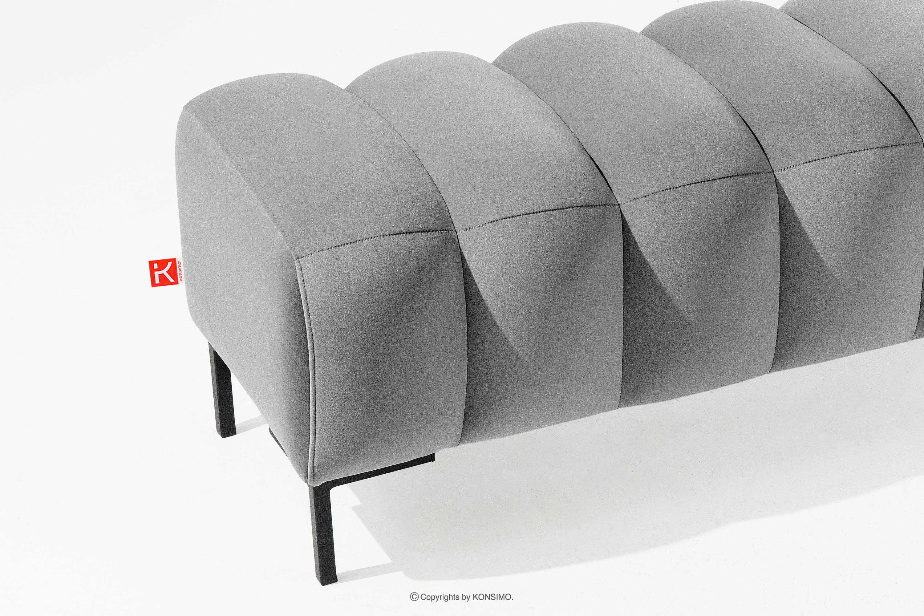 Der 120 breite Sitzhocker auf hohen Beinen in Hellgrau verbindet Funktionalität mit Ästhetik. Die hohen Beine verleihen der gesamten Komposition Eleganz und Leichtigkeit und bilden einen auffälligen Kontrast zur weichen Sitzfläche. Die präzisen Steppungen sind ein weiteres Element, das diesem Möbelstück seinen einzigartigen Charakter verleiht. Die sorgfältige Verarbeitung und die Aufmerksamkeit für jede Naht machen den Sitzhocker nicht nur zu einem praktischen Möbelstück, sondern auch zu einem Designerstück.