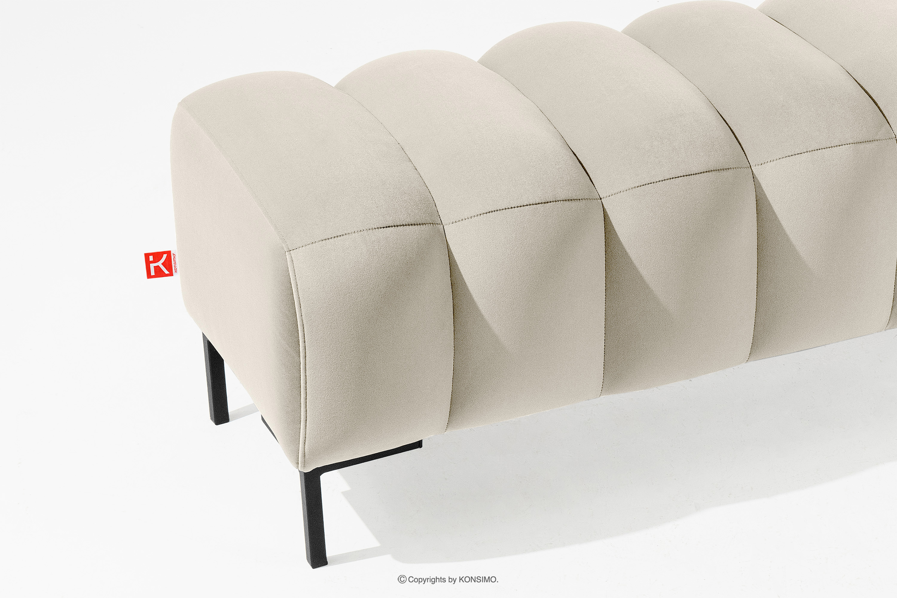 Der 120 breite Sitzhocker auf hohen Beinen in Creme verbindet Funktionalität mit Ästhetik. Die hohen Beine verleihen der gesamten Komposition Eleganz und Leichtigkeit und bilden einen auffälligen Kontrast zur weichen Sitzfläche. Die präzisen Steppungen sind ein weiteres Element, das diesem Möbelstück seinen einzigartigen Charakter verleiht. Die sorgfältige Verarbeitung und die Aufmerksamkeit für jede Naht machen den Sitzhocker nicht nur zu einem praktischen Möbelstück, sondern auch zu einem Designerstück.