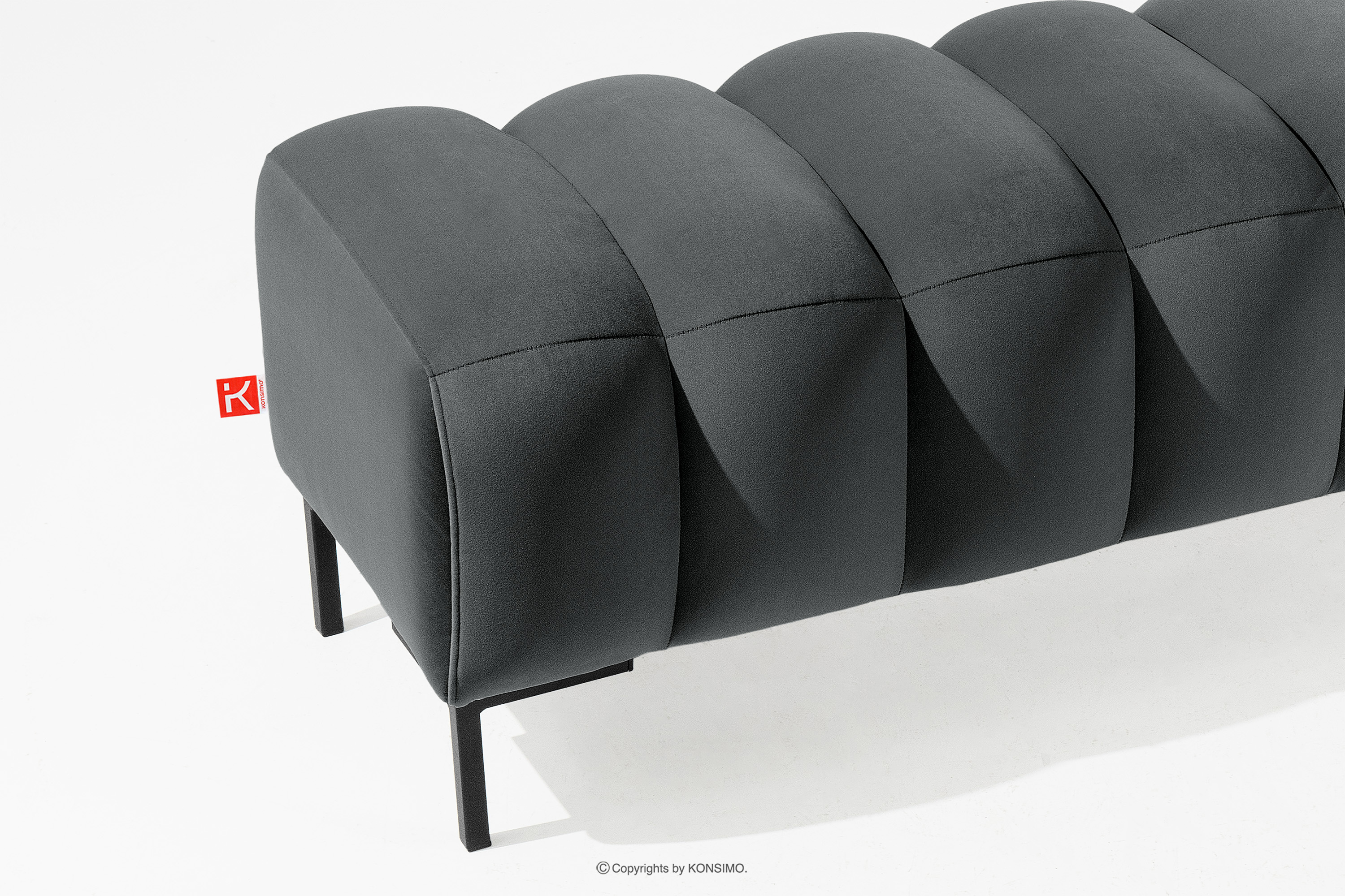 Der 160 breite Sitzhocker für den Flur in Dunkelgrau verbindet Funktionalität mit Ästhetik. Die hohen Beine verleihen der gesamten Komposition Eleganz und Leichtigkeit und bilden einen auffälligen Kontrast zur weichen Sitzfläche. Die präzisen Steppungen sind ein weiteres Element, das diesem Möbelstück seinen einzigartigen Charakter verleiht. Die sorgfältige Verarbeitung und die Aufmerksamkeit für jede Naht machen den Sitzhocker nicht nur zu einem praktischen Möbelstück, sondern auch zu einem Designerstück.