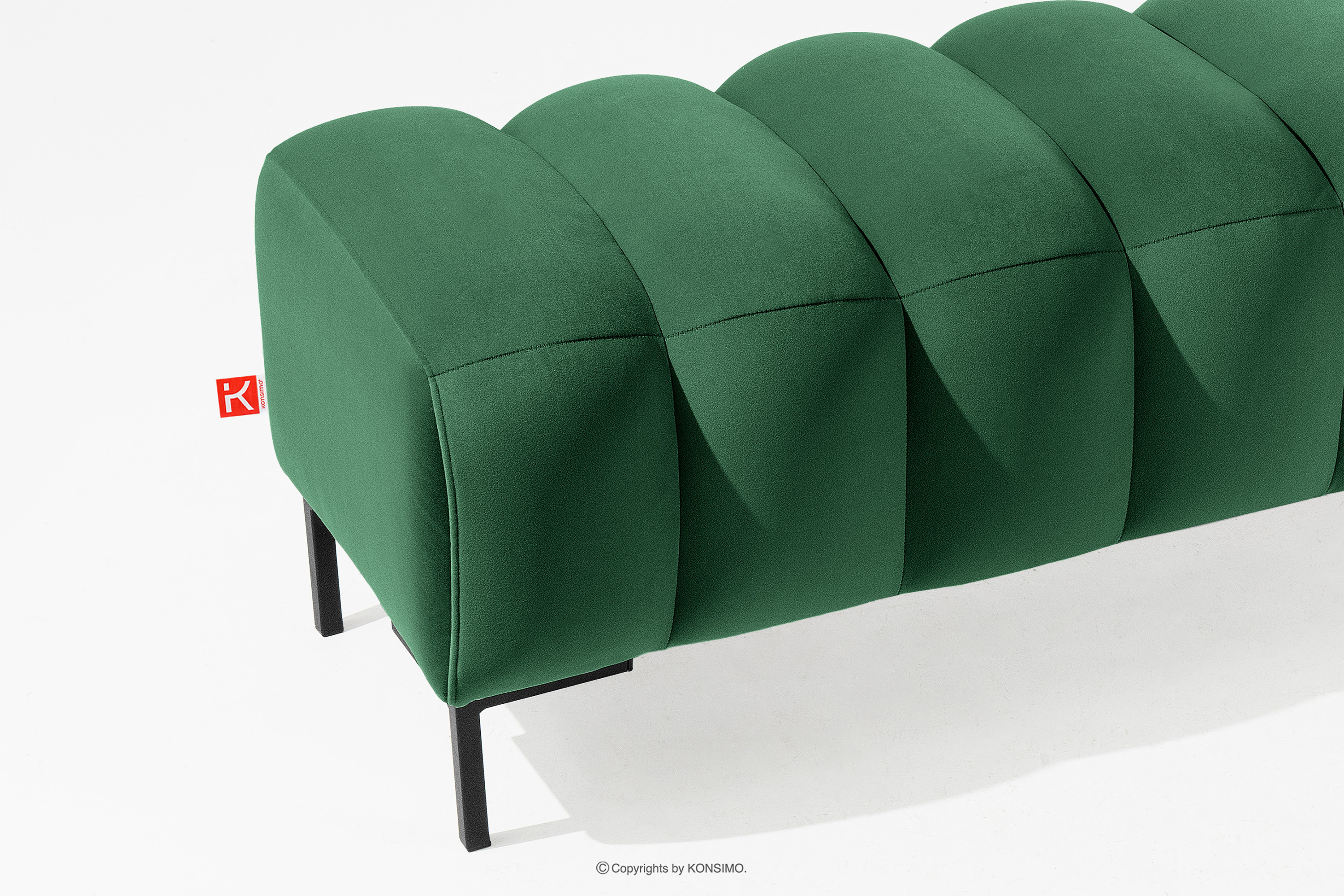 Der breite 160er Sitzhocker in Dunkelgrün verbindet Funktionalität mit Ästhetik. Die hohen Beine verleihen der gesamten Komposition Eleganz und Leichtigkeit und bilden einen auffälligen Kontrast zur weichen Sitzfläche. Die präzisen Steppungen sind ein weiteres Element, das diesem Möbelstück seinen einzigartigen Charakter verleiht. Die sorgfältige Verarbeitung und die Aufmerksamkeit für jede Naht machen den Sitzhocker nicht nur zu einem praktischen Möbelstück, sondern auch zu einem Designerstück.