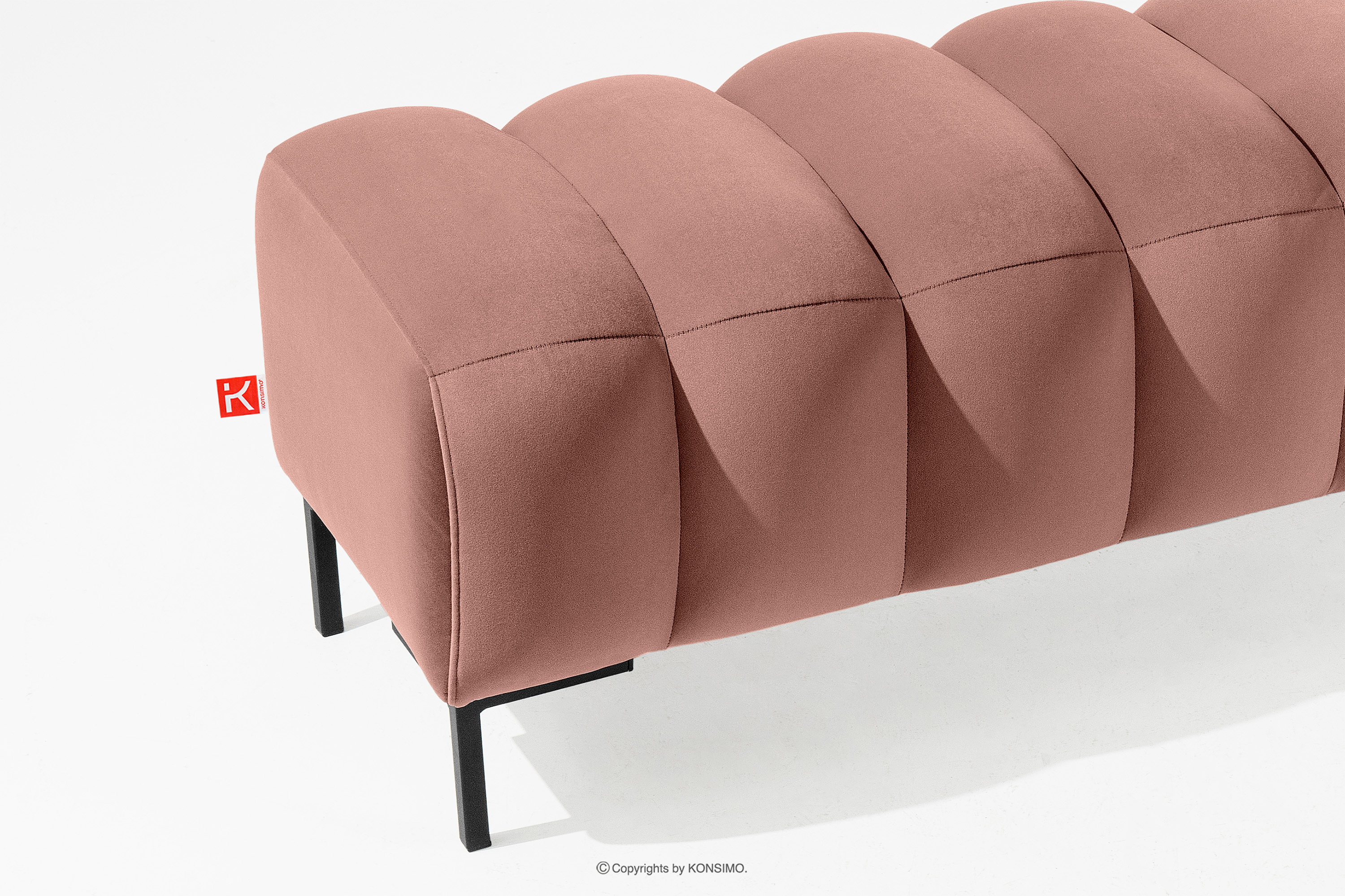 Der breite Sitzhocker 160 for corridor pink verbindet Funktionalität mit Ästhetik. Die hohen Beine verleihen der gesamten Komposition Eleganz und Leichtigkeit und bilden einen auffälligen Kontrast zur weichen Sitzfläche. Die präzisen Steppungen sind ein weiteres Element, das diesem Möbelstück seinen einzigartigen Charakter verleiht. Die sorgfältige Verarbeitung und die Aufmerksamkeit für jede Naht machen den Sitzhocker nicht nur zu einem praktischen Möbelstück, sondern auch zu einem Designerstück.