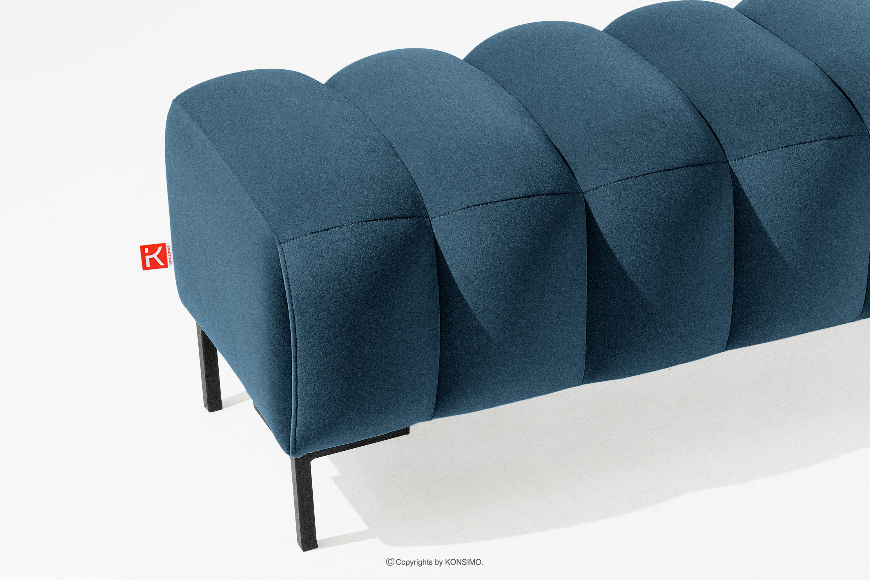 Der breite 160er Sitzhocker in Marineblau verbindet Funktionalität mit Ästhetik. Die hohen Beine verleihen der gesamten Komposition Eleganz und Leichtigkeit und bilden einen auffälligen Kontrast zur weichen Sitzfläche. Die präzisen Steppungen sind ein weiteres Element, das diesem Möbelstück seinen einzigartigen Charakter verleiht. Die sorgfältige Verarbeitung und die Aufmerksamkeit für jede Naht machen den Sitzhocker nicht nur zu einem praktischen Möbelstück, sondern auch zu einem Designerstück.
