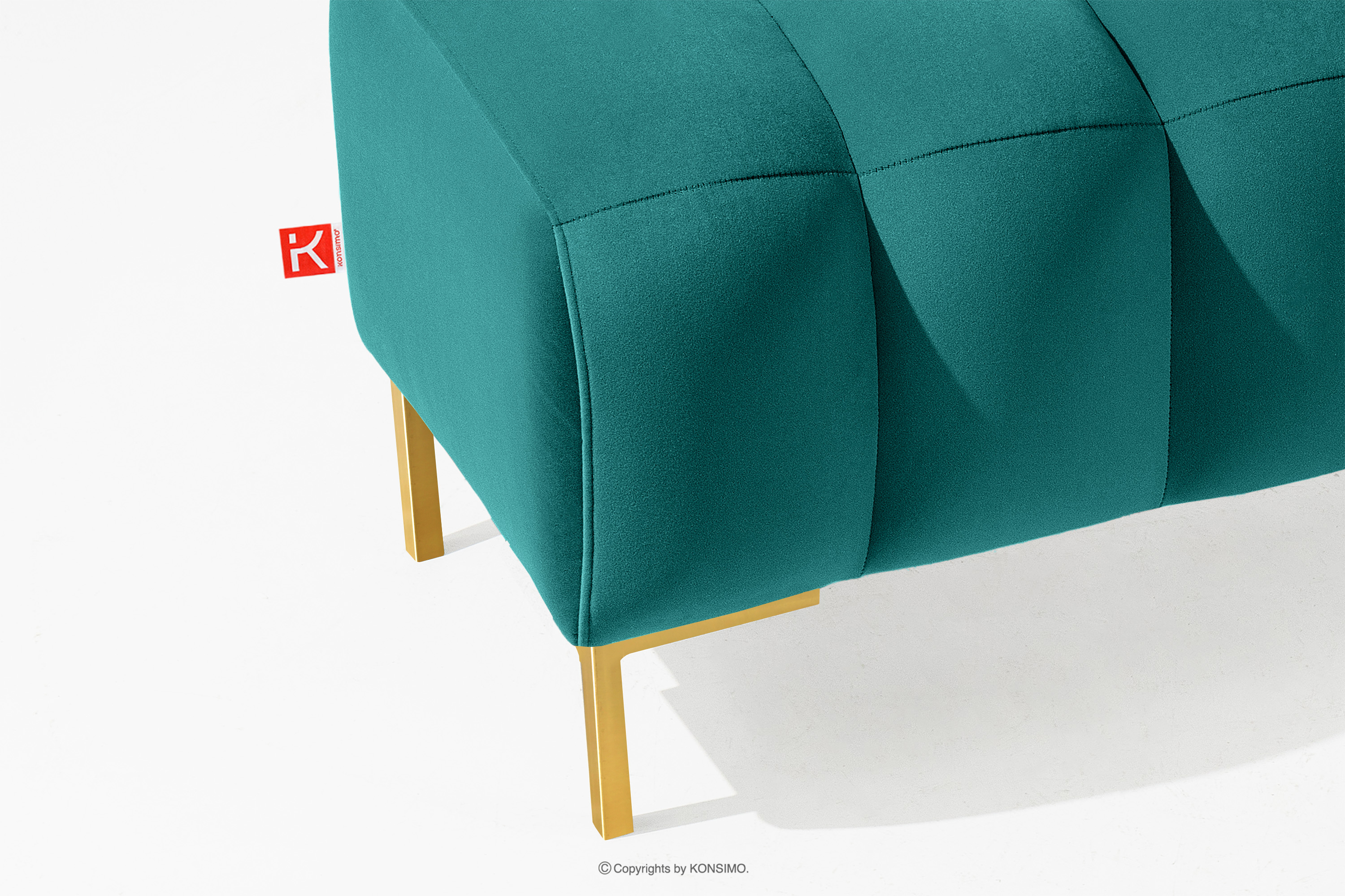 Der Sitzhocker auf hohen goldenen Beinen von elegant marine verbindet Funktionalität mit Ästhetik. Die hohen Beine verleihen der gesamten Komposition Eleganz und Leichtigkeit und bilden einen auffälligen Kontrast zur weichen Sitzfläche. Die präzisen Steppungen sind ein weiteres Element, das diesem Möbelstück seinen einzigartigen Charakter verleiht. Die sorgfältige Verarbeitung und die Aufmerksamkeit für jede Naht machen den Sitzhocker nicht nur zu einem praktischen Möbelstück, sondern auch zu einem Designerstück.