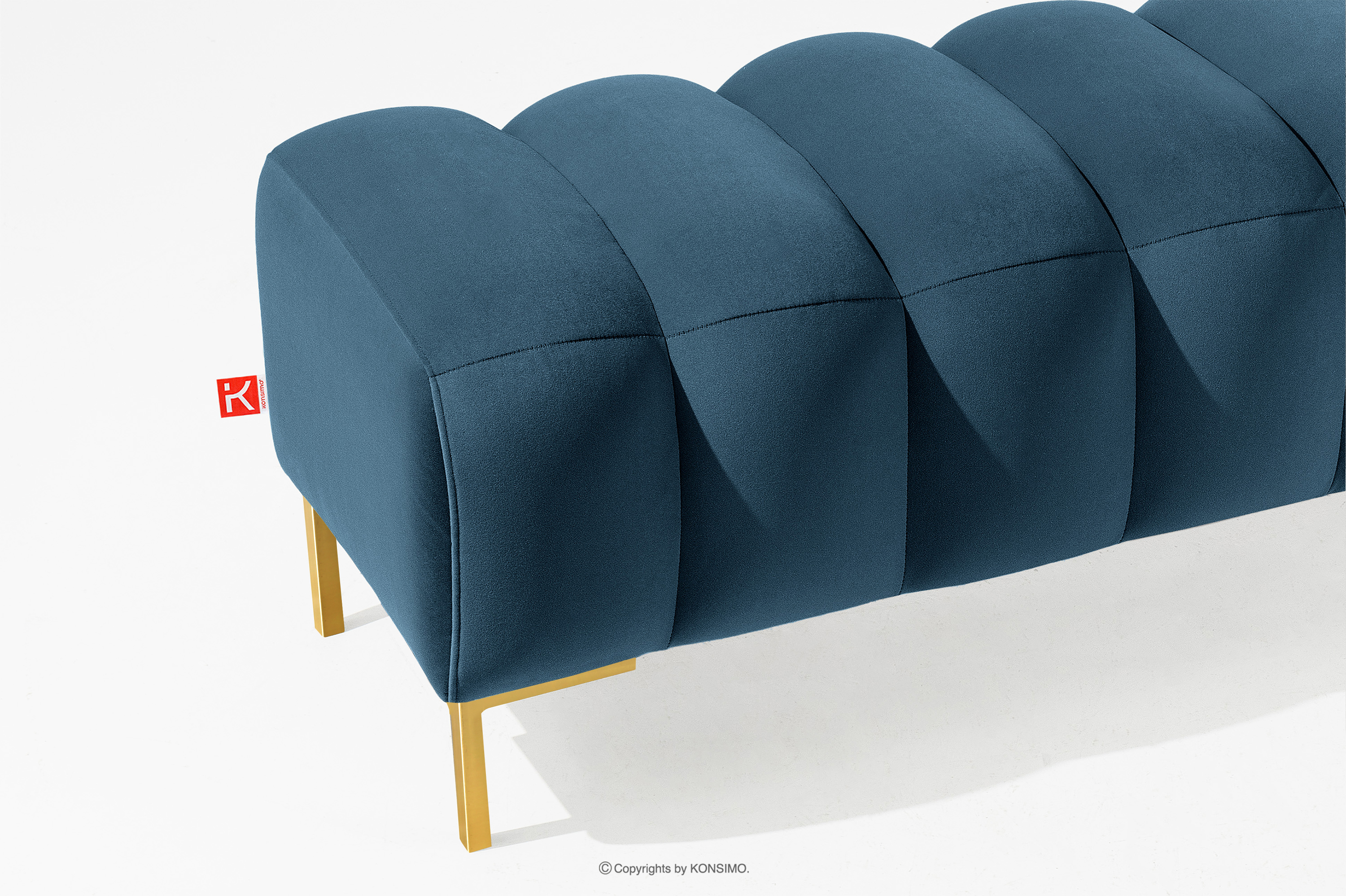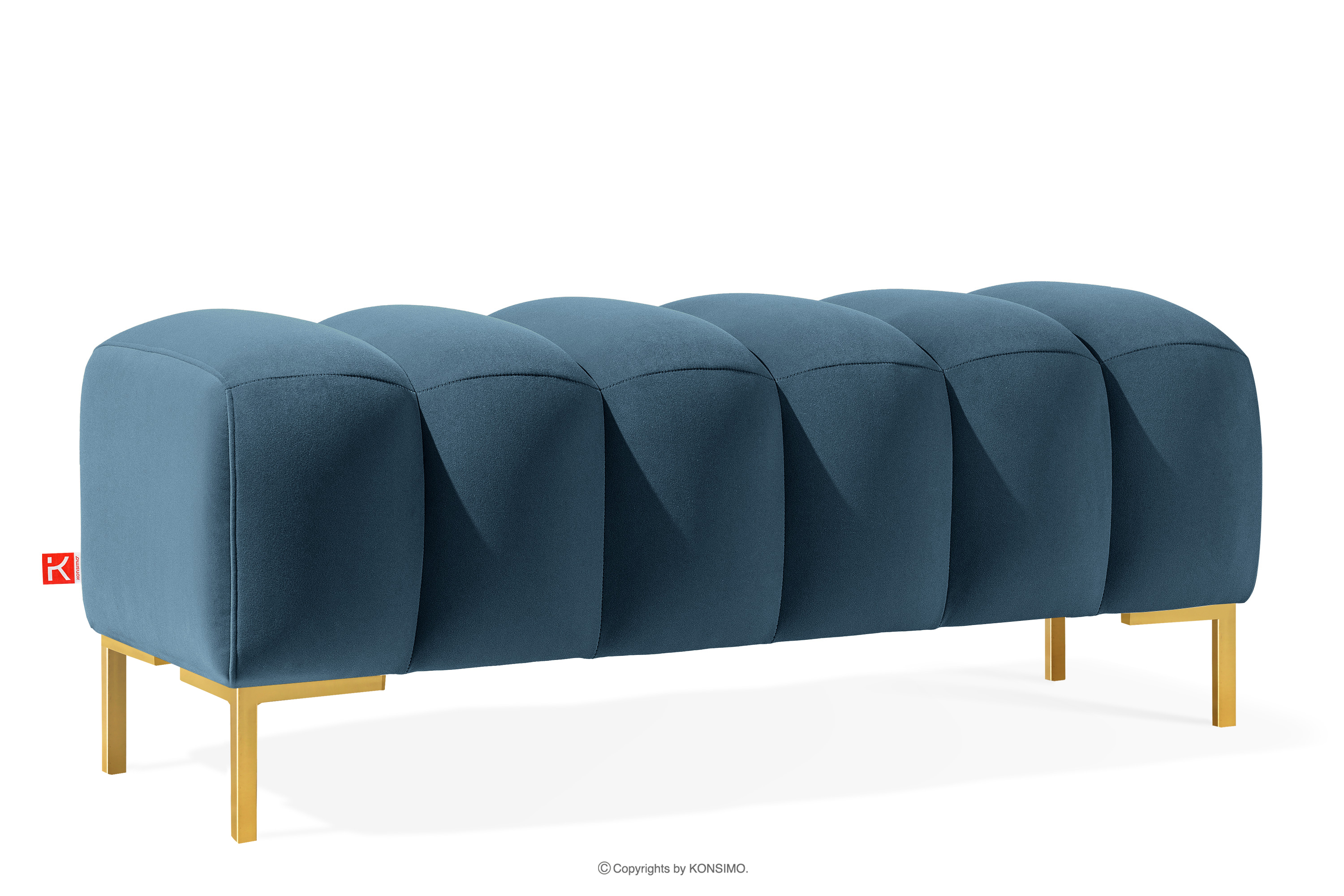 Der 120 breite Sitzhocker auf hohen goldenen Beinen in Marineblau verbindet Funktionalität mit Ästhetik. Die hohen Beine verleihen der gesamten Komposition Eleganz und Leichtigkeit und bilden einen auffälligen Kontrast zur weichen Sitzfläche. Die präzisen Steppungen sind ein weiteres Element, das diesem Möbelstück seinen einzigartigen Charakter verleiht. Die sorgfältige Verarbeitung und die Aufmerksamkeit für jede Naht machen den Sitzhocker nicht nur zu einem praktischen Möbelstück, sondern auch zu einem Designerstück.