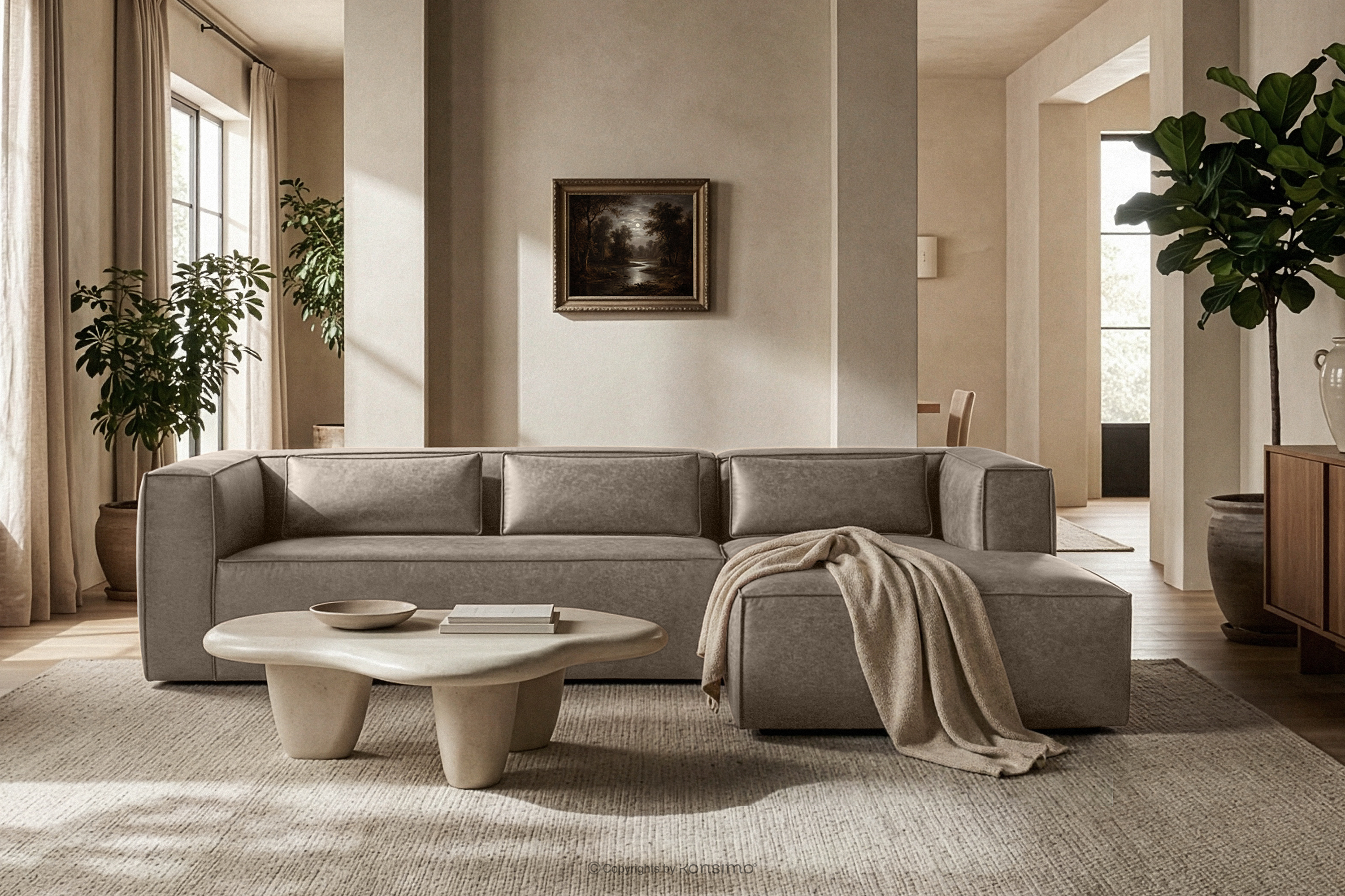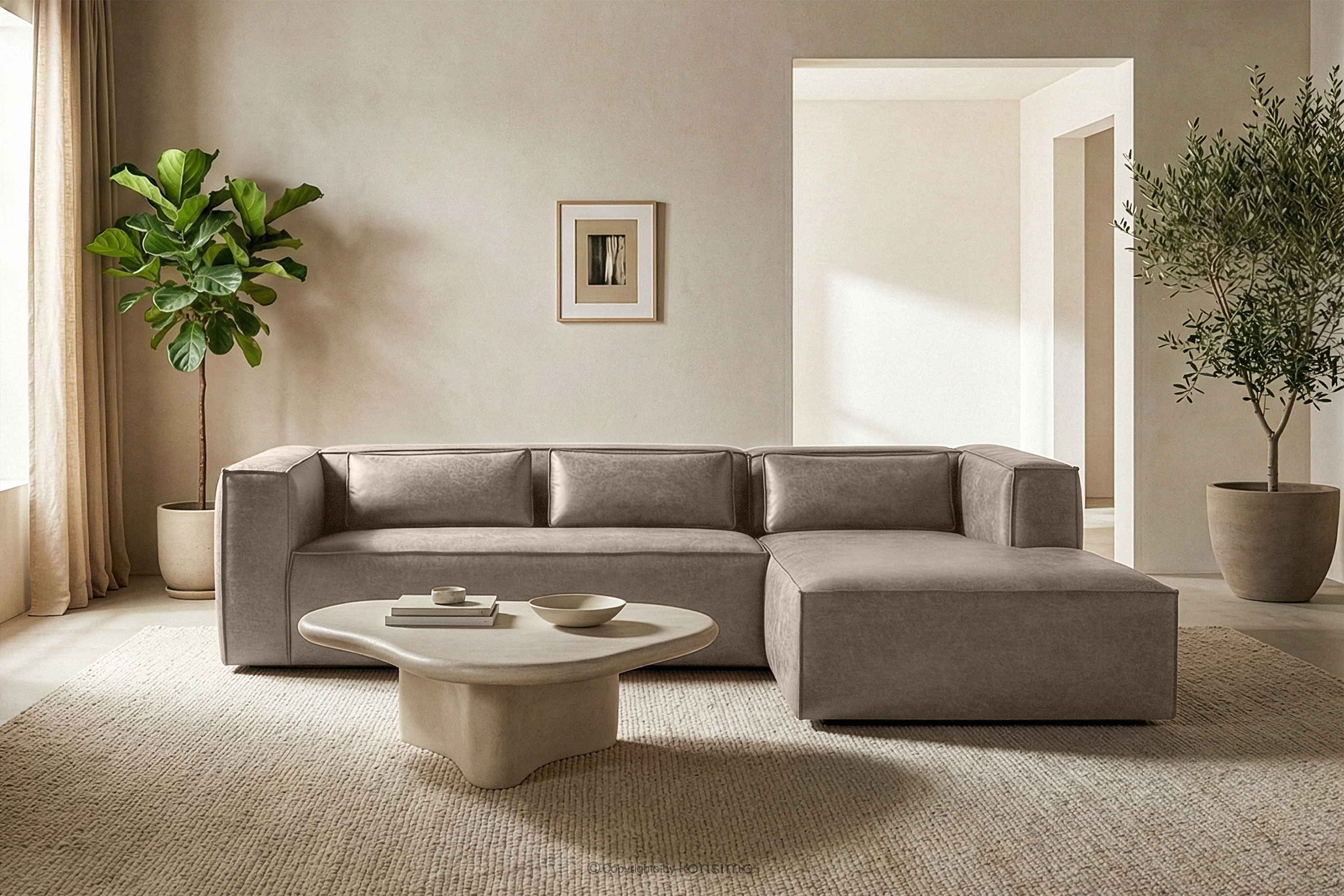 Ecksofa im Loft-Stil Kunstleder hellgrau rechts mit einer soliden Konstruktion und einem außergewöhnlichen Design. Das Gestell dieses eleganten Möbelstücks wurde aus einer Kombination von Kiefer- und Buchenholz gefertigt, was nicht nur für ein ästhetisches Aussehen sorgt, sondern auch für eine lange Lebensdauer. Das Innere wird durch eine solide Konstruktion aus Holz, Spanplatten und Faserplatten gestützt, was Stabilität und Komfort garantiert.