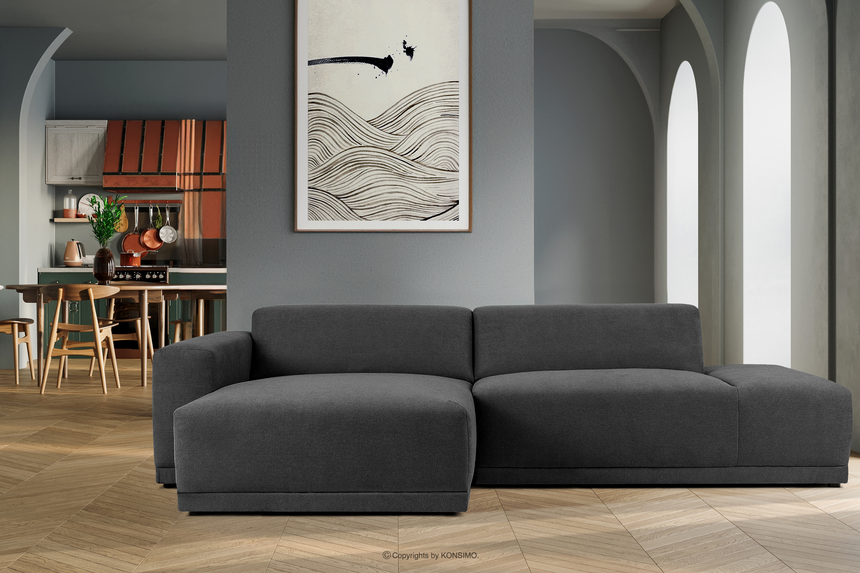 MUDI Modernes Ecksofa für das Wohnzimmer dunkelgrau Gewebestoff links