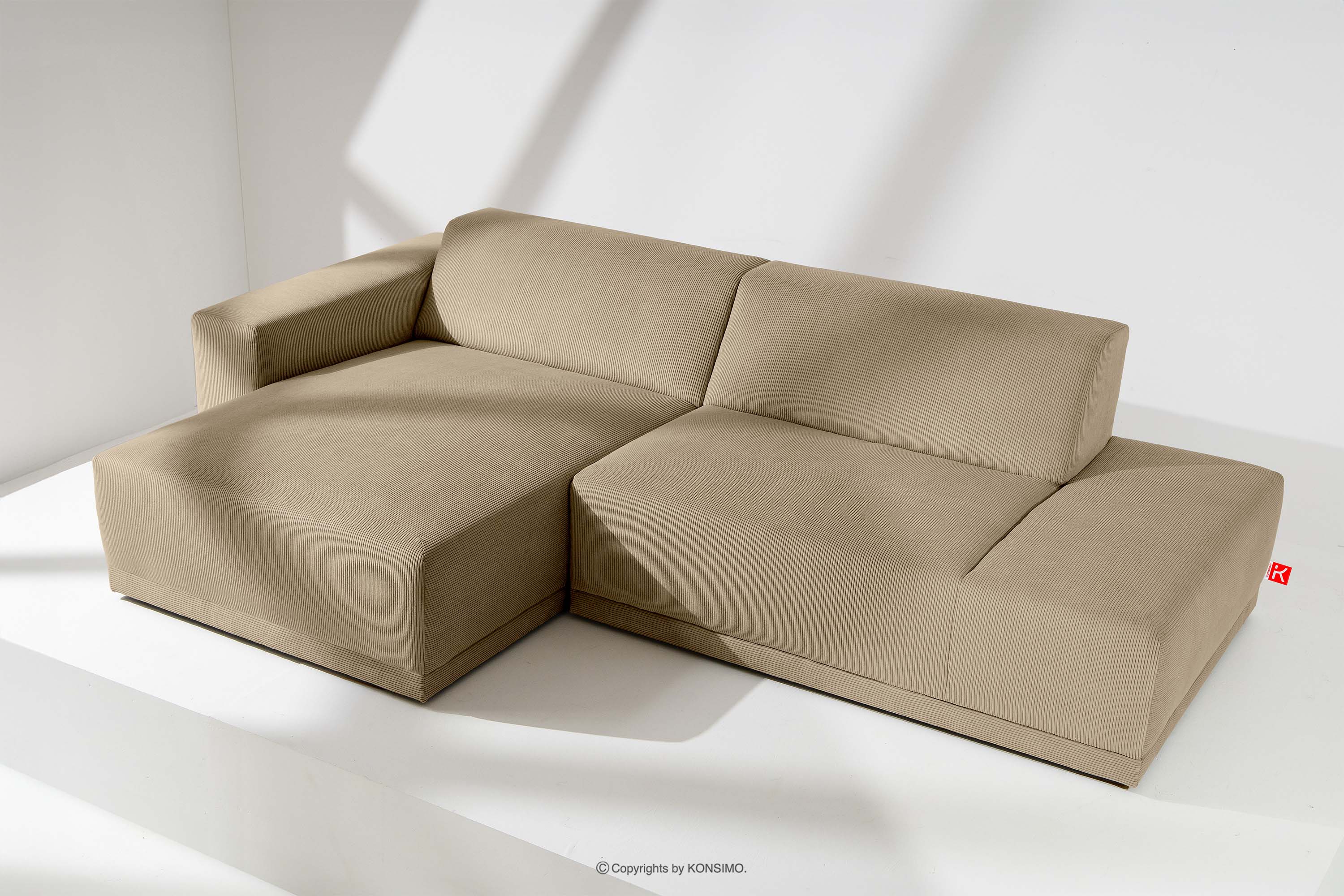 Inspiriert von den neuesten Trends in der Inneneinrichtung bietet das Ecksofa in Boho-Beige links im Wohnzimmer nicht nur Ästhetik, sondern auch hervorragende Funktionalität. Stellen Sie sich die perfekte Entspannungsecke vor, in der Komfort auf einzigartigen Boho-Stil trifft. Die Wellenunterfederung in der Sitzfläche bietet eine außergewöhnliche Flexibilität, die sich Ihren Bewegungen anpasst und bei jedem Sitzen für maximalen Komfort sorgt.