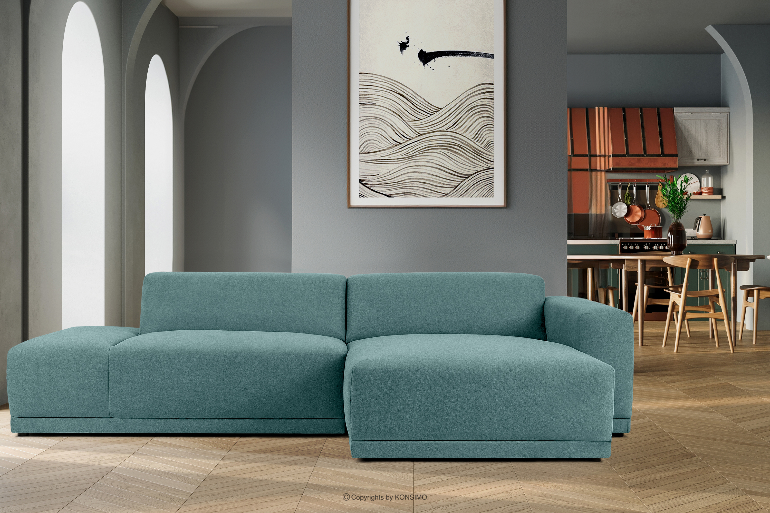 MUDI Modernes Ecksofa für das Wohnzimmer blau geflochtener Stoff rechts