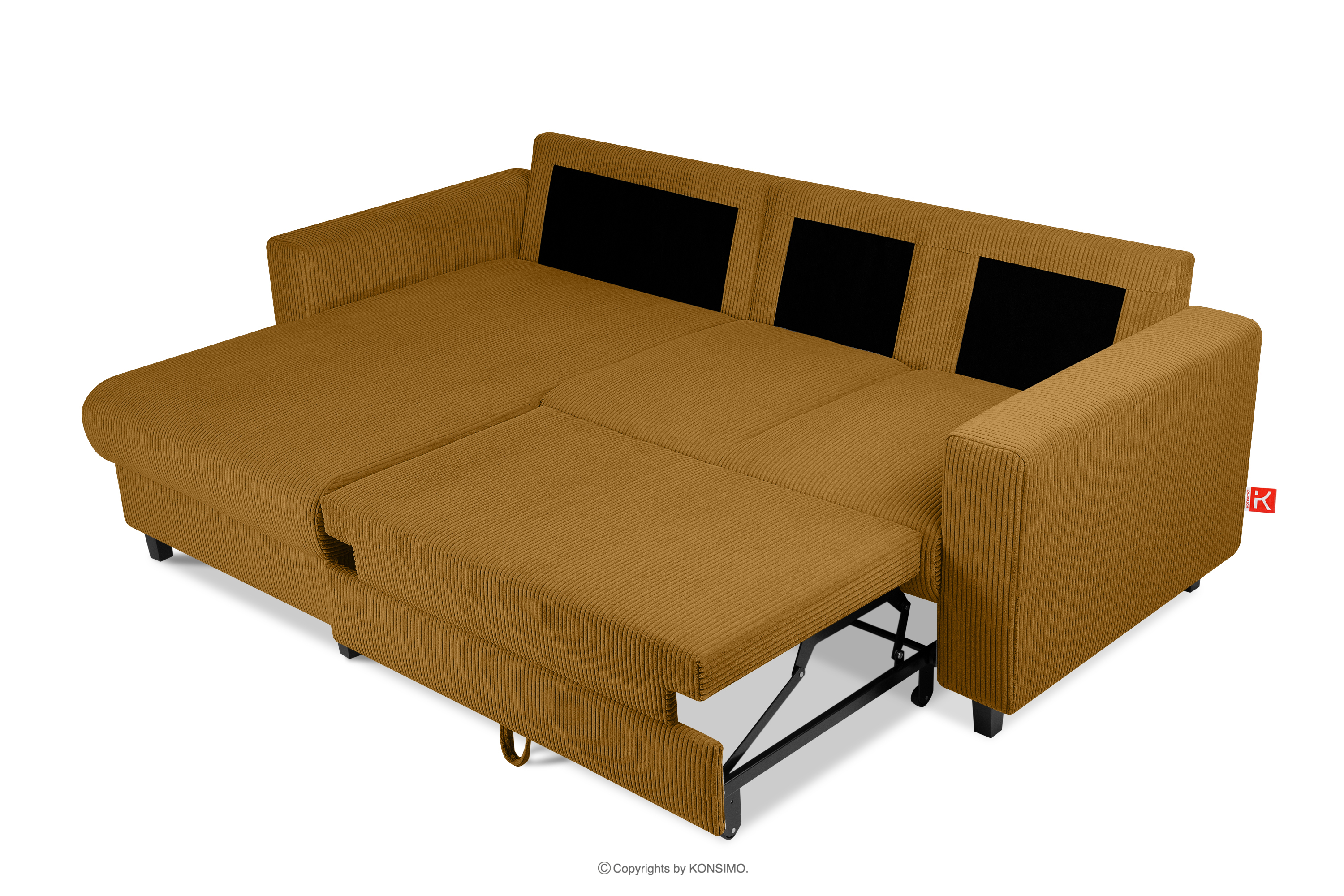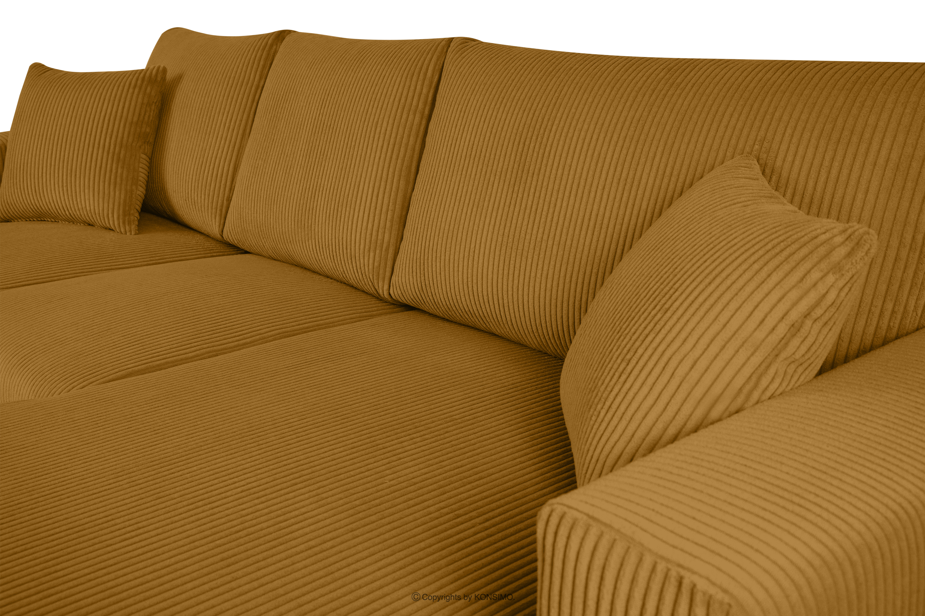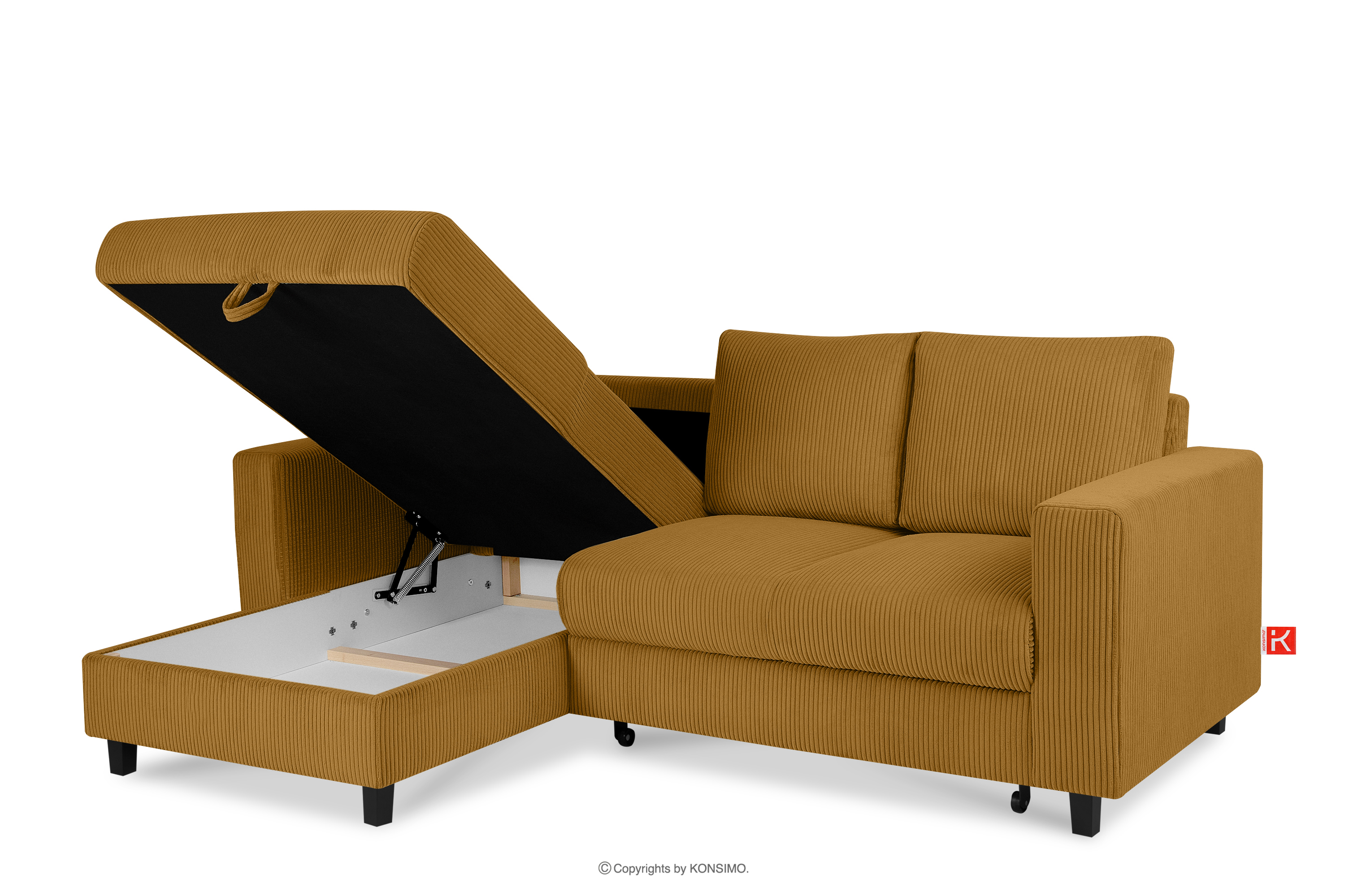 für das Produkt Ausziehbares Kordstoff-Ecksofa links auf Beinen in gelb