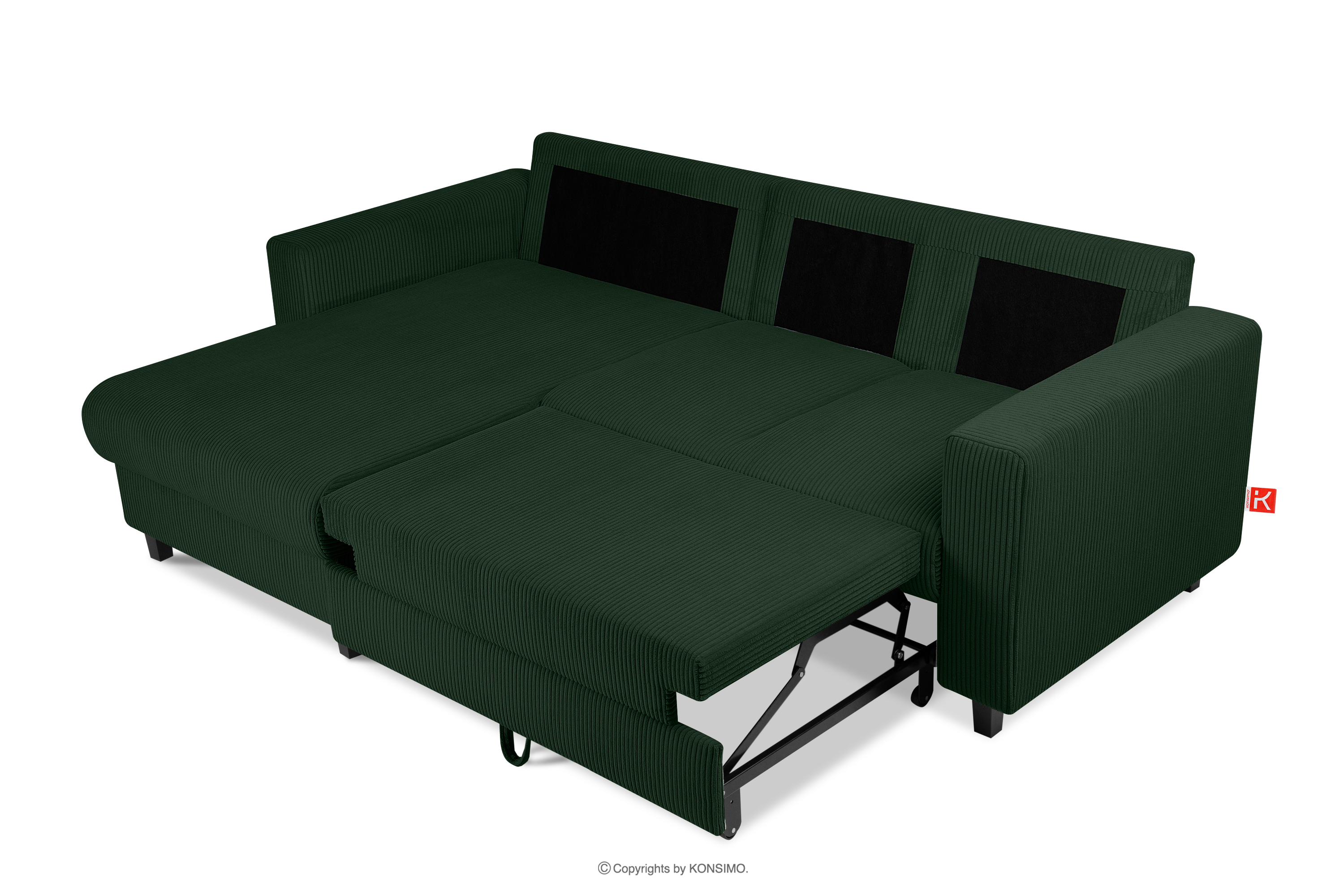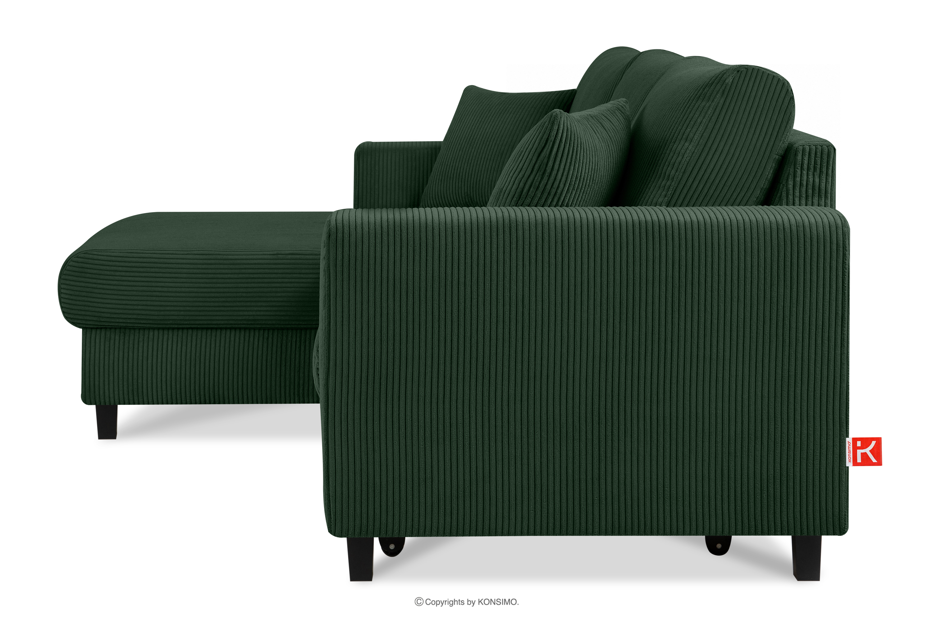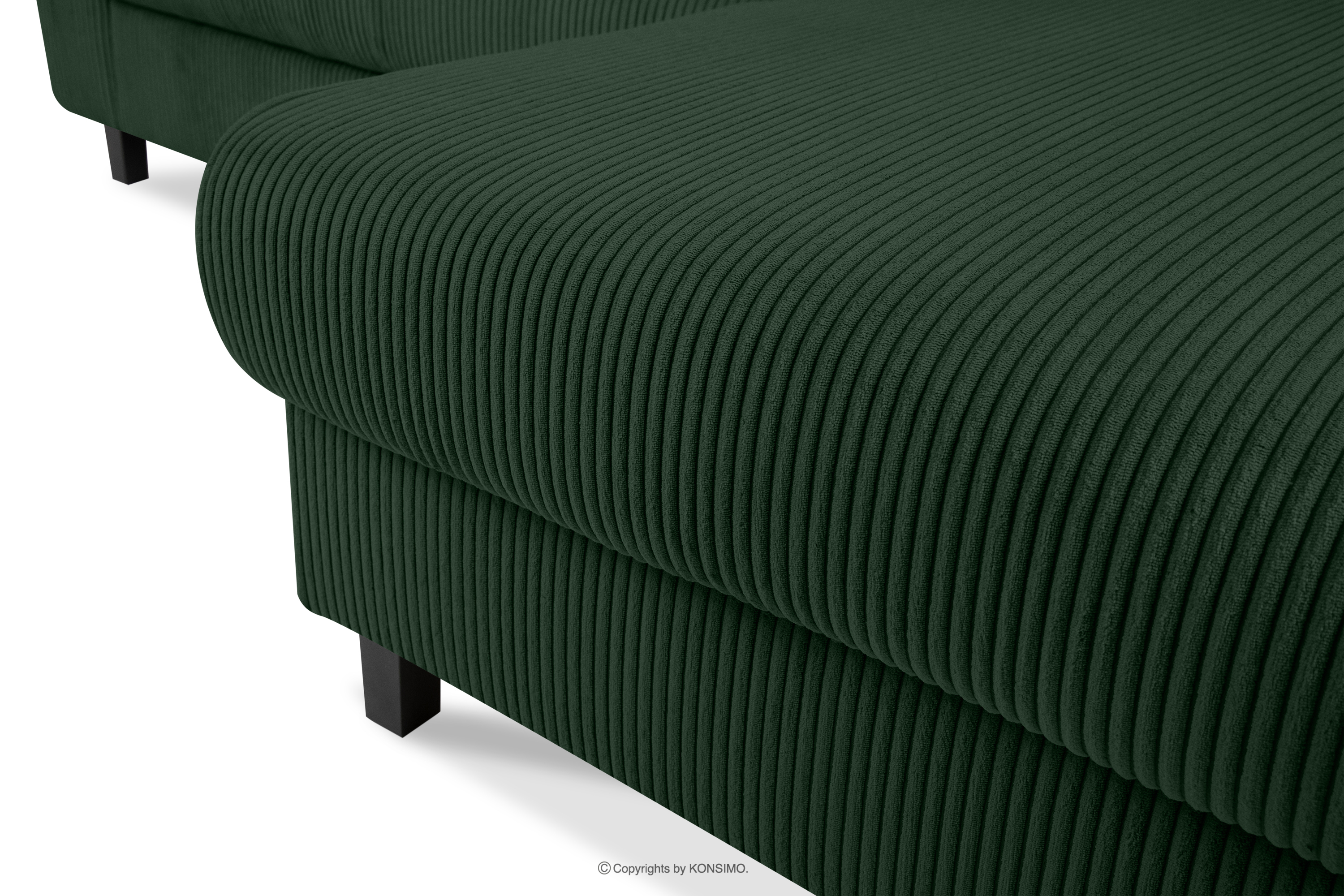 EGRET Ausziehbares Kordstoff-Ecksofa links auf Beinen in dunkelgrün