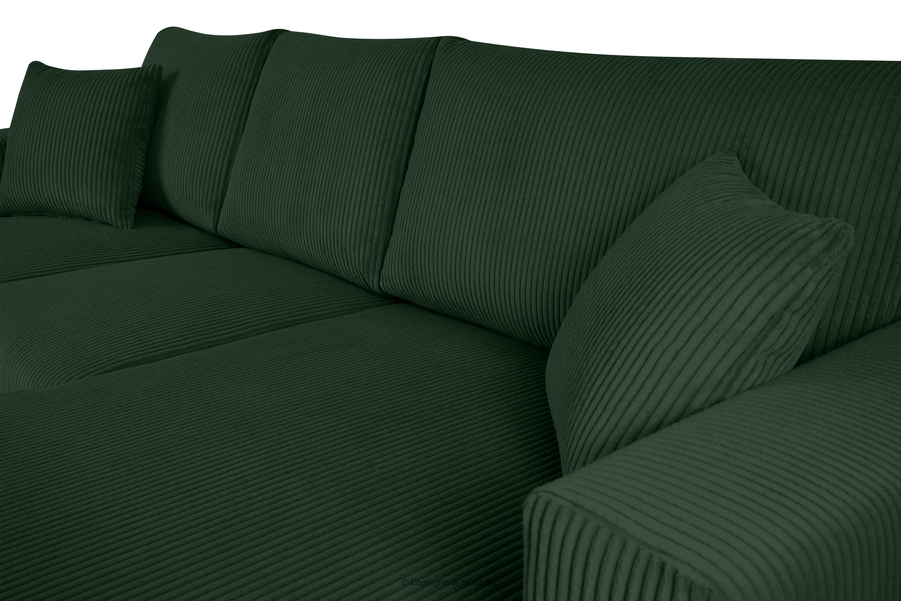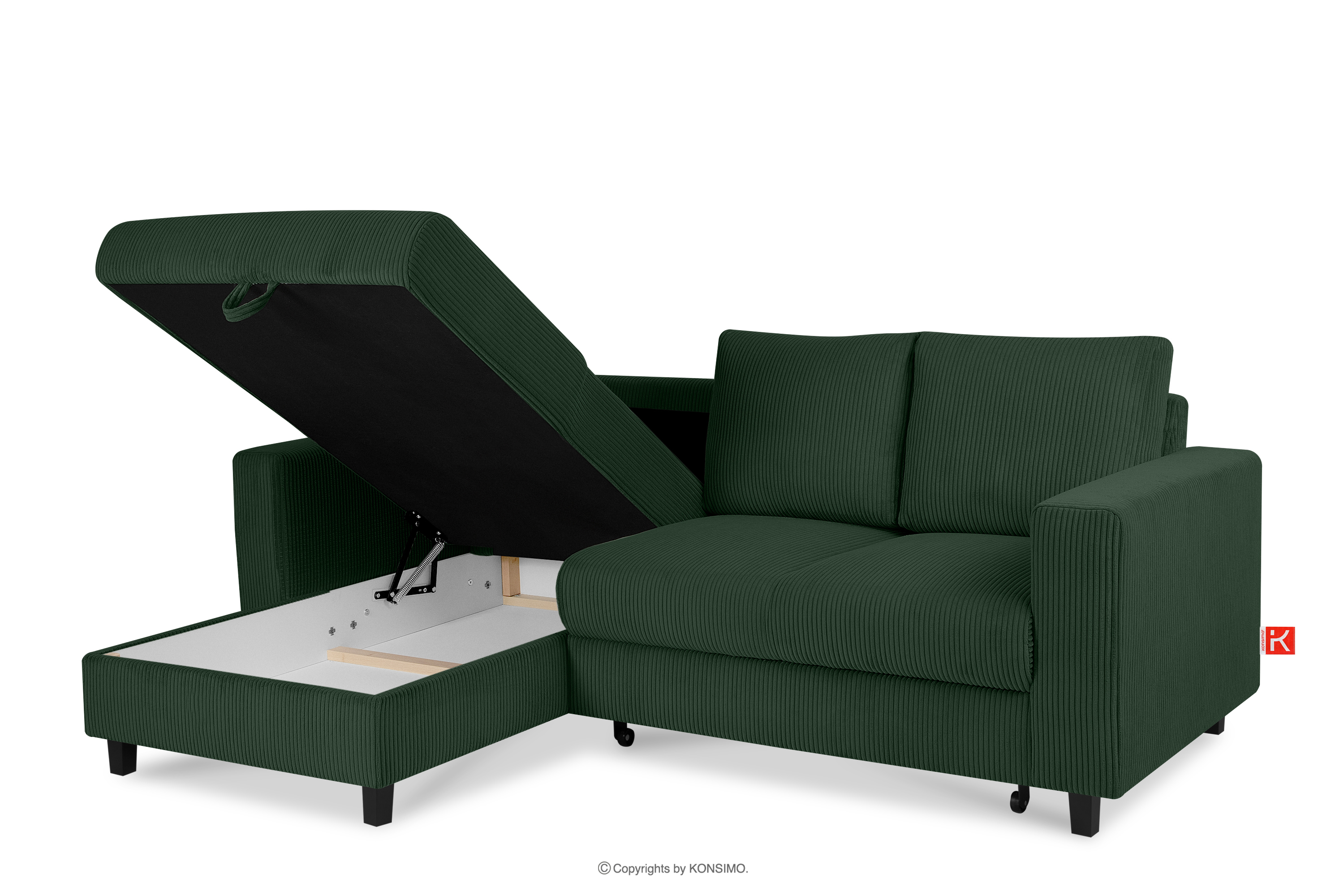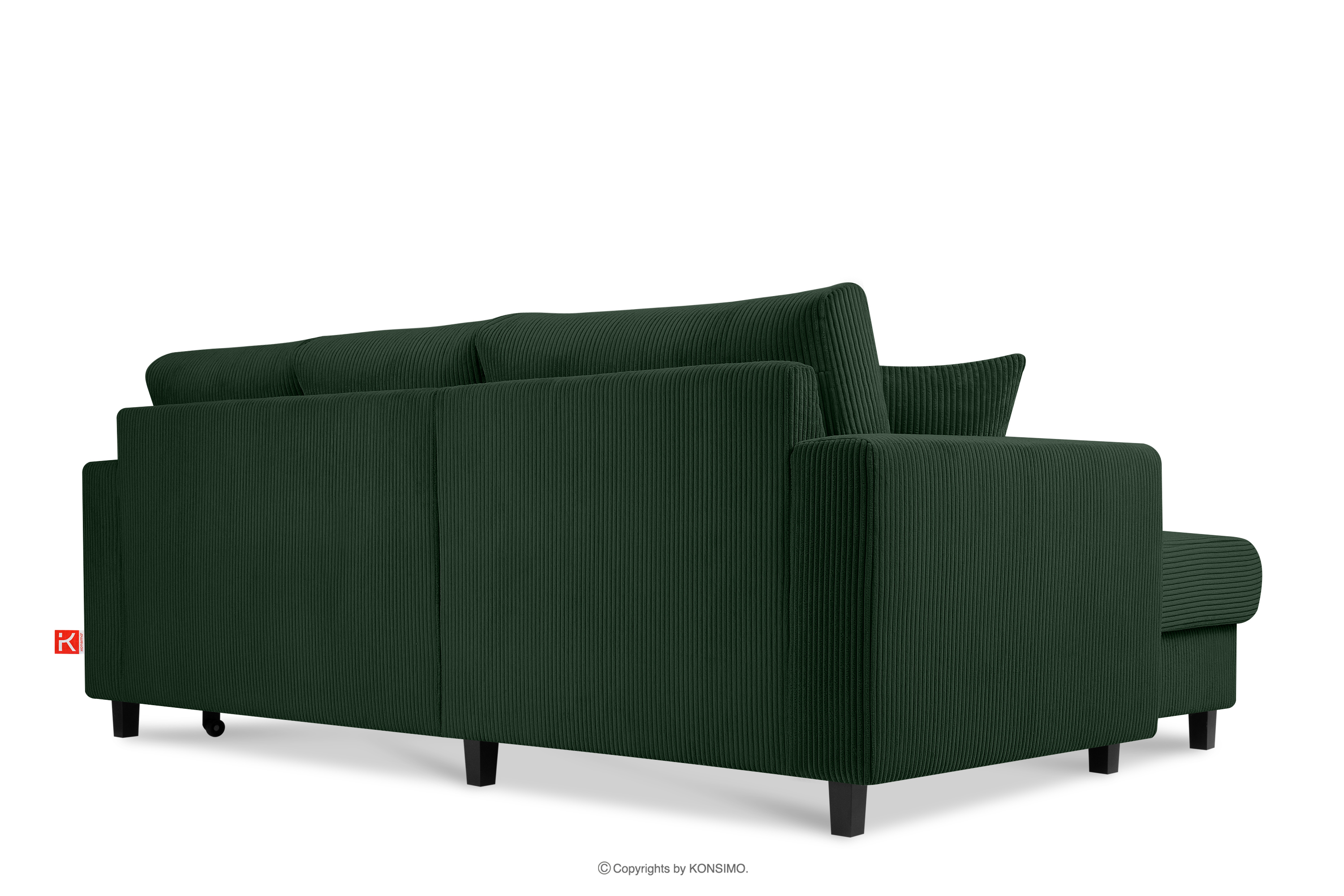 EGRET Ausziehbares Kordstoff-Ecksofa links auf Beinen in dunkelgrün