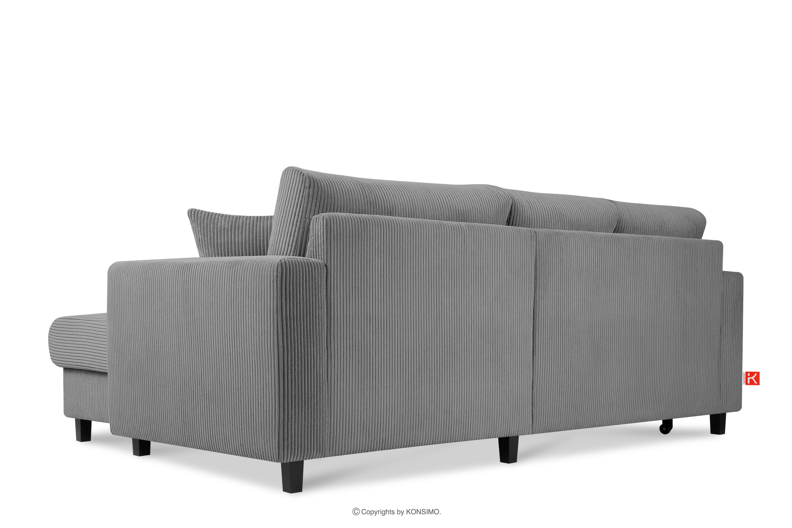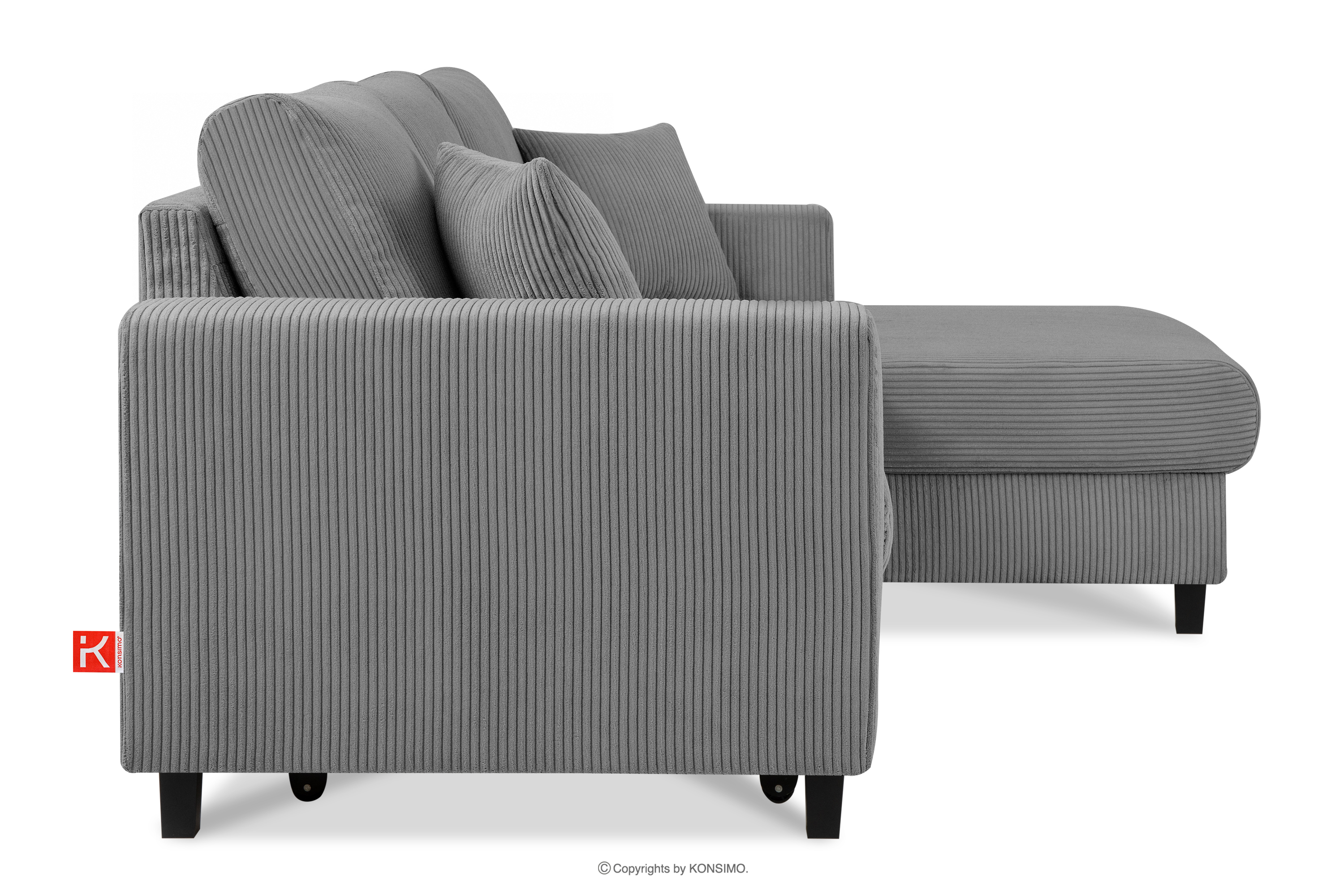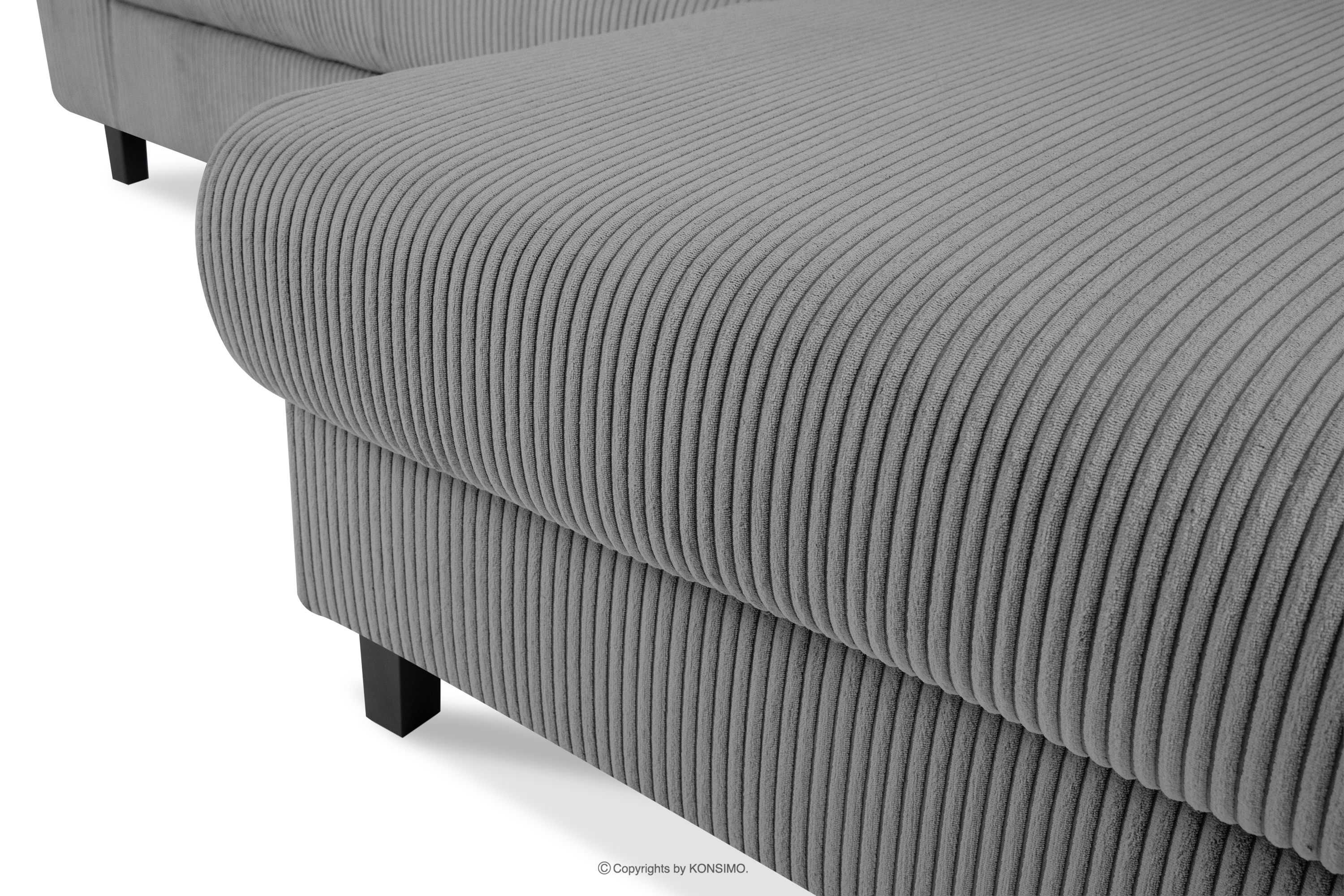 EGRET Ausziehbares Kordstoff-Ecksofa rechts auf Beinen in dunkelgrau
