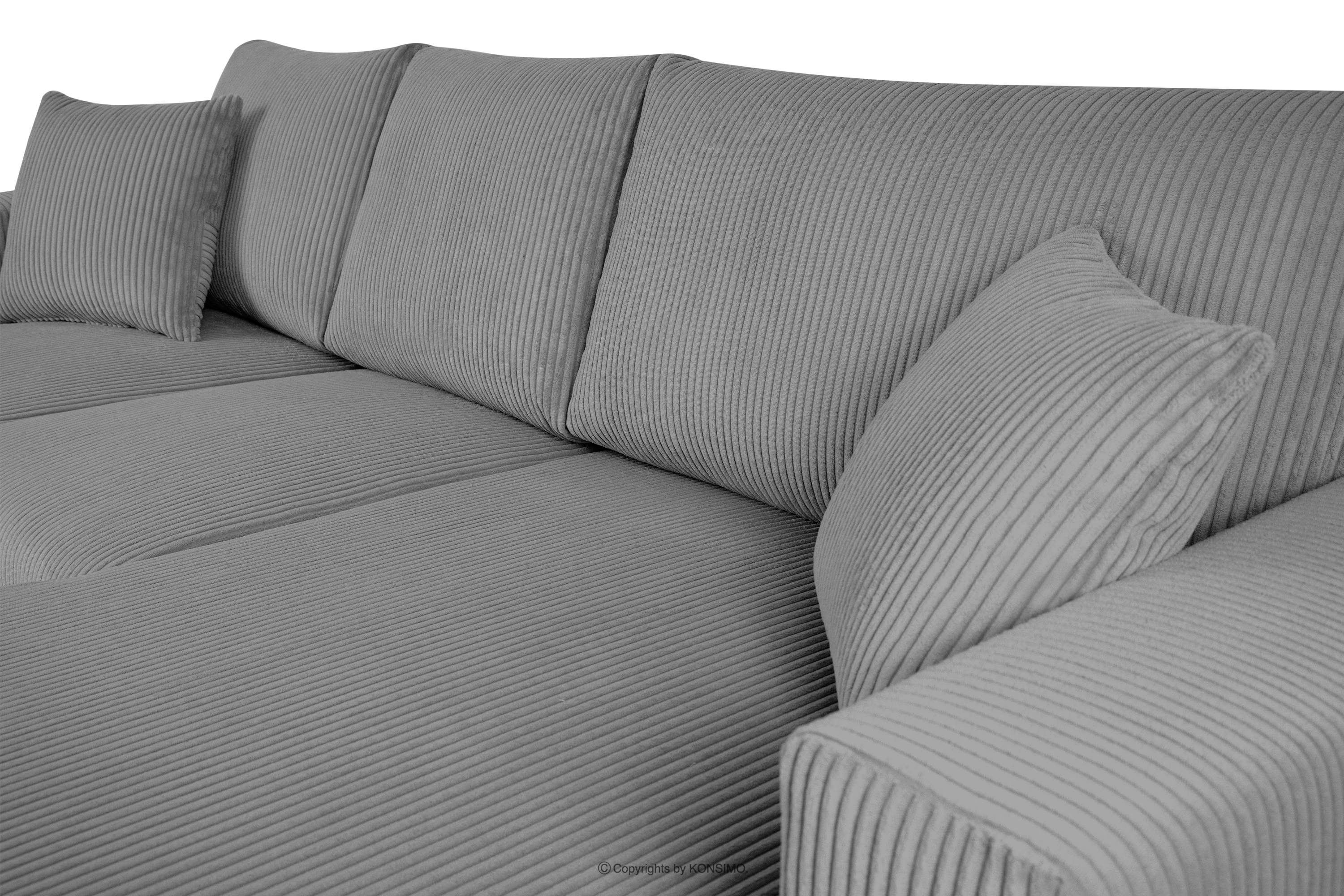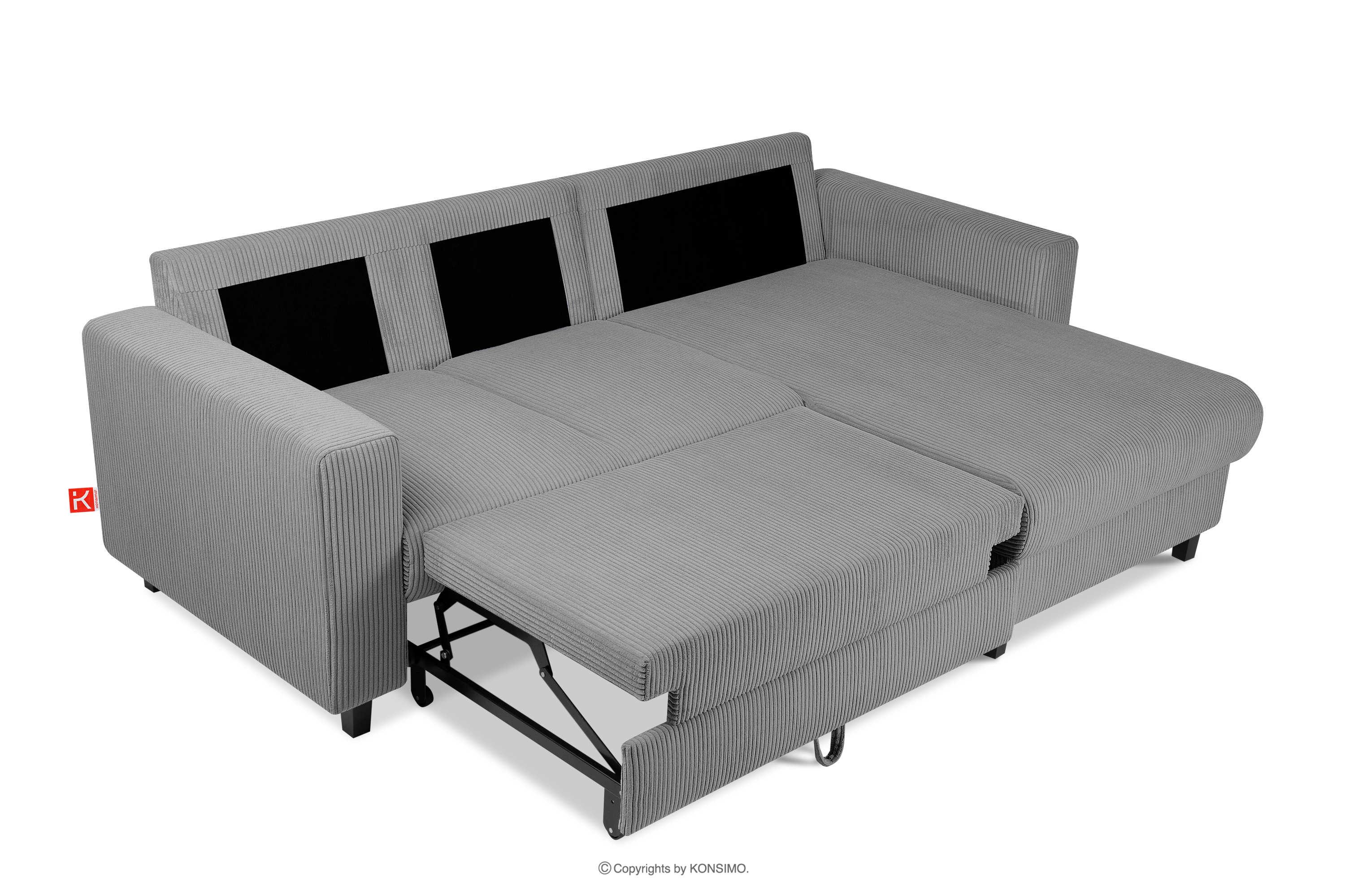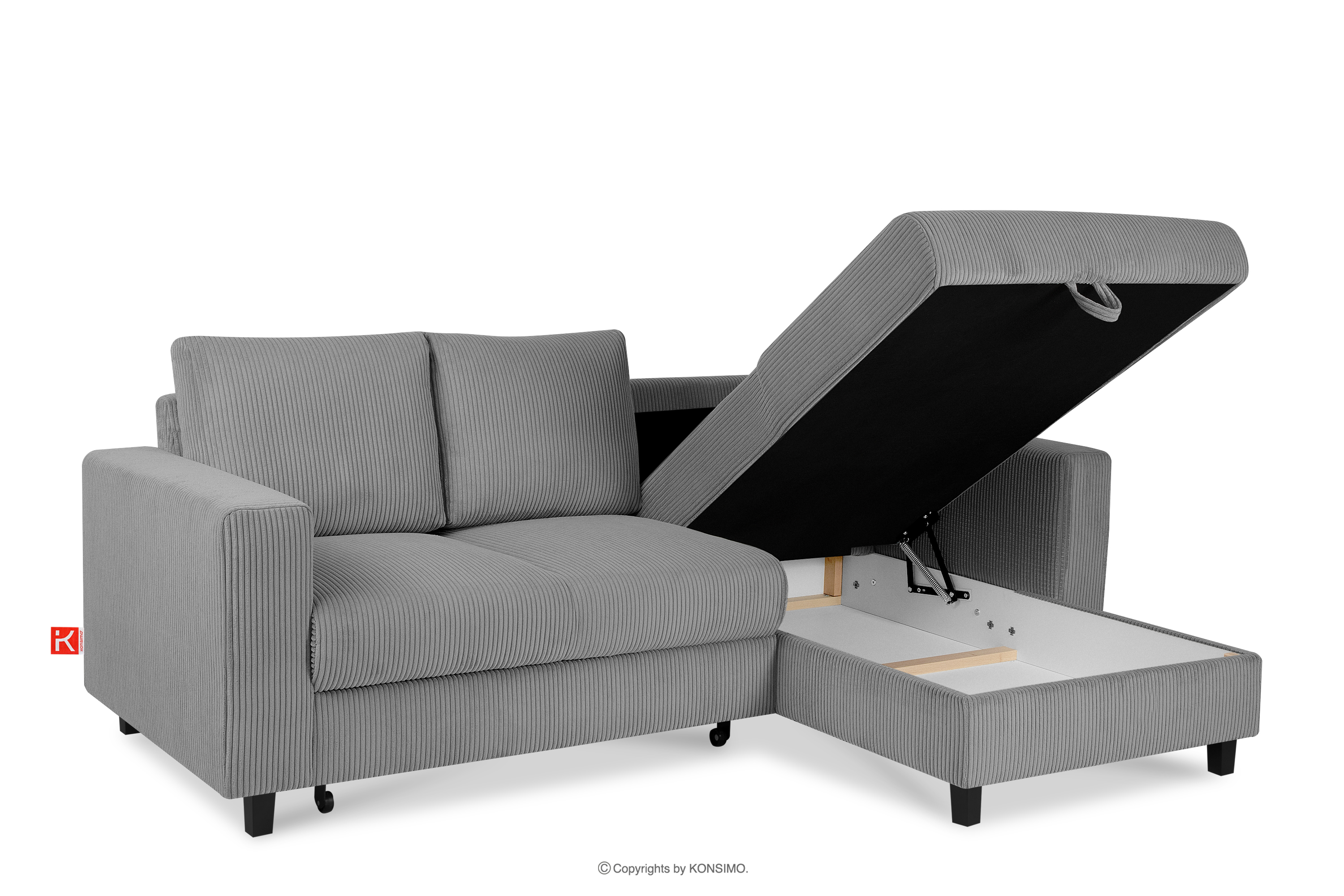 EGRET Ausziehbares Kordstoff-Ecksofa rechts auf Beinen in dunkelgrau