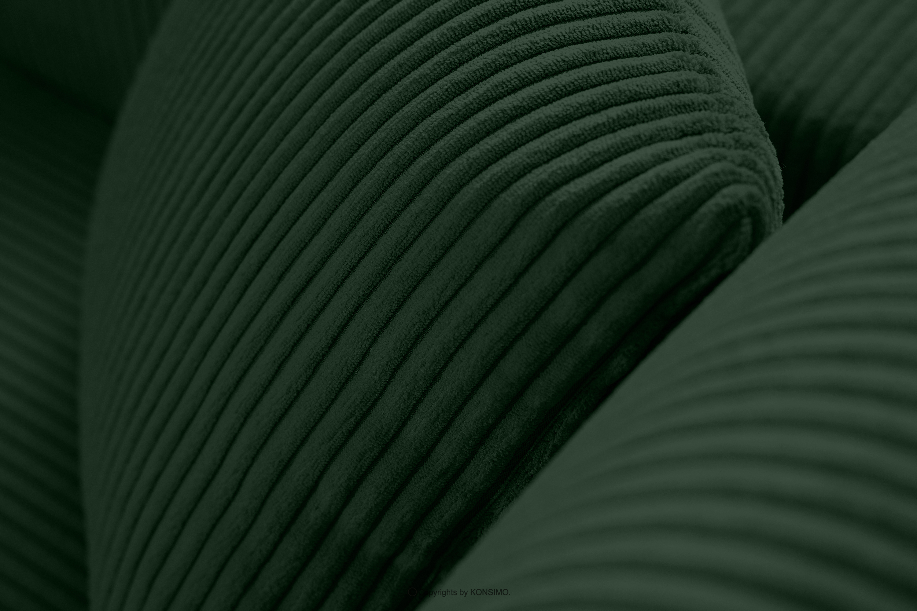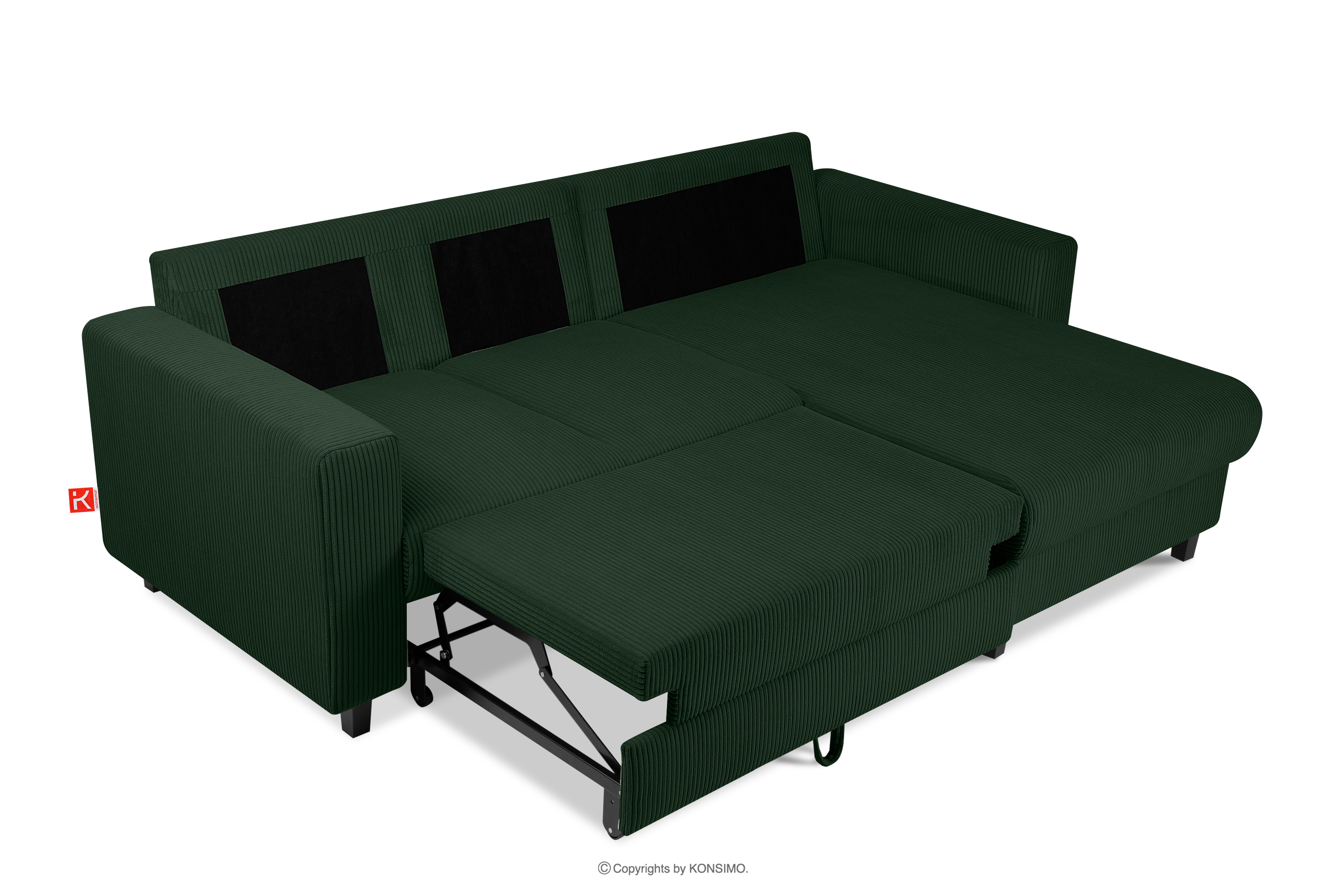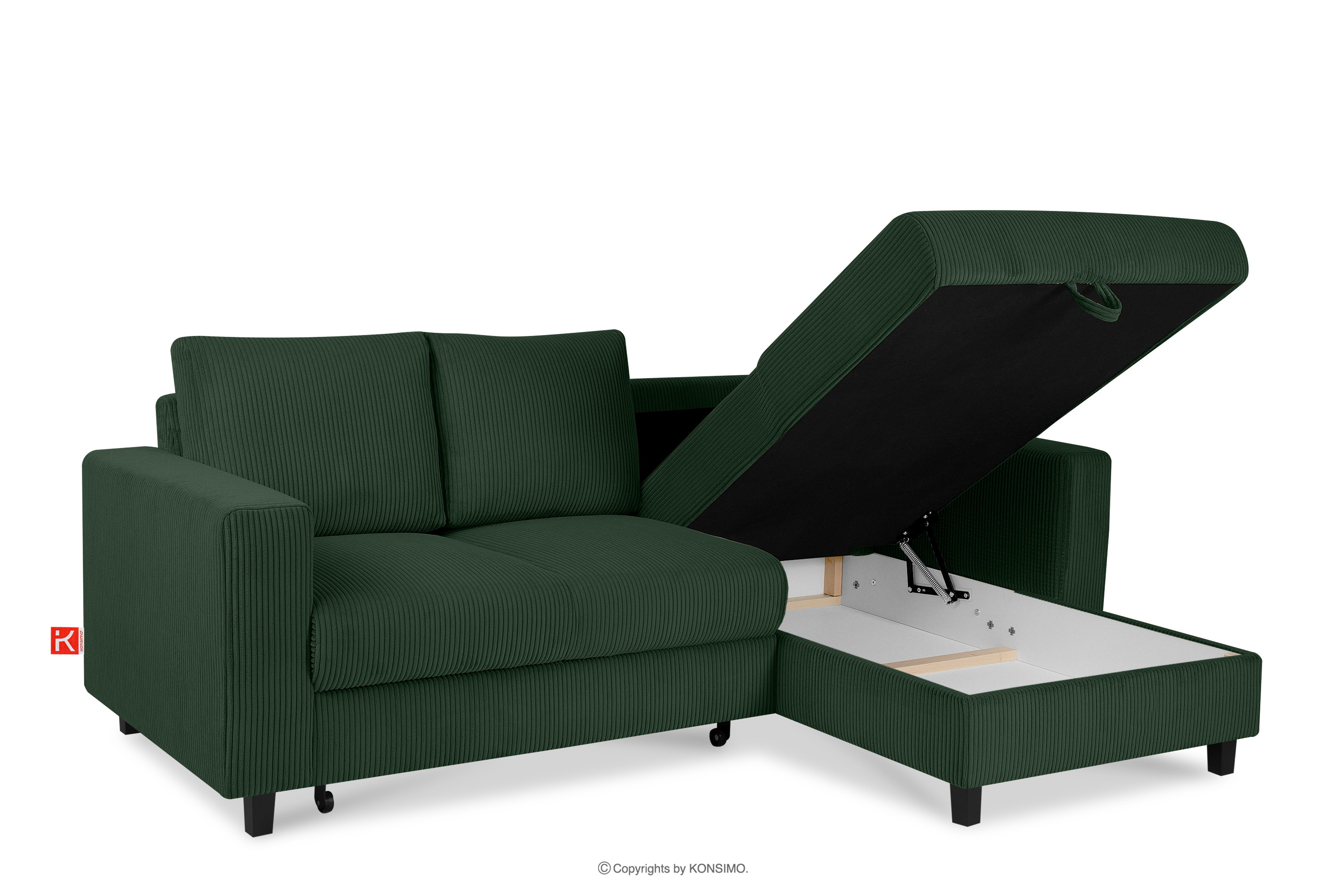 EGRET Ausziehbares Kordstoff-Ecksofa rechts auf Beinen in dunkelgrün