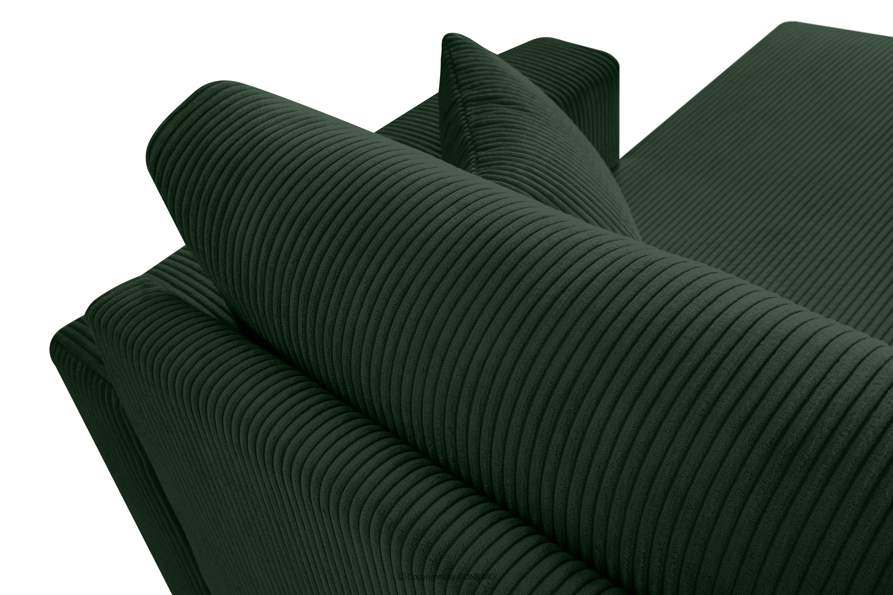 für das Produkt Ausziehbares Kordstoff-Ecksofa rechts auf Beinen in dunkelgrün