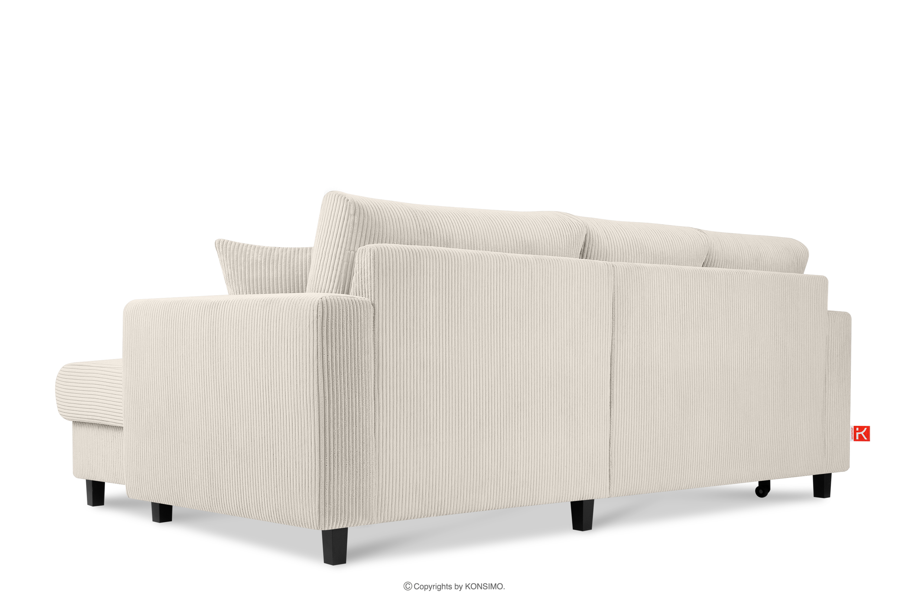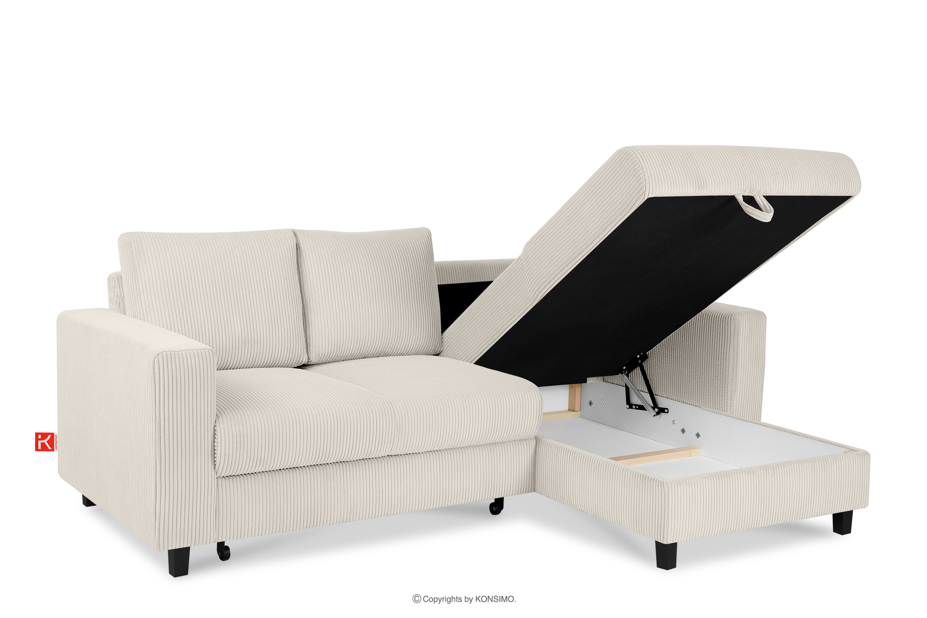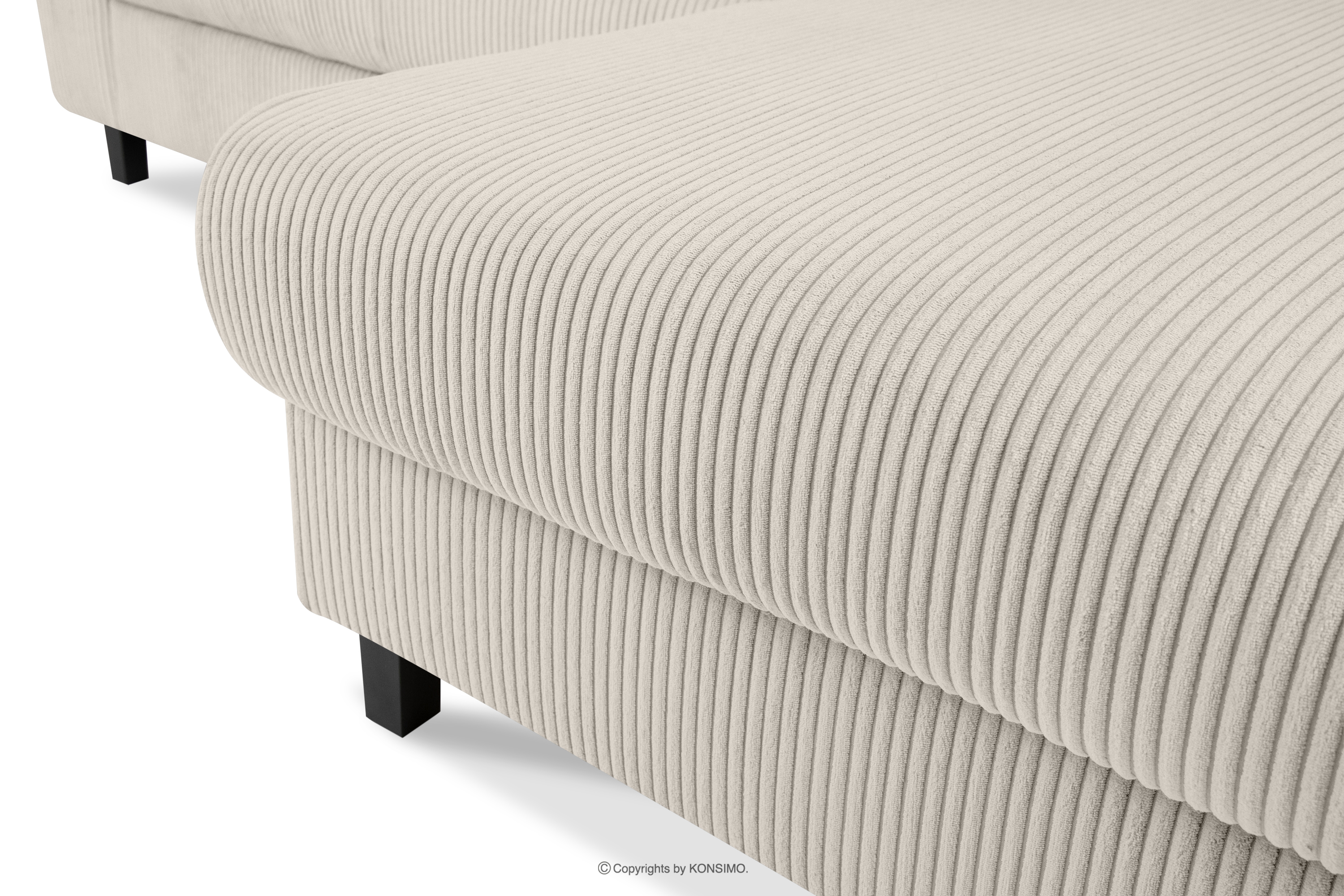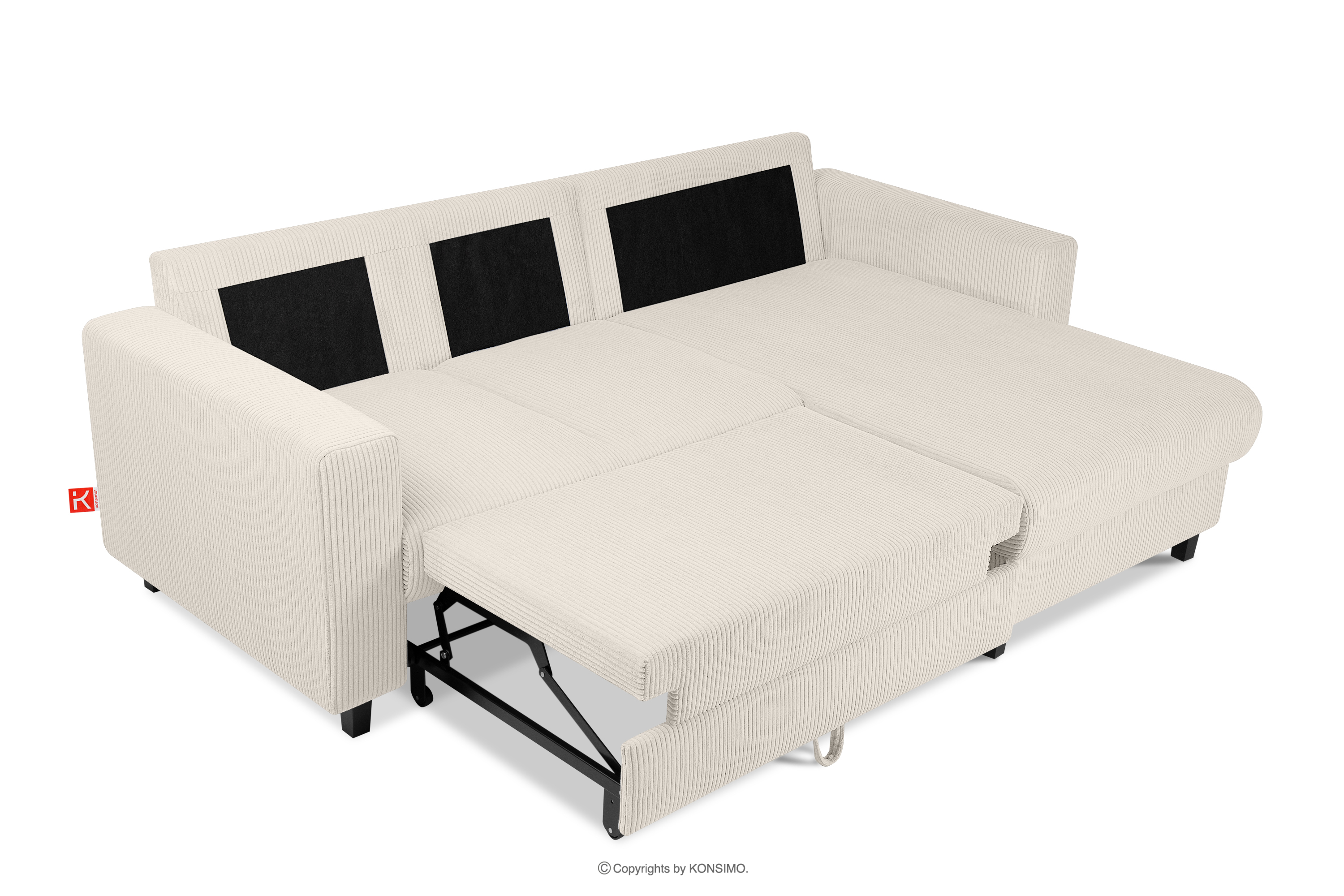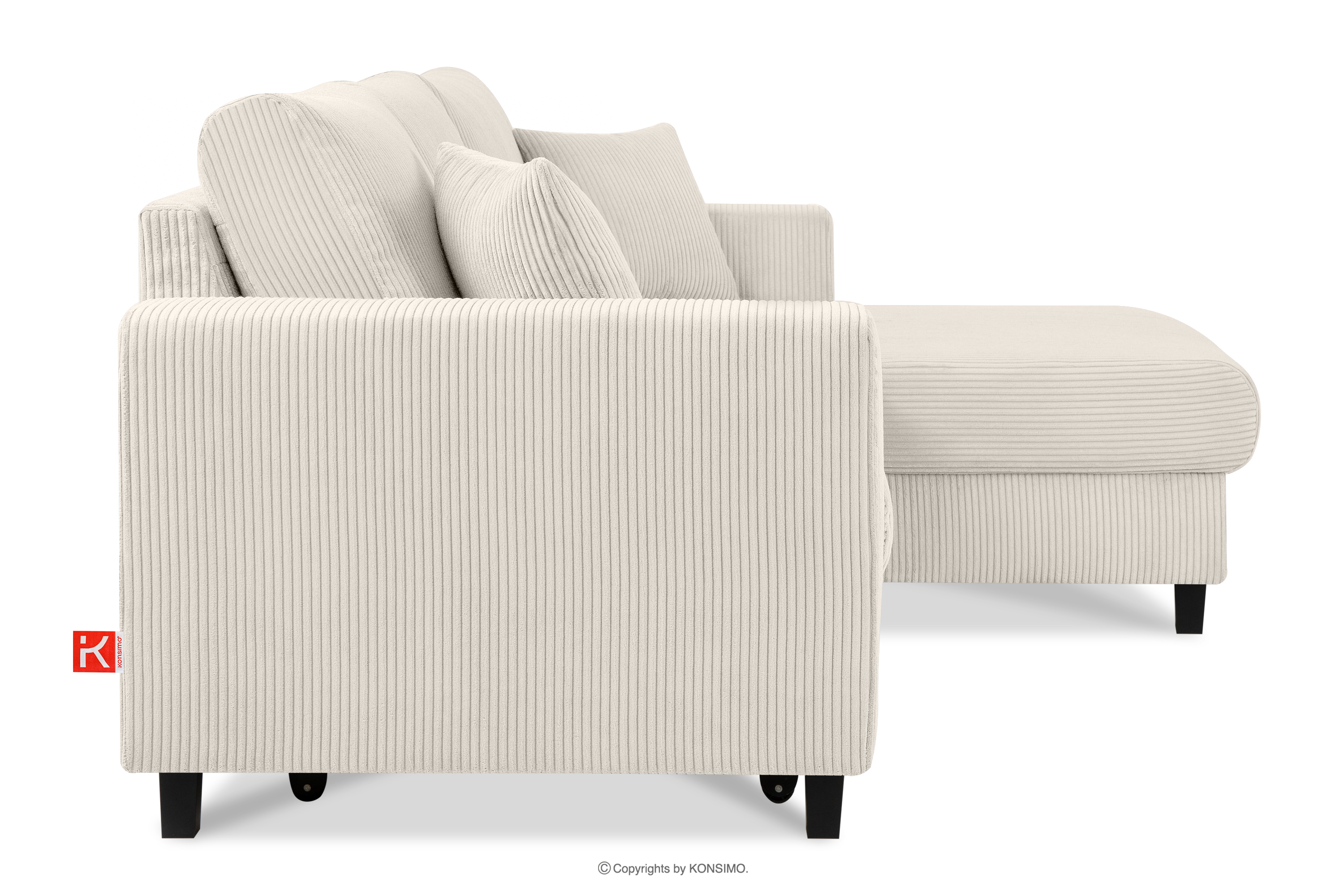 EGRET Ausziehbares Kordstoff-Ecksofa rechts auf Beinen in cremefarben