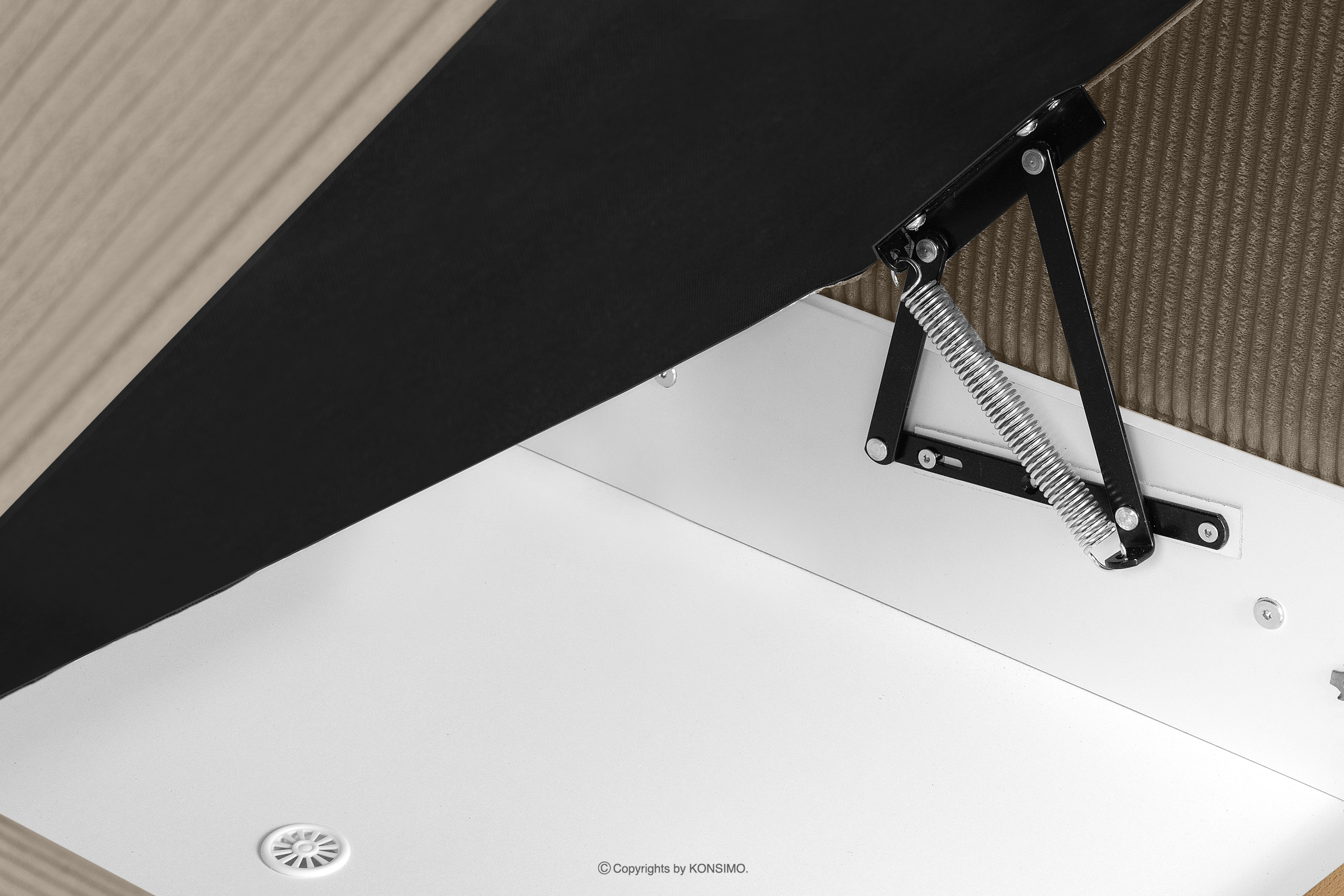 Das Ecksofa Kordstoff beige rechts auf Füßen ist eine einzigartige Kombination aus Funktionalität, Komfort und Eleganz. Das Gestell aus Kiefern- und Buchenholz garantiert die Langlebigkeit und Solidität der Struktur, die das Möbelstück perfekt für den täglichen Gebrauch macht. Die bei der Herstellung verwendeten Materialien, wie Span- und Faserplatten, wurden sorgfältig ausgewählt, um eine lange Nutzungsdauer zu gewährleisten.