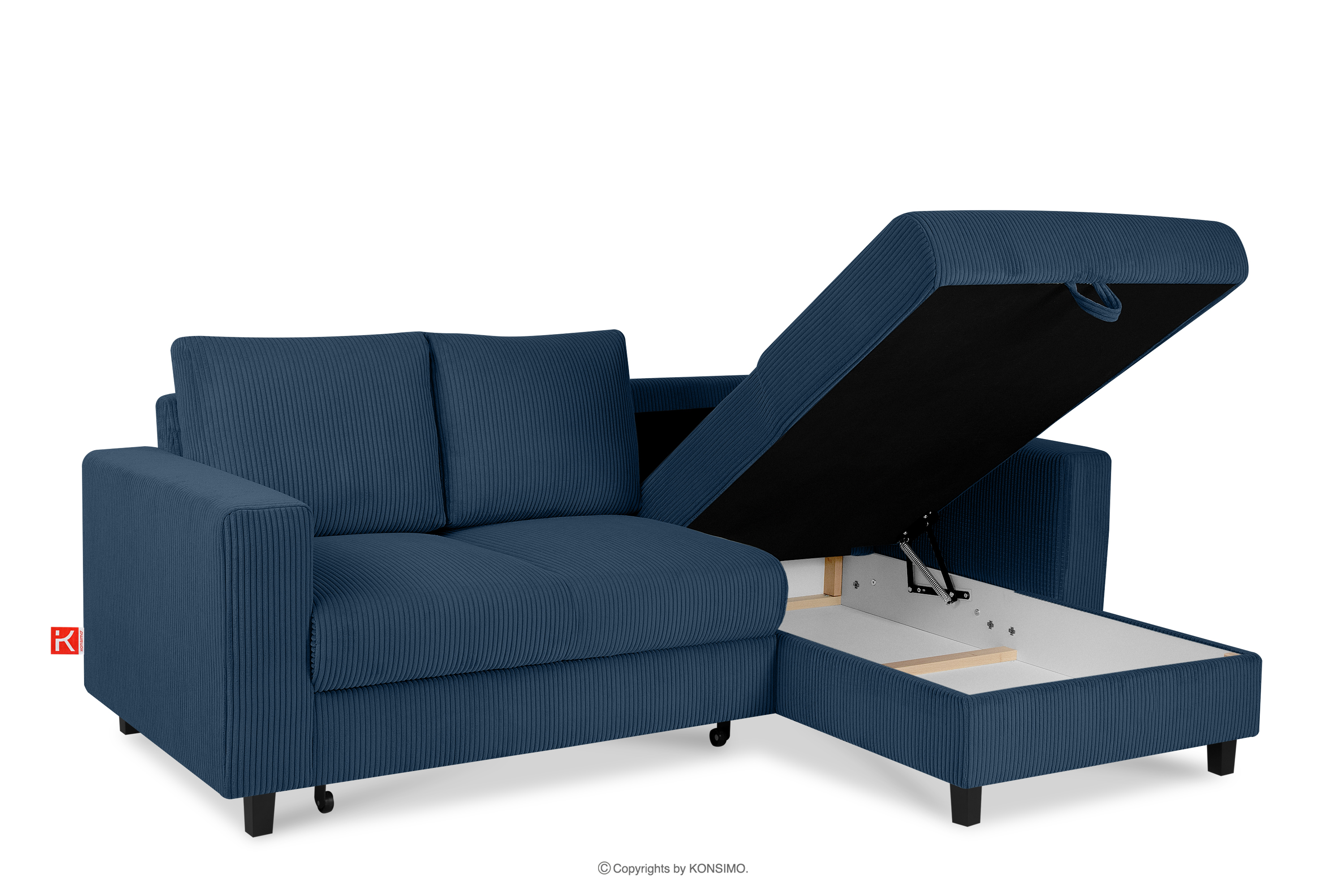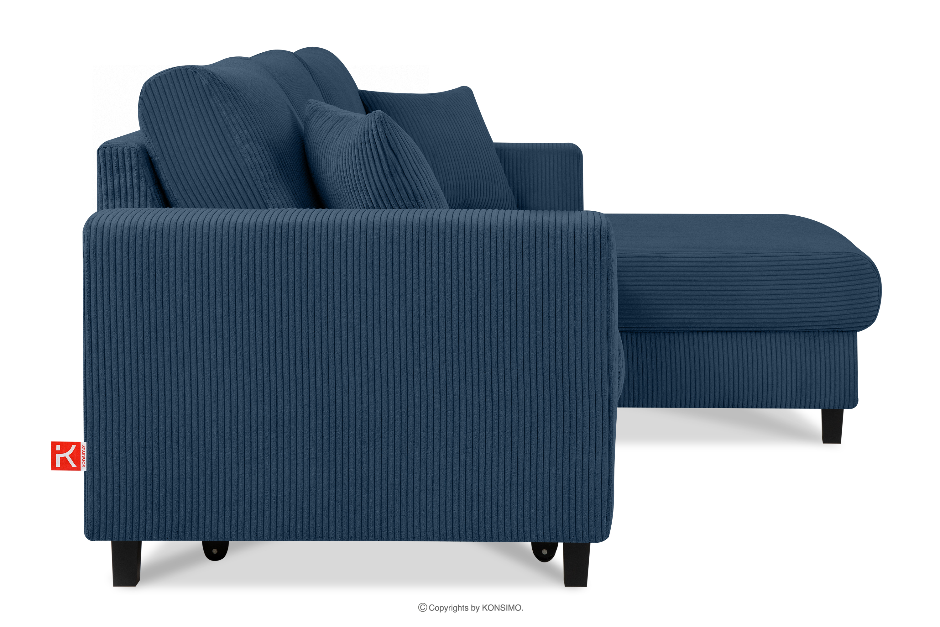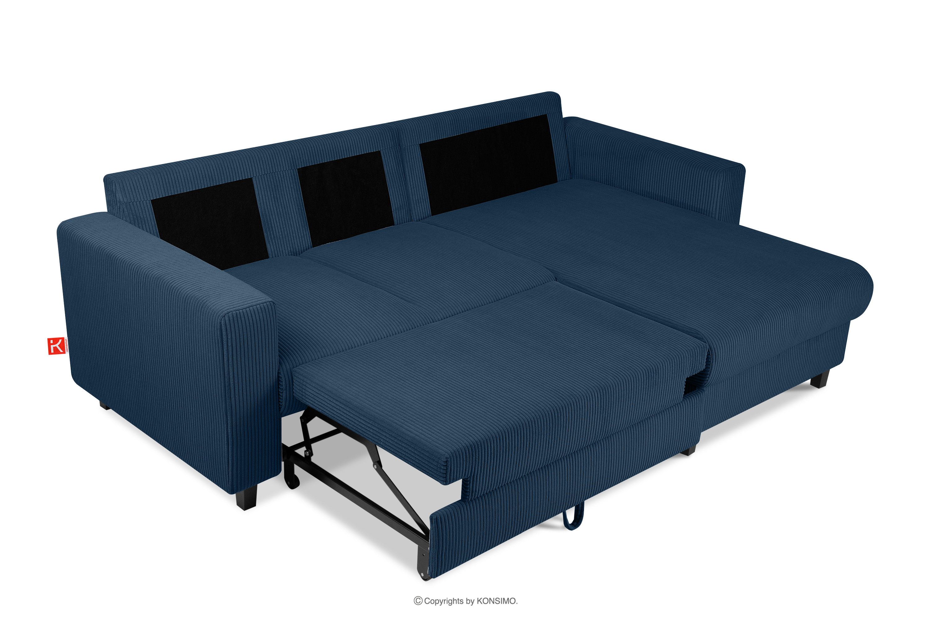 EGRET Ausziehbares Kordstoff-Ecksofa rechts auf Beinen in dunkelblau