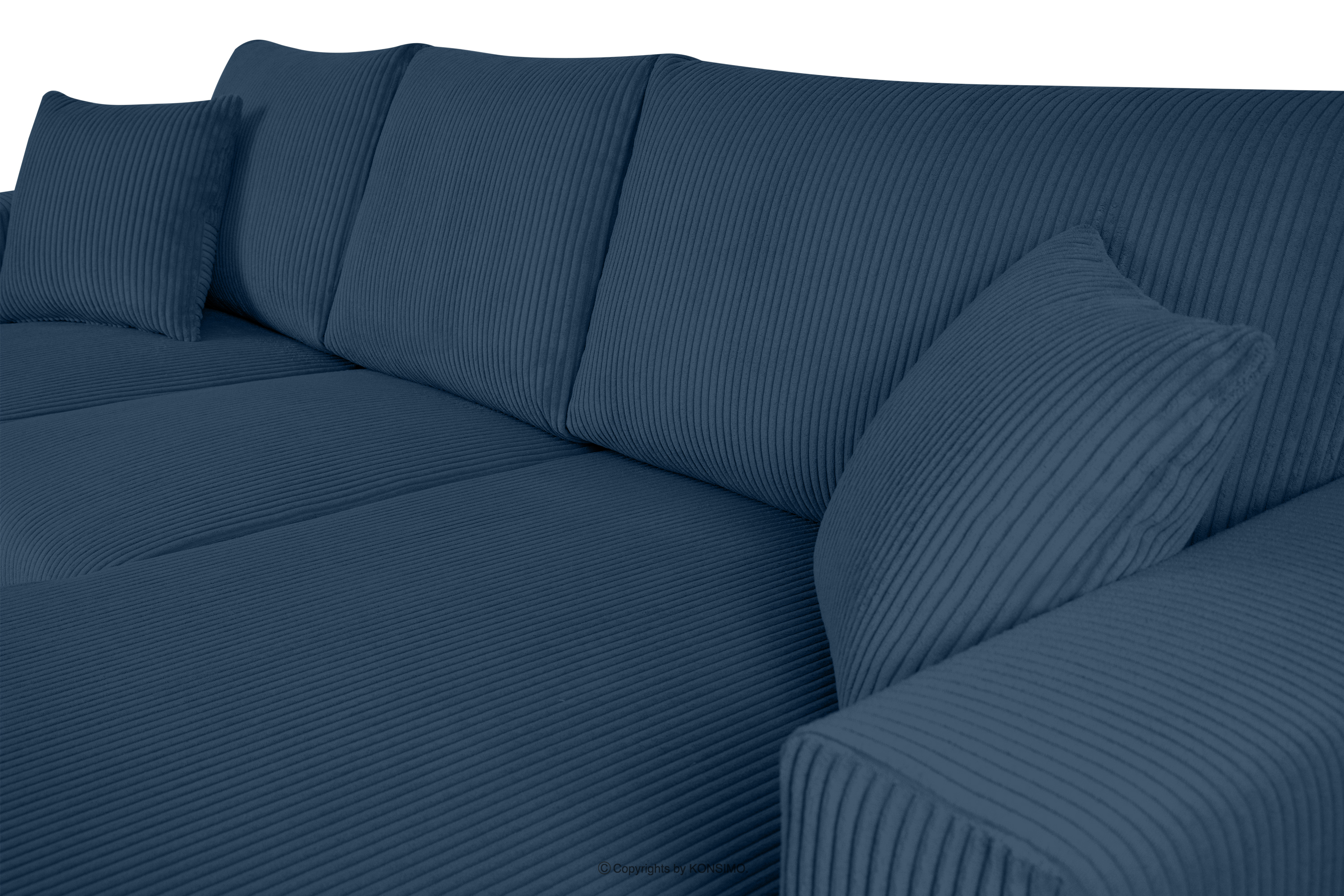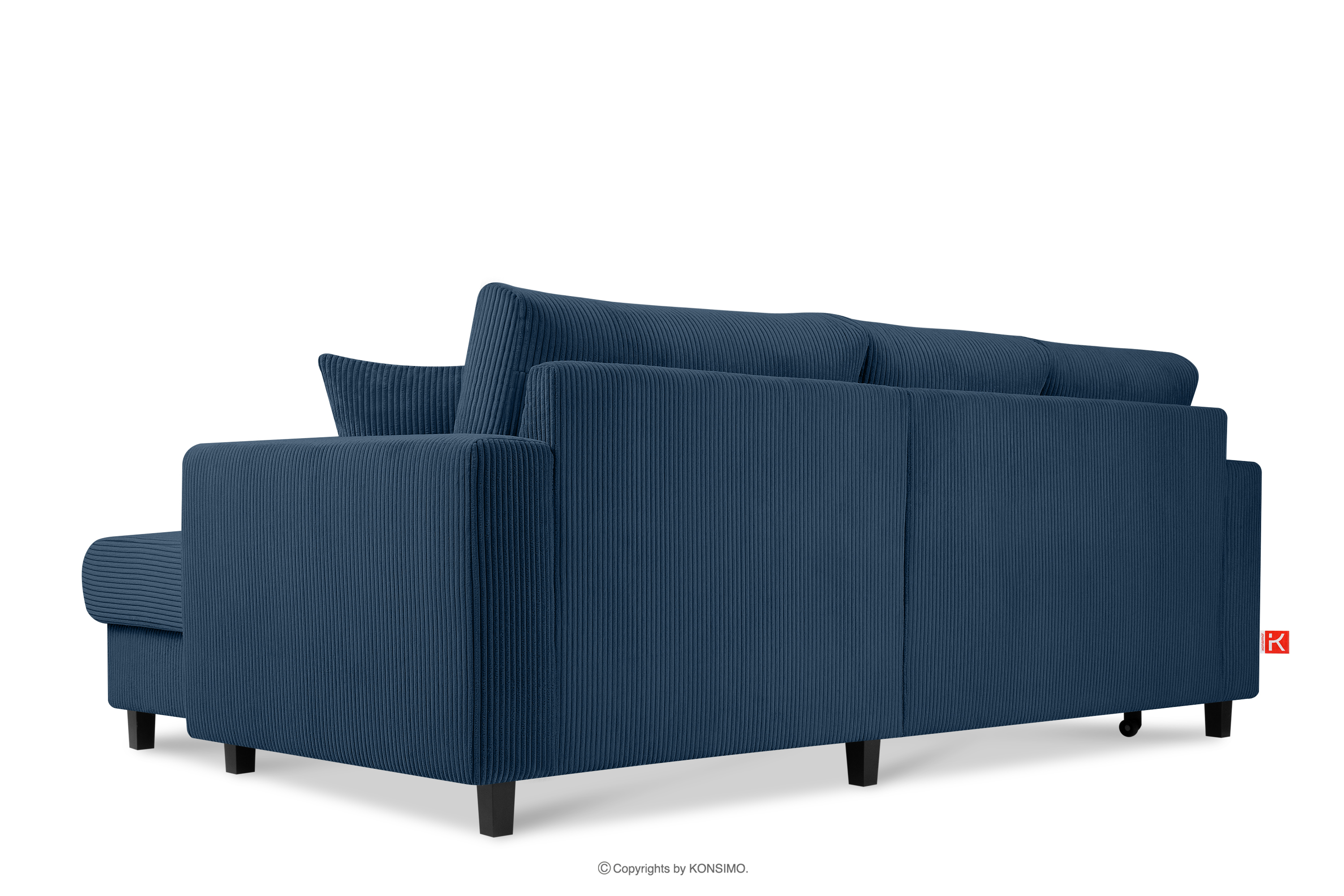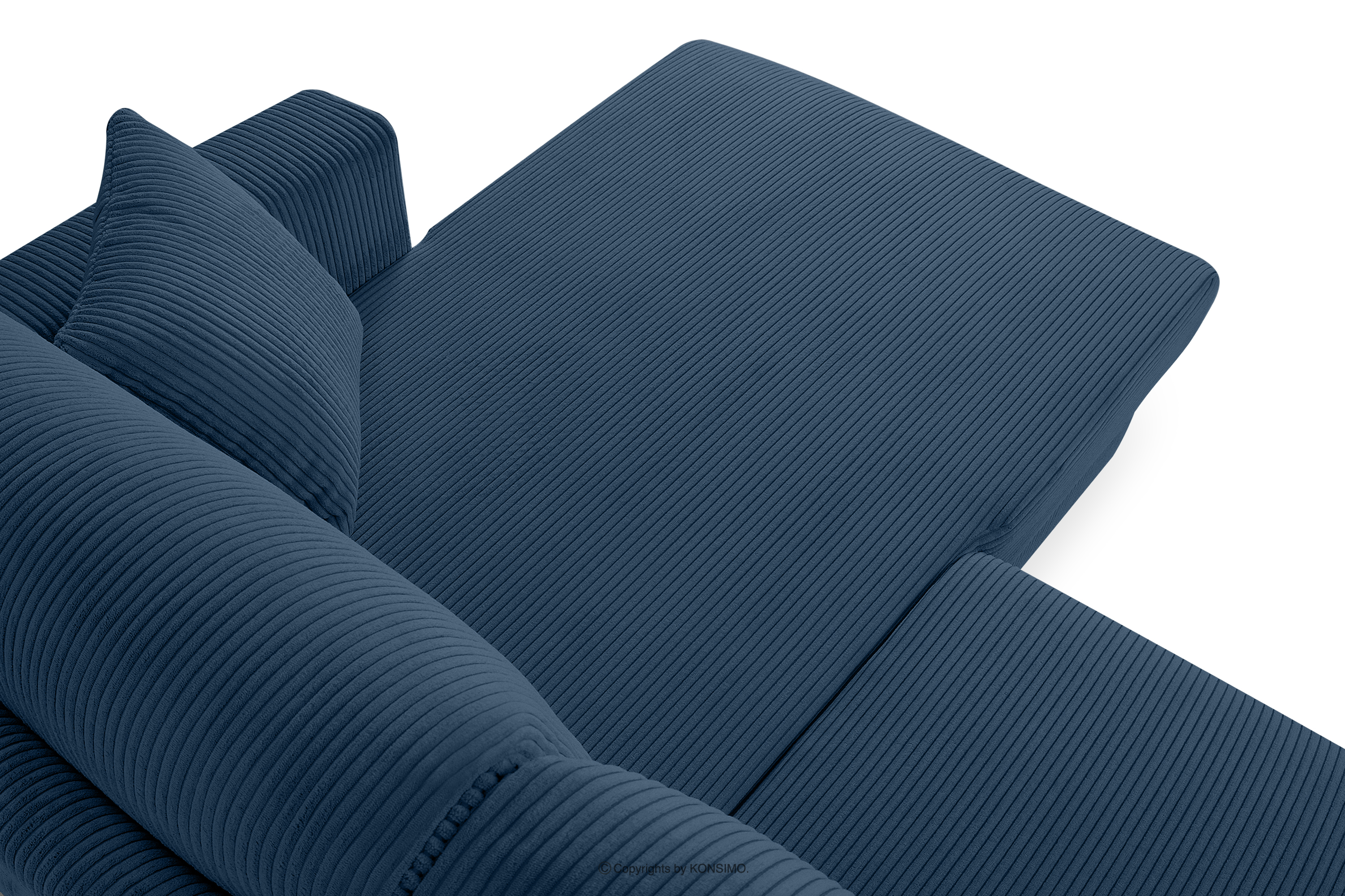 EGRET Ausziehbares Kordstoff-Ecksofa rechts auf Beinen in dunkelblau