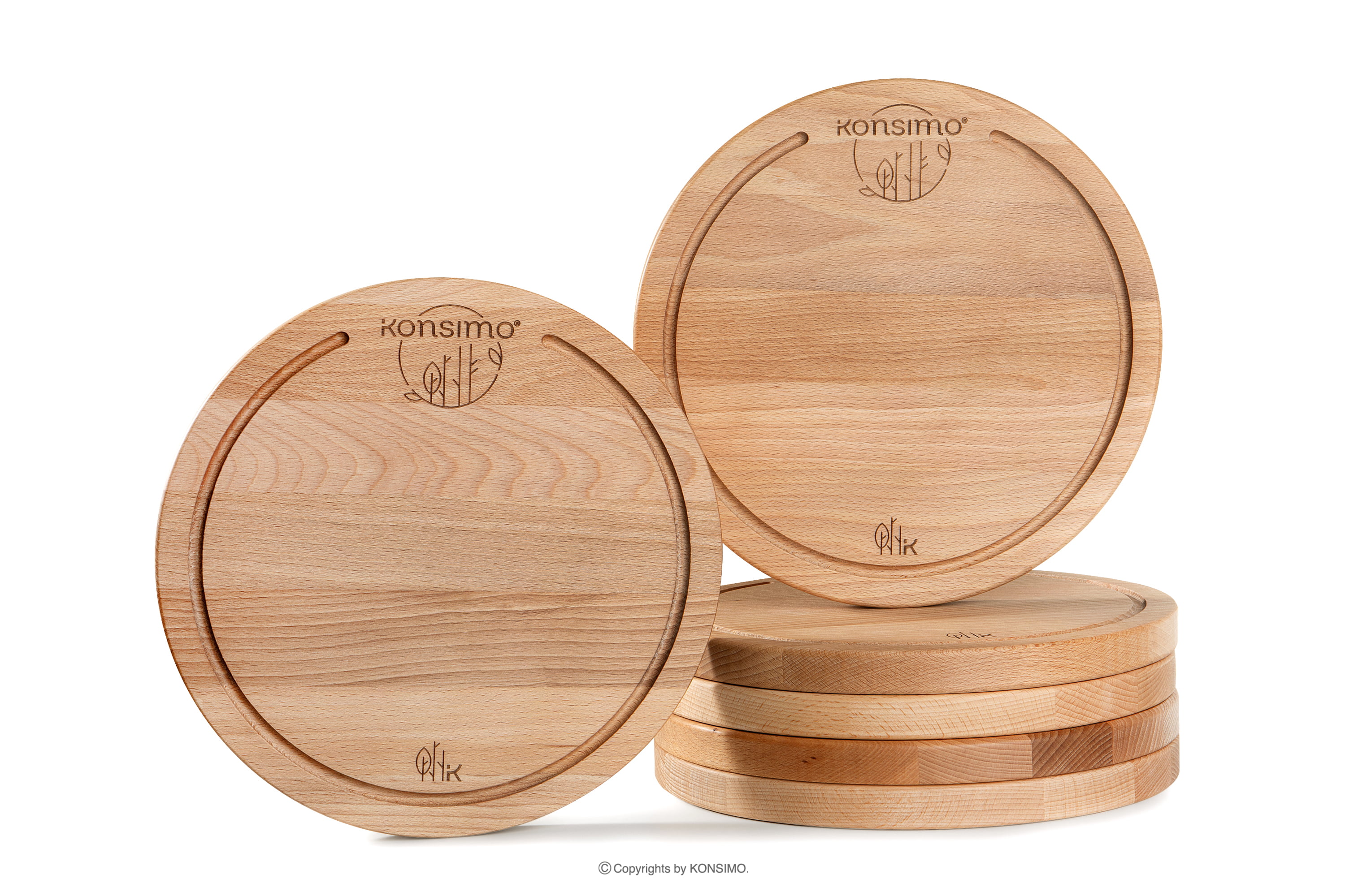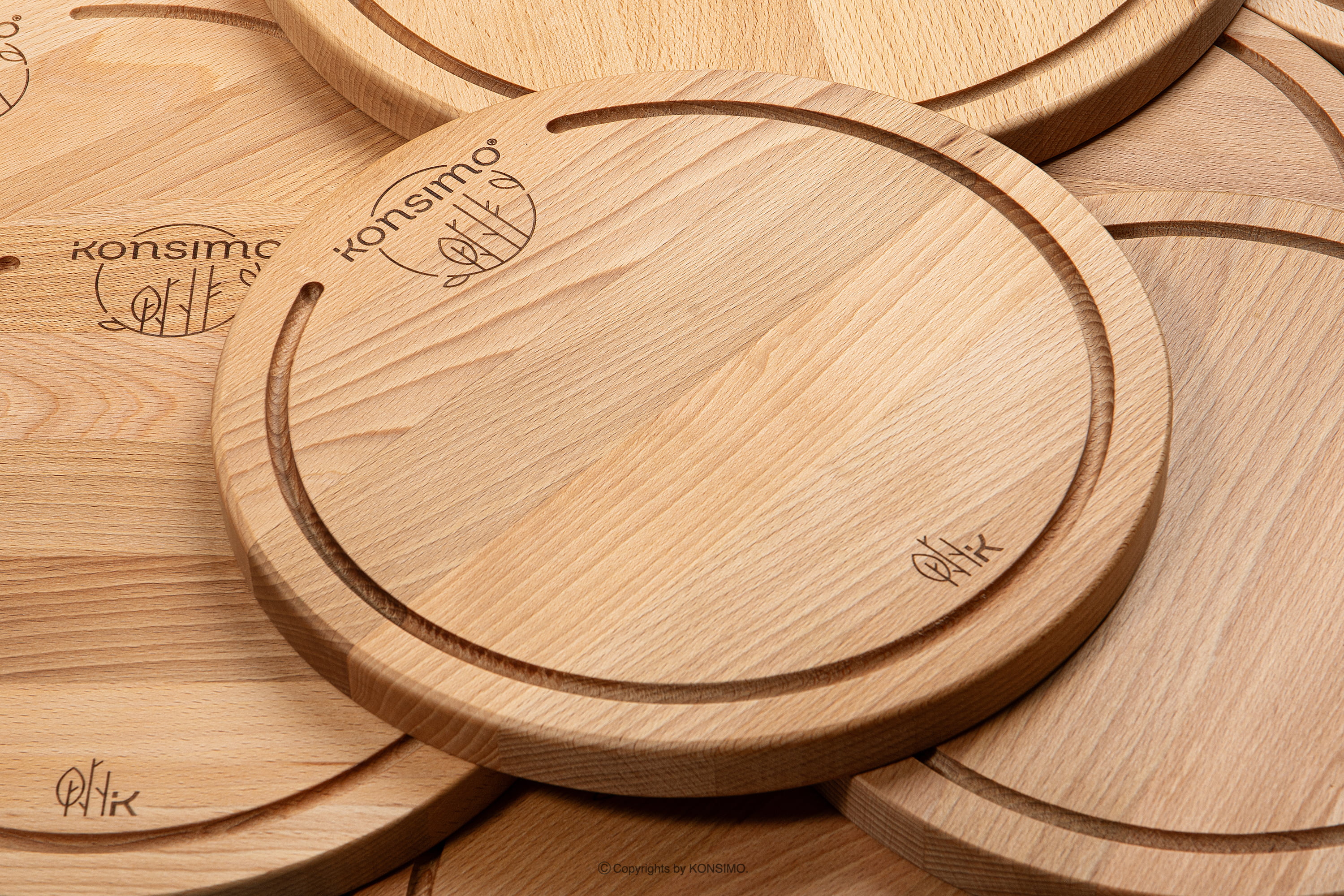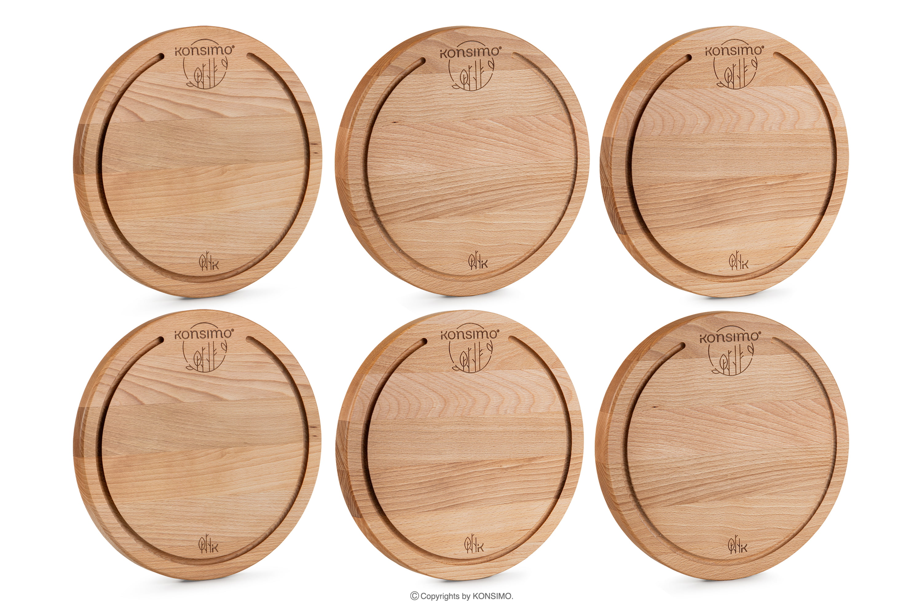 Das 6-teilige Schneidebrett-Set aus Buchenholz ist nicht nur praktisch im Gebrauch, sondern dient auch als Design-Accessoire zum Servieren von Snacks oder Gerichten. Seine runde Form aus hochwertigem Buchenholz verleiht ihm Eleganz, aber auch Langlebigkeit und Stärke. Dadurch ist es ideal zum Schneiden verschiedener Produkte geeignet, ohne dass die Messer stumpf werden.