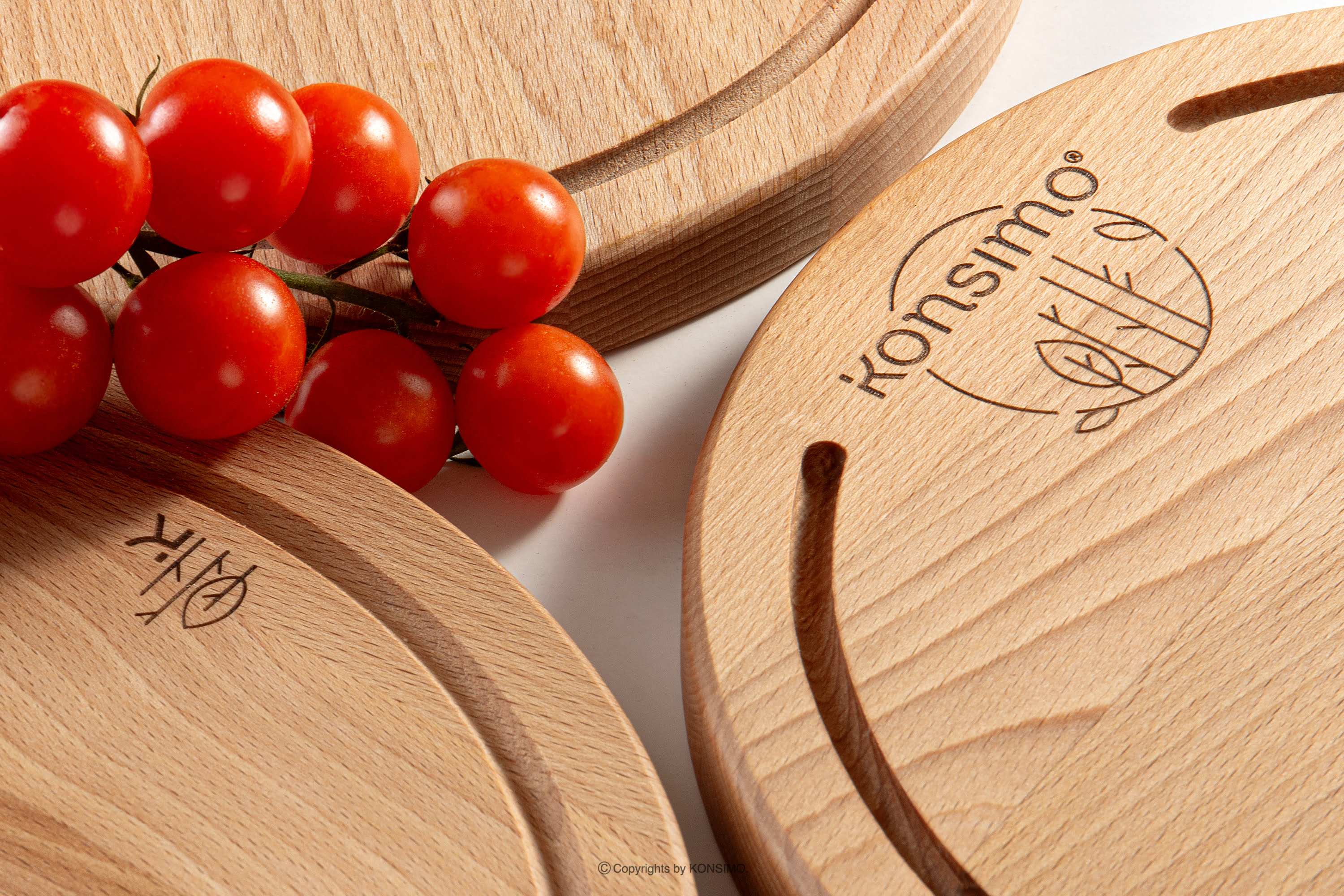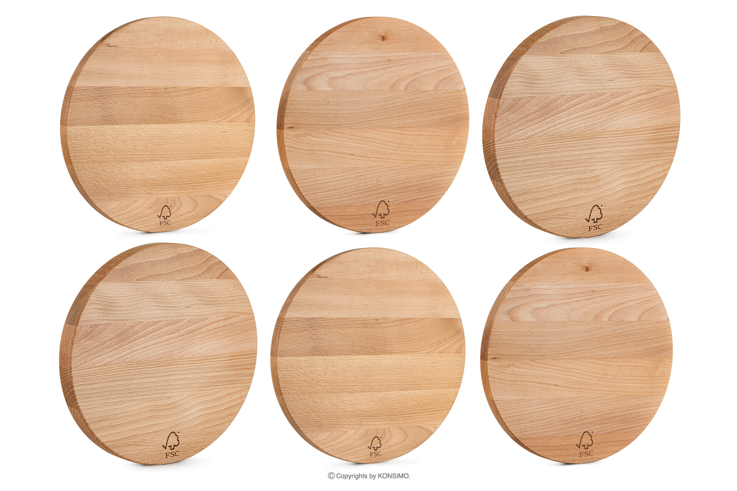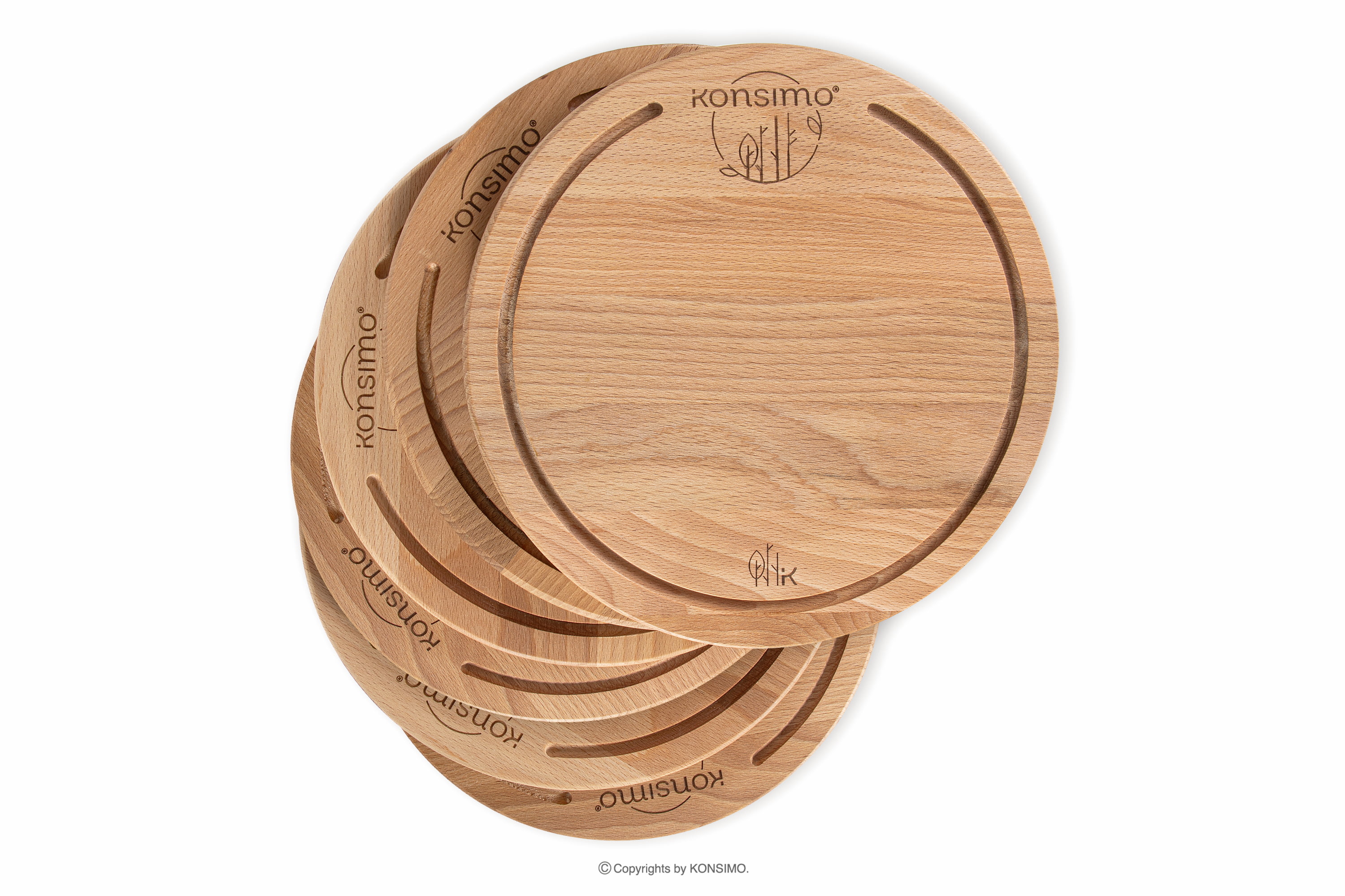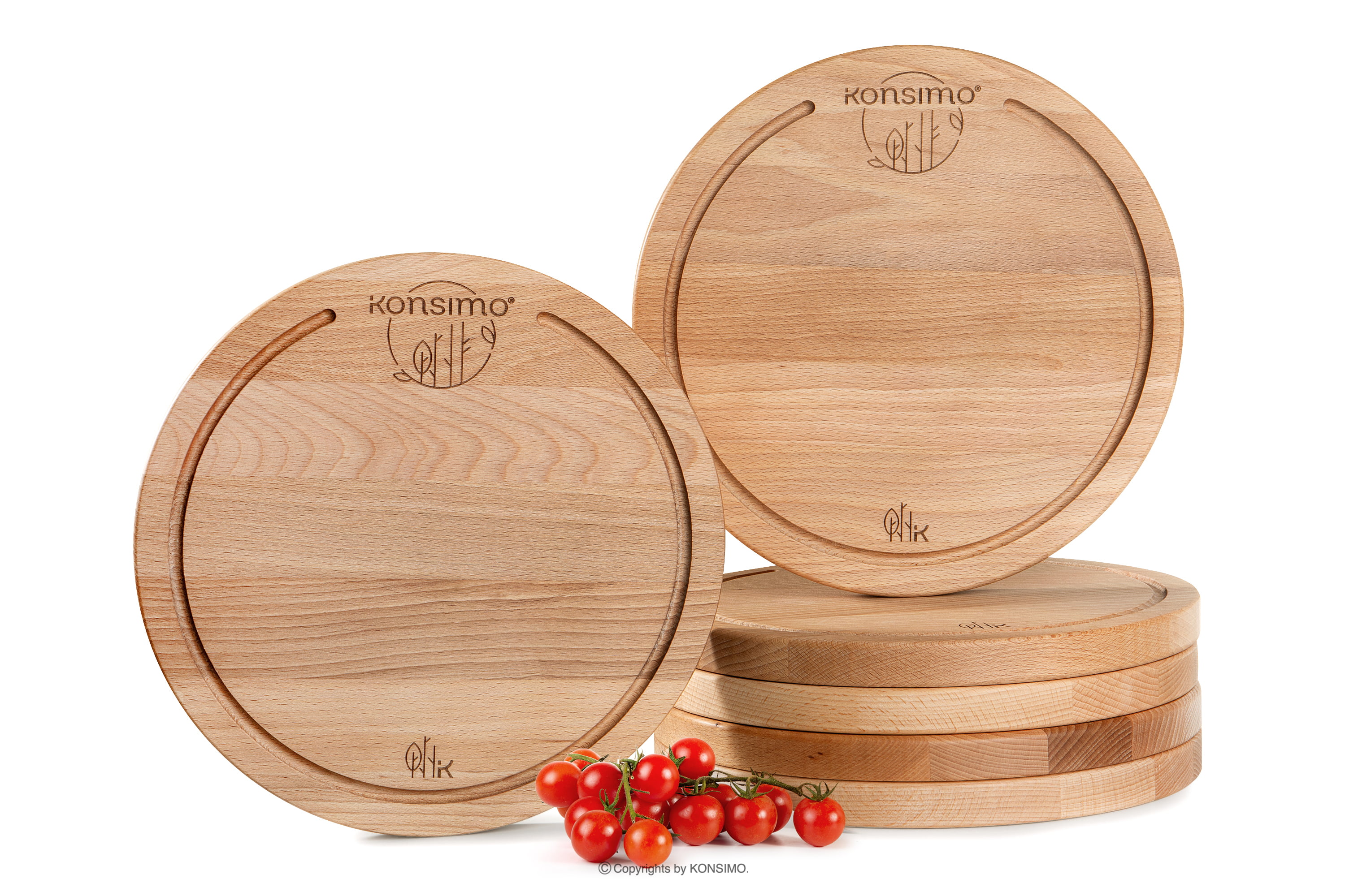 Das 6-teilige Schneidebrett-Set aus Buchenholz ist nicht nur praktisch im Gebrauch, sondern dient auch als Design-Accessoire zum Servieren von Snacks oder Gerichten. Seine runde Form aus hochwertigem Buchenholz verleiht ihm Eleganz, aber auch Langlebigkeit und Stärke. Dadurch ist es ideal zum Schneiden verschiedener Produkte geeignet, ohne dass die Messer stumpf werden.