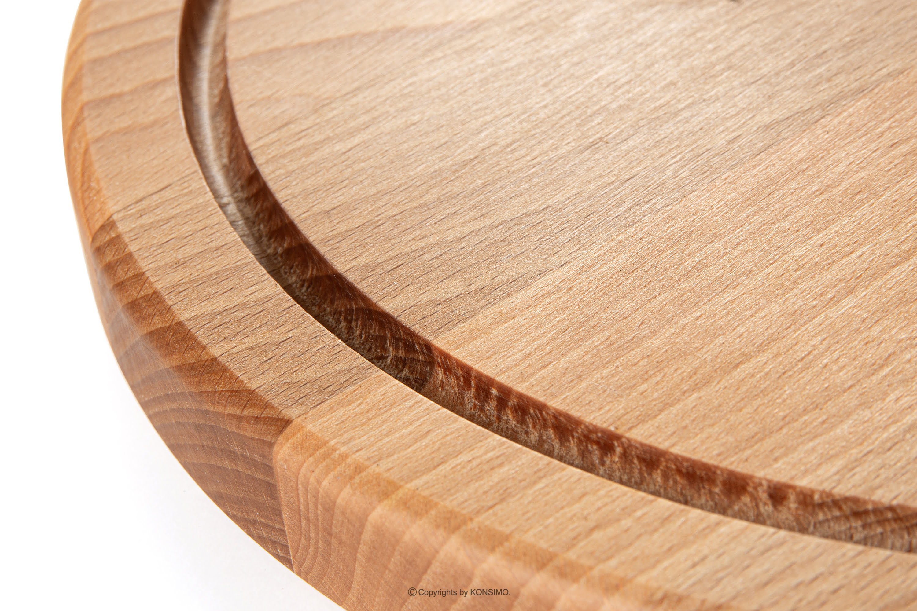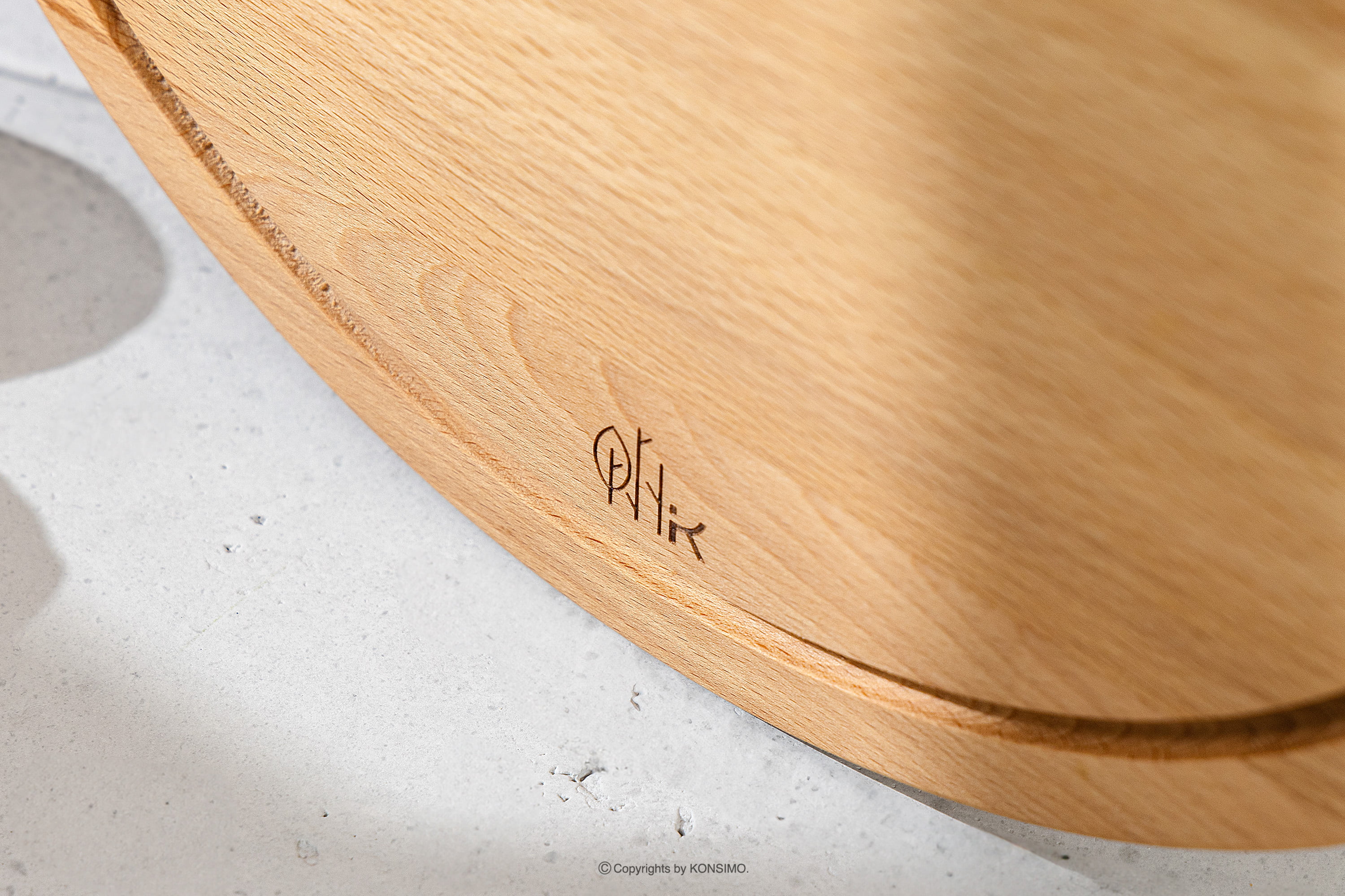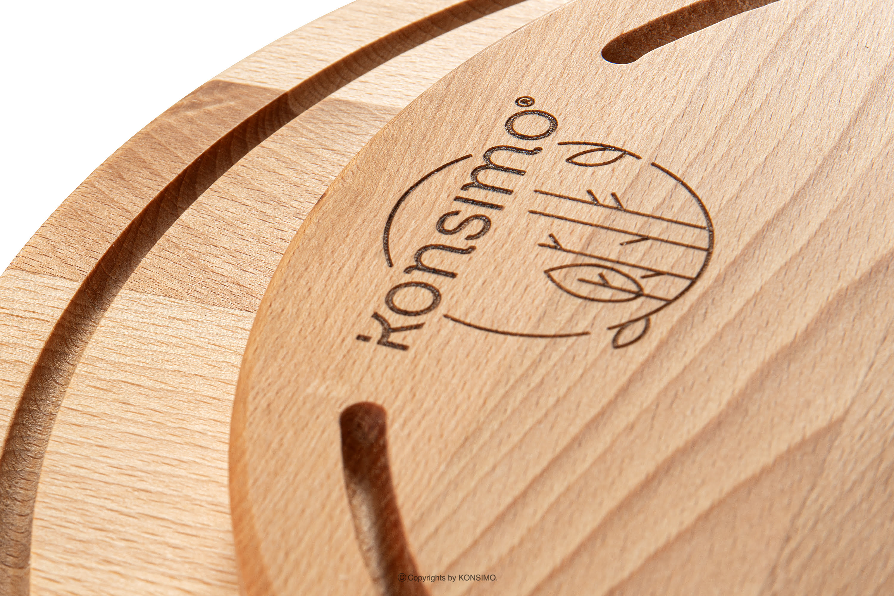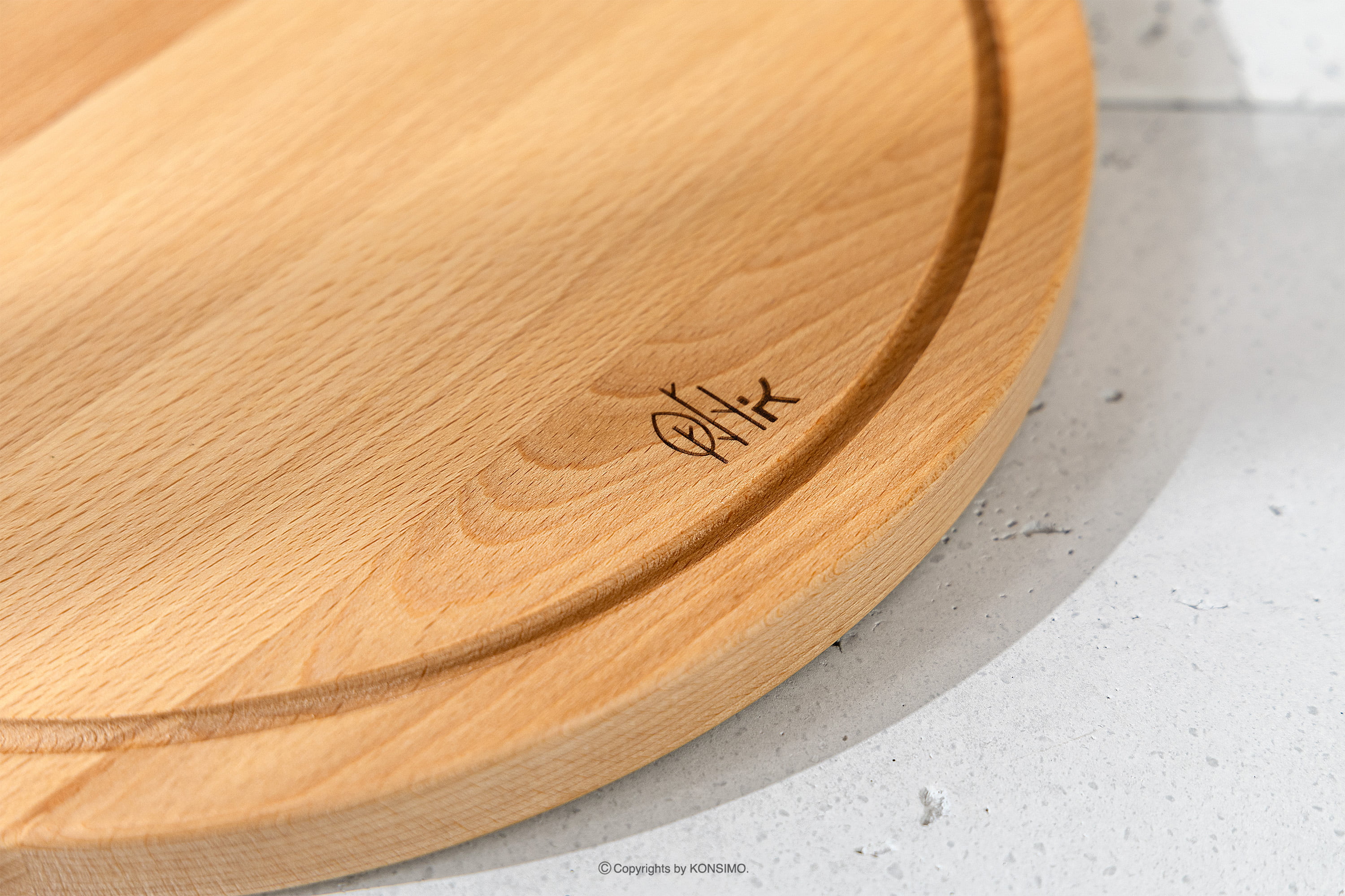 Das geölte Buchenholz verleiht dem Brett eine natürliche, warme Ausstrahlung, die sich perfekt in jede Einrichtung einfügt. Das Buchenholz, das aus FSC-zertifizierten Quellen stammt, sorgt dafür, dass das Brett nicht nur ästhetisch ansprechend, sondern auch umweltfreundlich ist. Die gefräste Rille am Rand dient dazu, Säfte aufzufangen, damit sie nicht auf die Tischplatte tropfen.