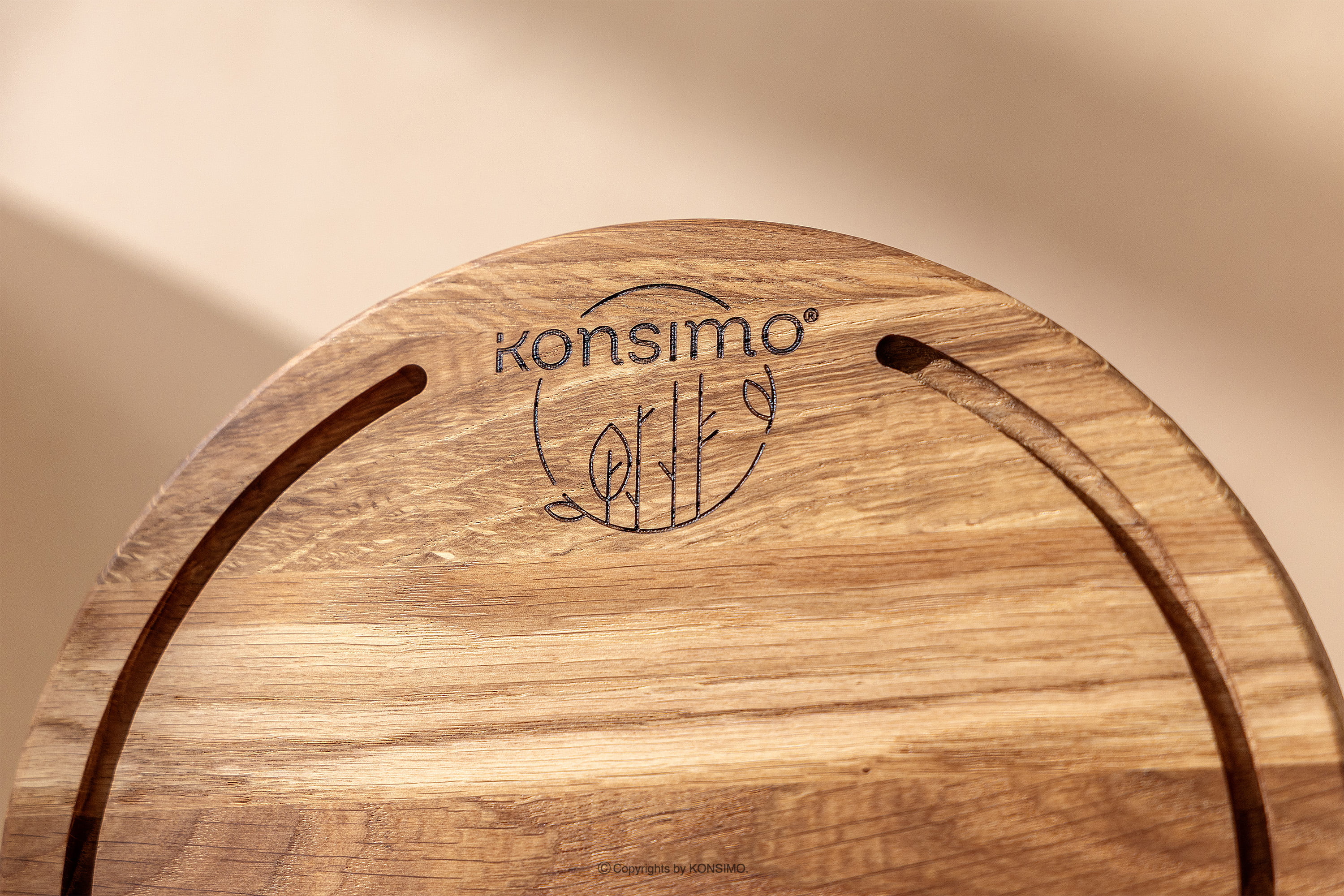 Das geölte Eichenholz verleiht dem Brett eine natürliche, warme Ausstrahlung, die sich perfekt in jede Einrichtung einfügt. Das Eichenholz stammt aus FSC-zertifizierten Beständen und sorgt dafür, dass das Brett nicht nur ästhetisch ansprechend, sondern auch umweltfreundlich ist. Die gefräste Rille am Rand dient dazu, Säfte aufzufangen, damit sie nicht auf die Tischplatte tropfen.