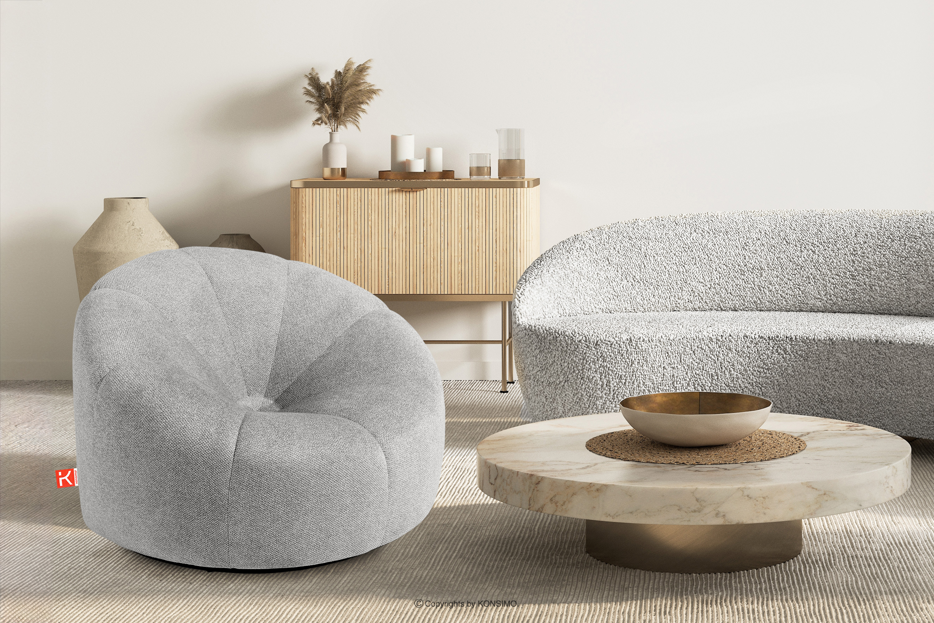 Drehsessel für das Wohnzimmer aus Chenille-Stoff hellgrau