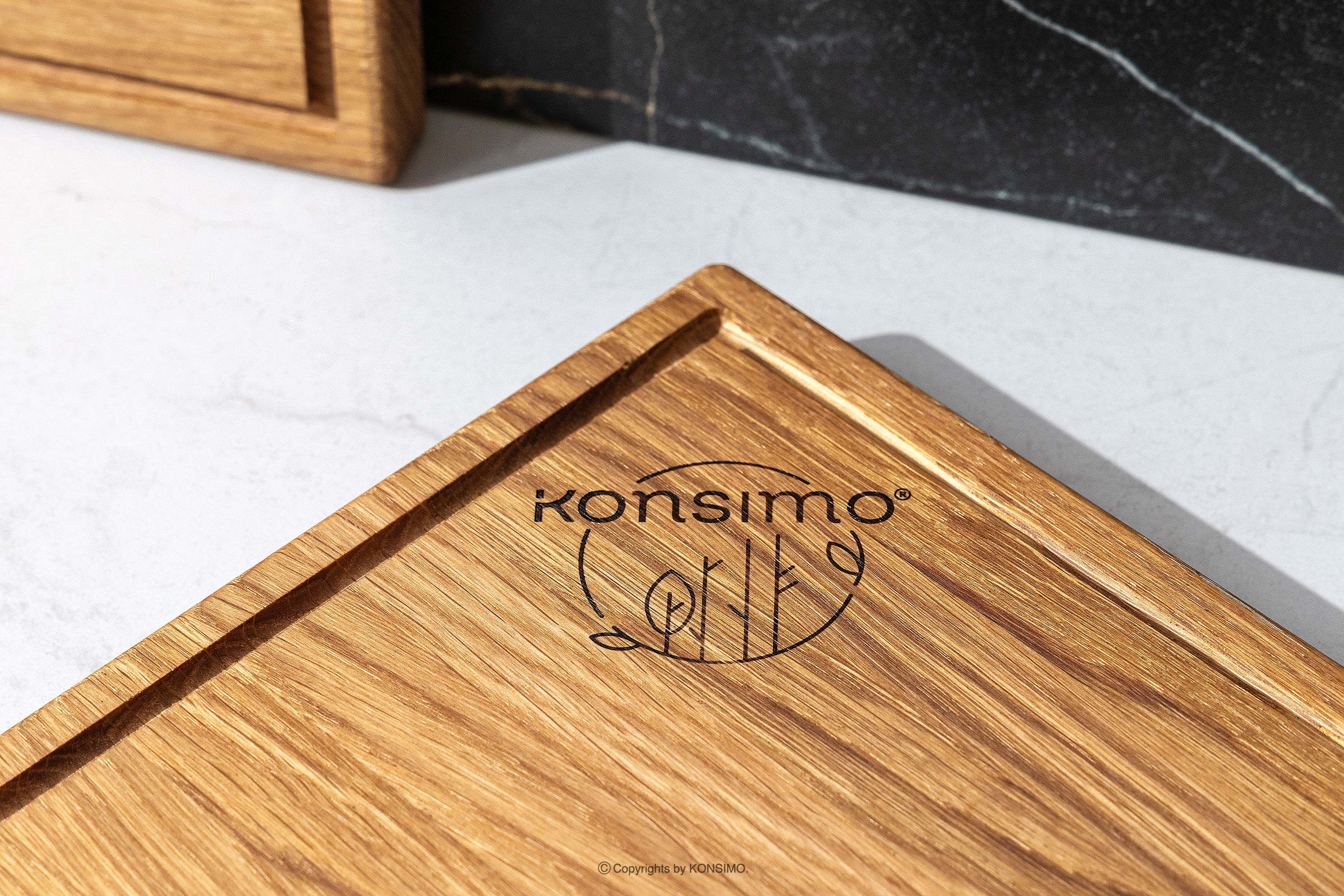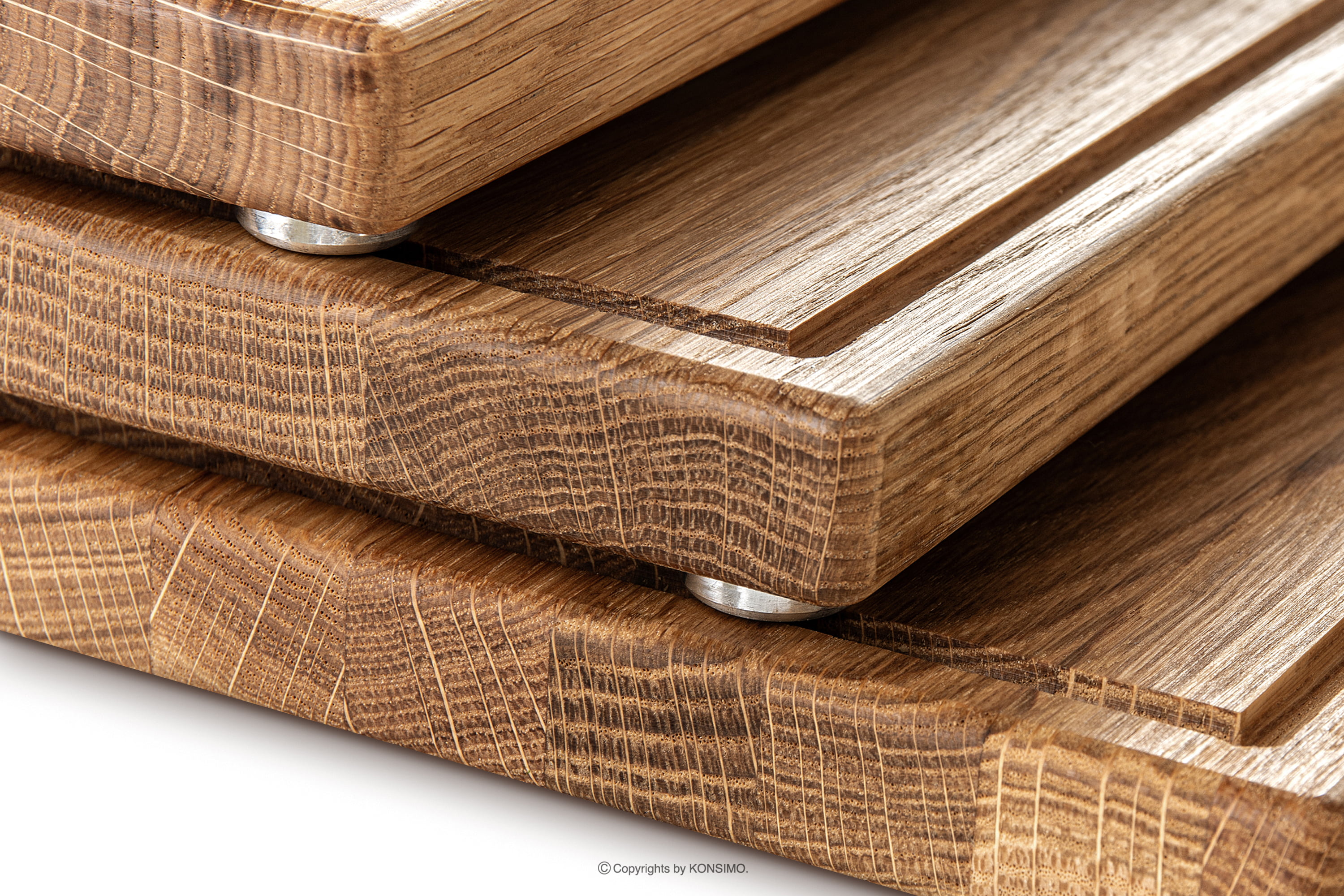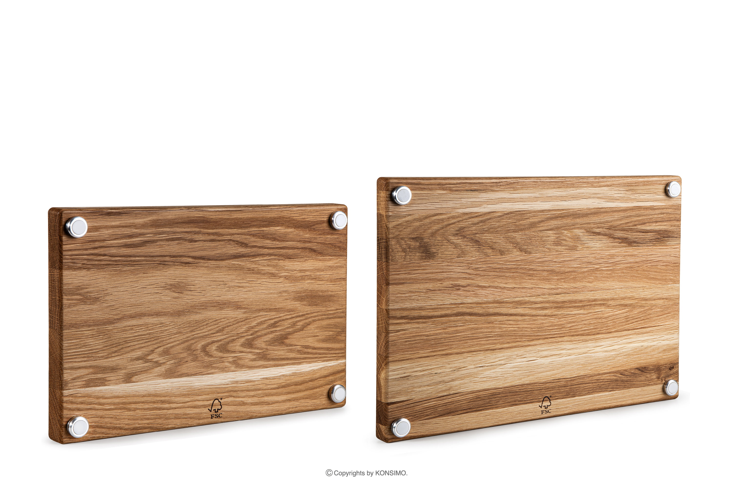 Das Set rechteckiger Schneidebretter 3tlg. aus Eichenholz ist eine Kombination aus Funktionalität, Eleganz und Langlebigkeit. Sie zeichnen sich durch ihre präzise Verarbeitung aus, dank der Handarbeit von erfahrenen Handwerkern. Die geölte Eiche verleiht ihm ein natürliches, warmes Aussehen, das sich perfekt in jede Einrichtung einfügt. Die Aluminiumfüße sorgen dafür, dass das Brett nicht verrutscht und während des Gebrauchs stabil ist.