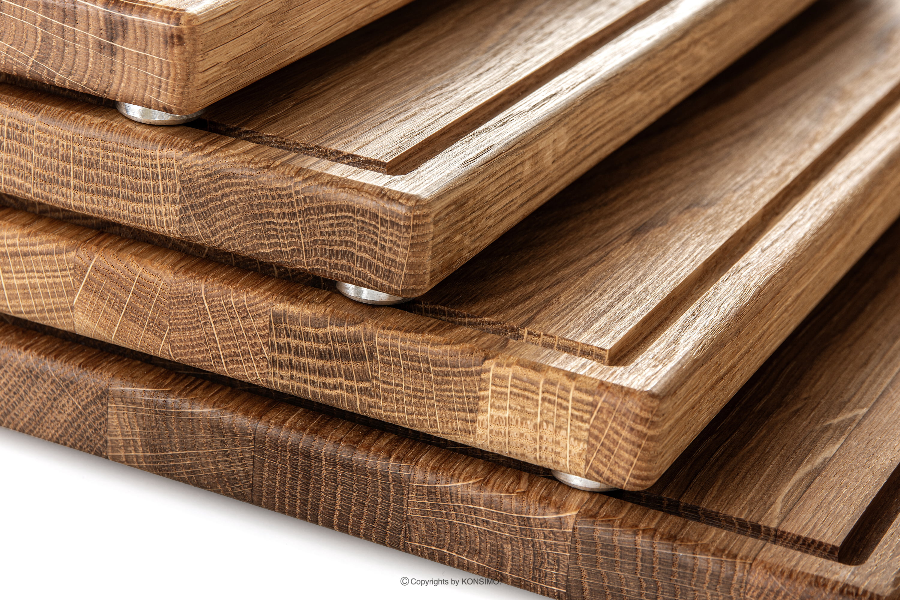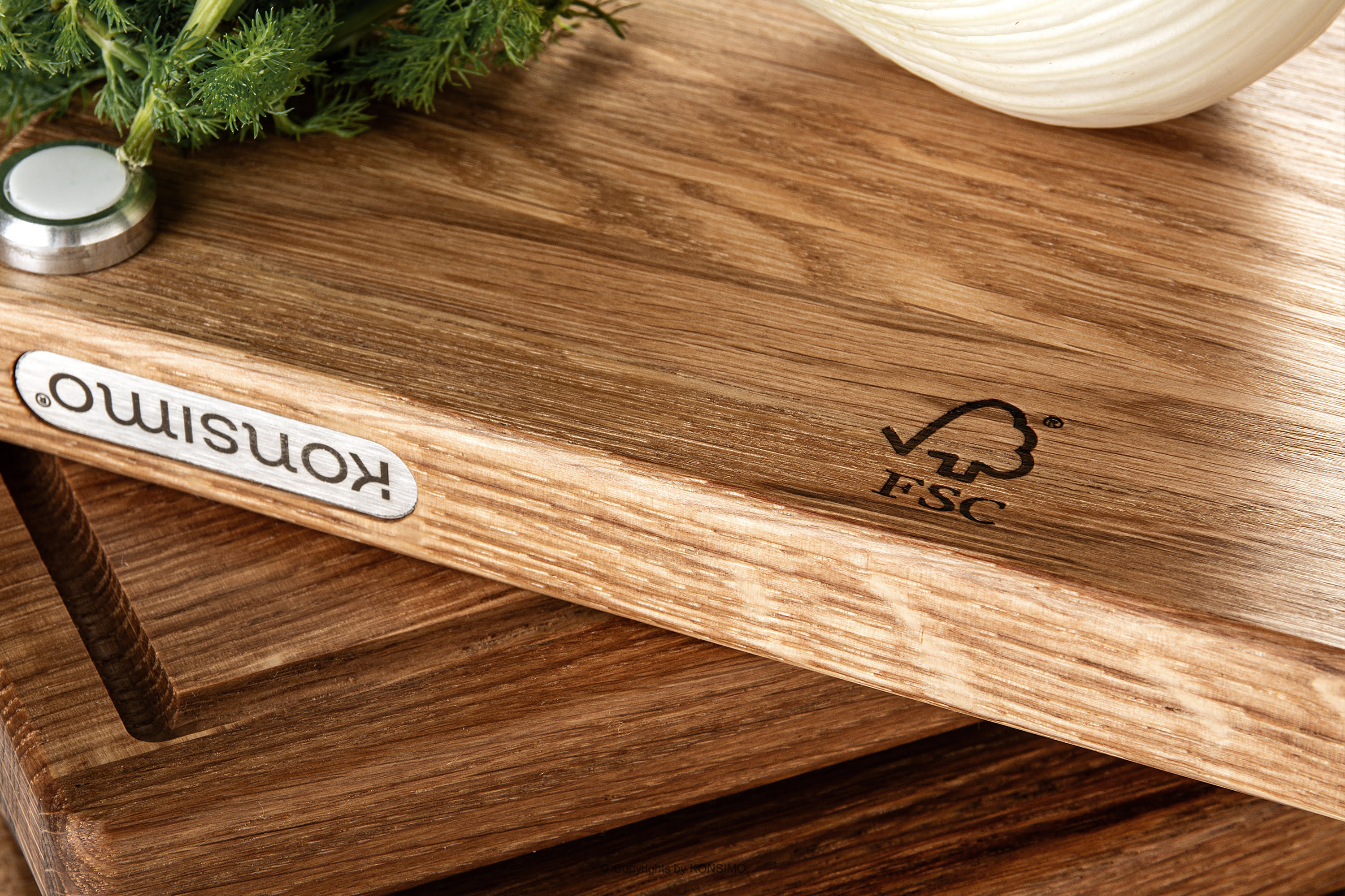 Das für die Herstellung verwendete Holz ist abgelagert und auf 8 % Feuchtigkeit getrocknet. Das sorgt dafür, dass Ihre Messer nicht so schnell stumpf werden wie bei Brettern aus anderen Rohstoffen. Das Eichenholz stammt aus FSC-zertifizierten Quellen und ist somit nicht nur ästhetisch ansprechend, sondern auch umweltfreundlich.