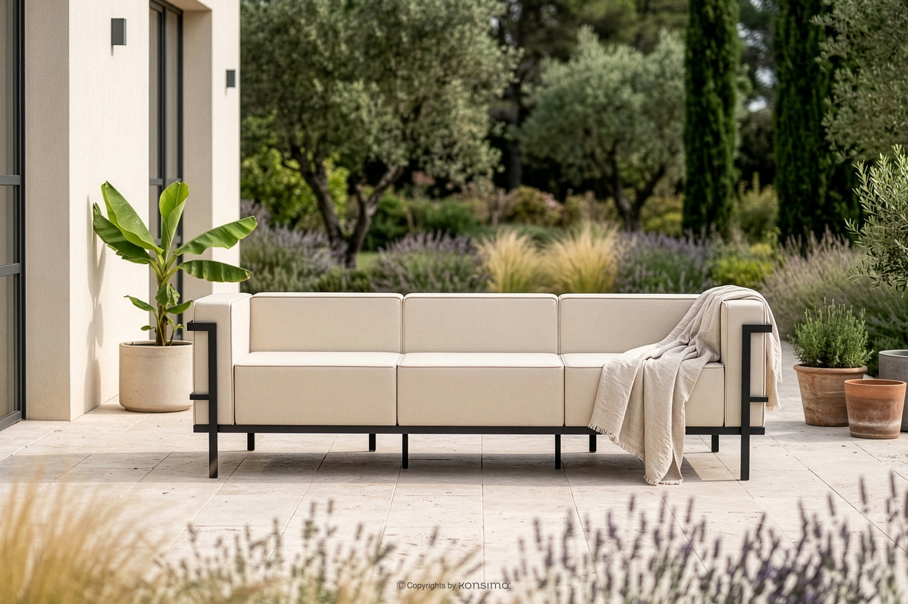 Das moderne Gartensofa 3 auf Metallbeinen dunkelgrau/creme aus robustem Stahl verleiht Ihrem Raum nicht nur Eleganz, sondern bietet auch außergewöhnlichen Komfort. Dank des weichen Schaumstoffs von Sitz und Rückenlehne wird das Entspannen im Freien zu einem echten Vergnügen. Auf massiven, pulverbeschichteten Stahlbeinen stehend, bleibt das Möbel auch bei intensiver Nutzung stabil.