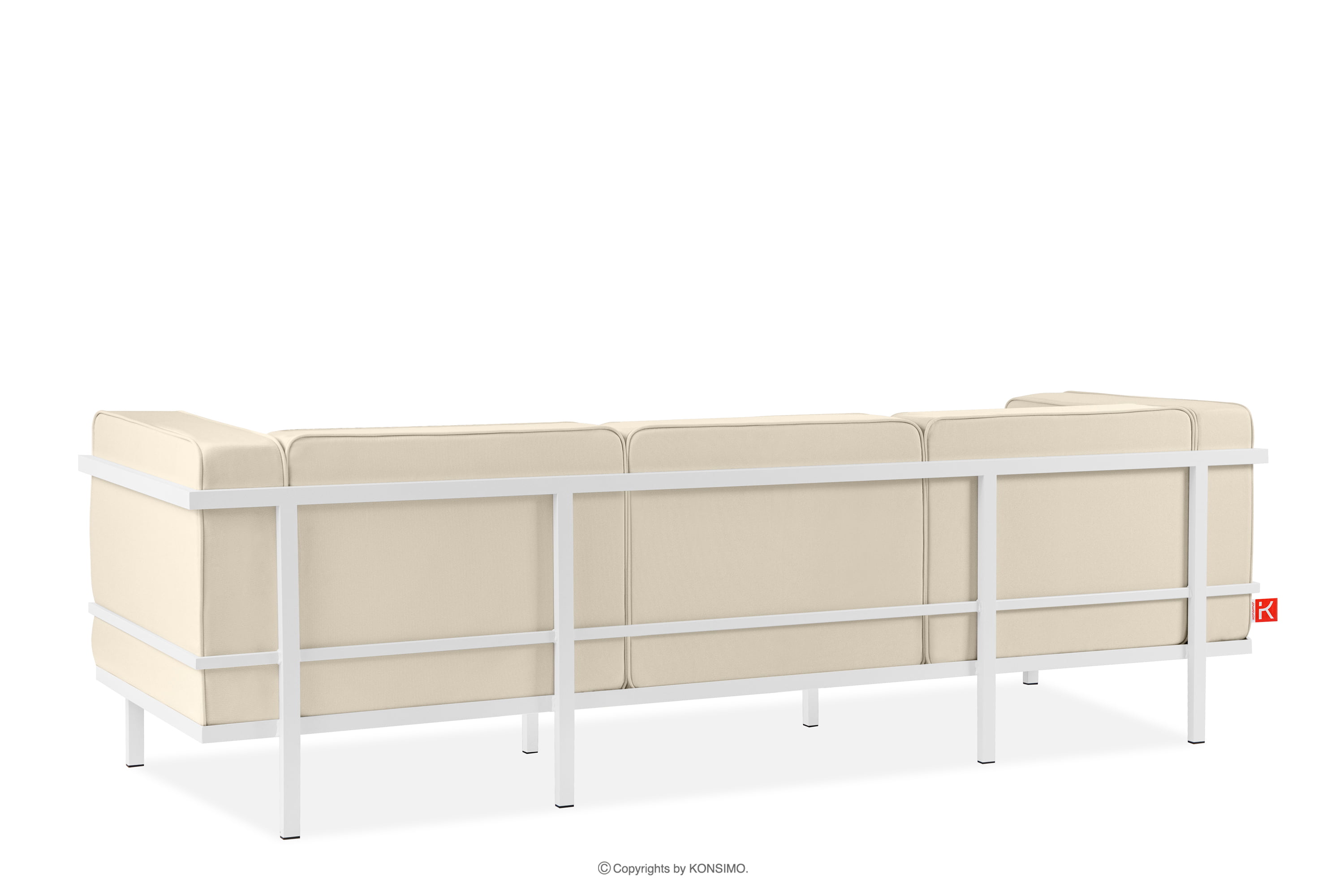 Das moderne Gartensofa 3 auf Metallbeinen weiß/creme ist aus strapazierfähigem Stahl gefertigt und verleiht Ihrem Raum nicht nur Eleganz, sondern bietet auch außergewöhnlichen Komfort. Dank des weichen Schaumstoffs von Sitz und Rückenlehne wird das Entspannen im Freien zu einem echten Vergnügen. Auf soliden, pulverbeschichteten Stahlbeinen stehend, bleibt das Möbel auch bei intensiver Nutzung stabil.