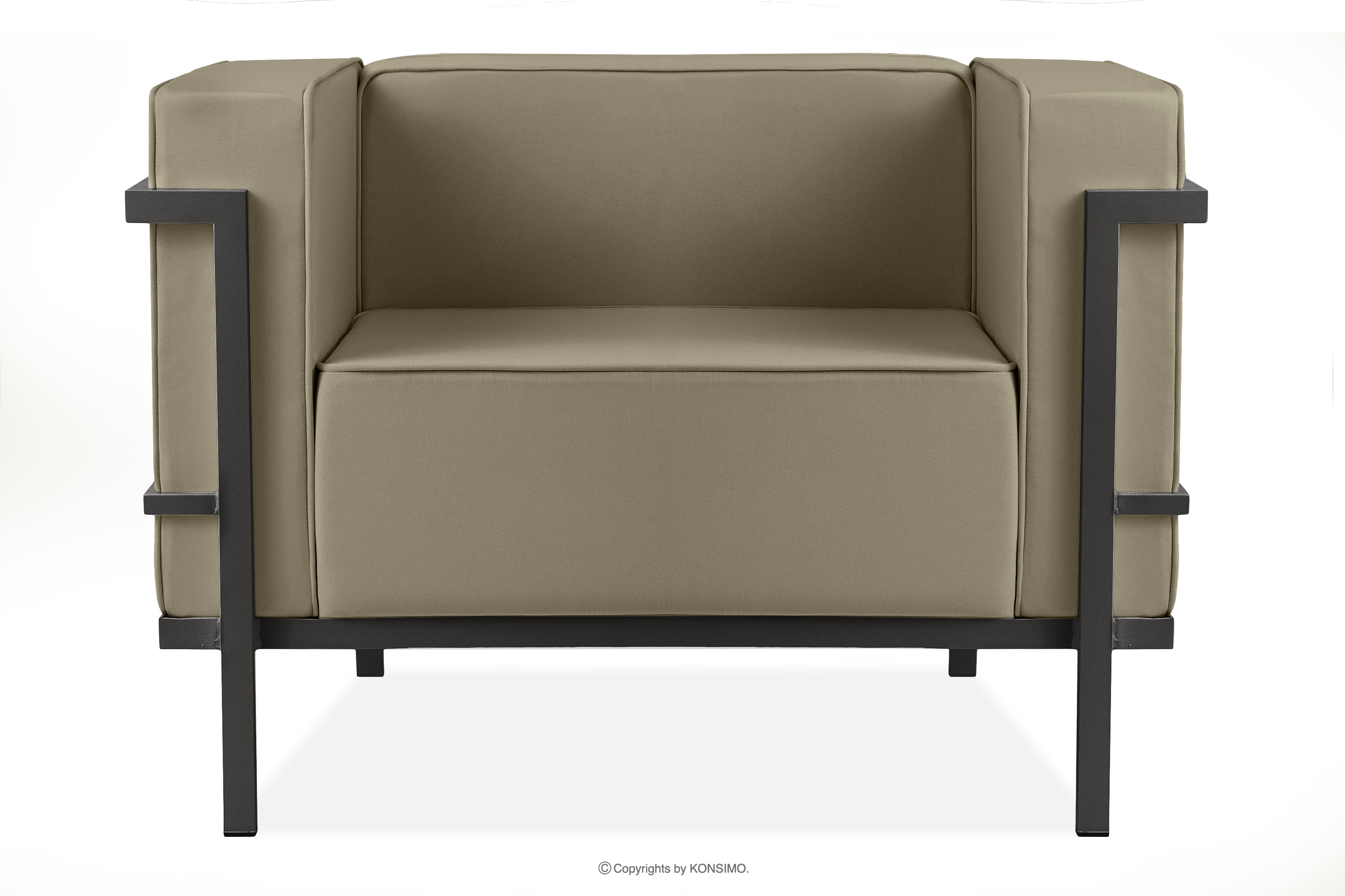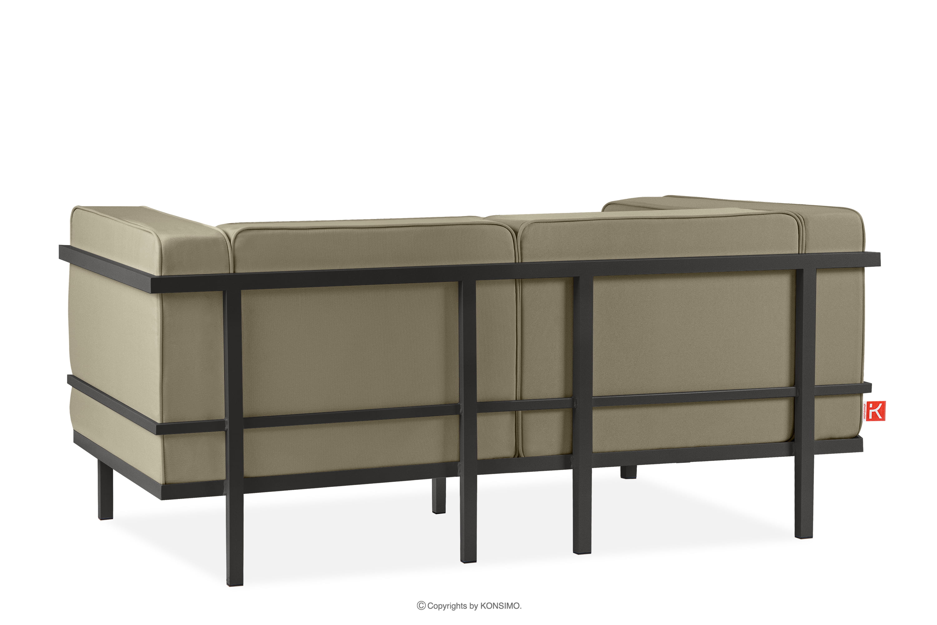 Das dunkelgrau/beigefarbene Gartenmöbelset (1.1.2.1) aus robustem dunkelgrau/hellgrauem Stahl auf Metallfüßen verleiht dem Raum nicht nur Eleganz, sondern bietet auch außergewöhnlichen Komfort. Dank des weichen Schaumstoffs von Sitz und Rückenlehne wird das Entspannen im Freien zu einem echten Vergnügen. Das auf massiven, pulverbeschichteten Stahlbeinen stehende Möbel bleibt auch bei intensiver Nutzung stabil.