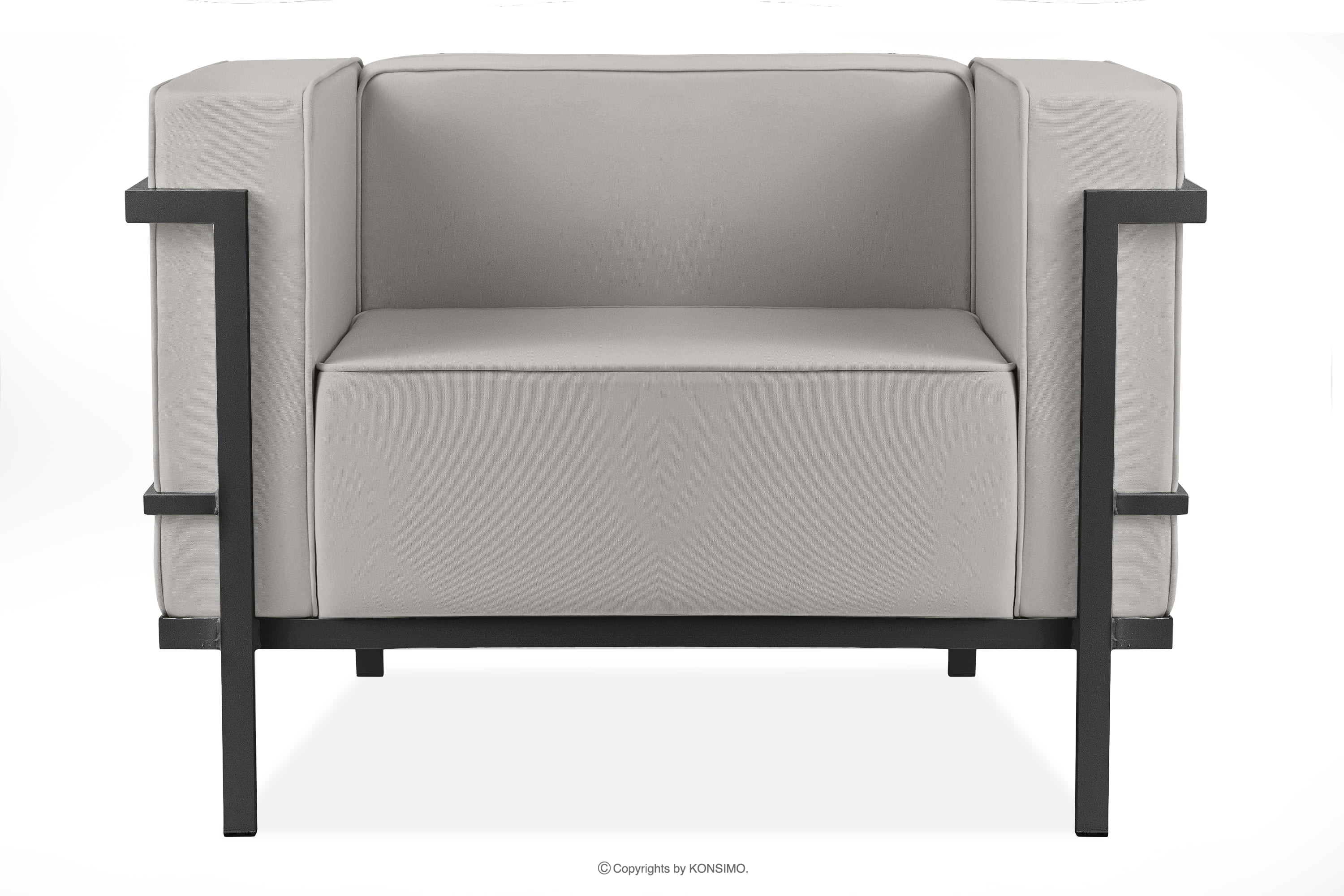 Das dunkelgrau/hellgraue Gartenmöbel-Set (1.1.2.1) aus robustem dunkelgrau/hellgrauem Stahl auf Metallbeinen verleiht dem Raum nicht nur Eleganz, sondern bietet auch außergewöhnlichen Komfort. Dank des weichen Schaumstoffs von Sitz und Rückenlehne wird das Entspannen im Freien zu einem echten Vergnügen. Das auf massiven, pulverbeschichteten Stahlbeinen stehende Möbel bleibt auch bei intensiver Nutzung stabil.