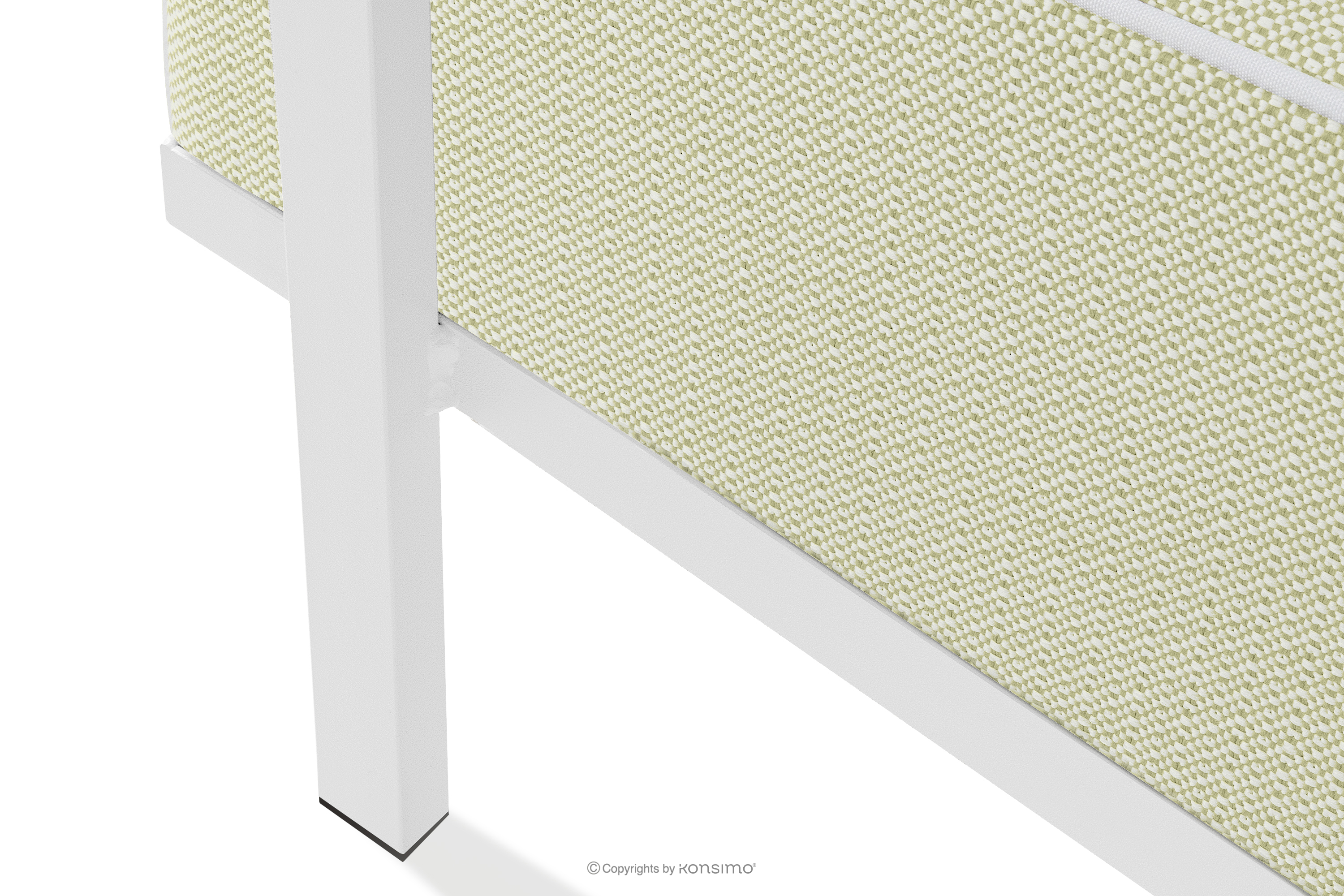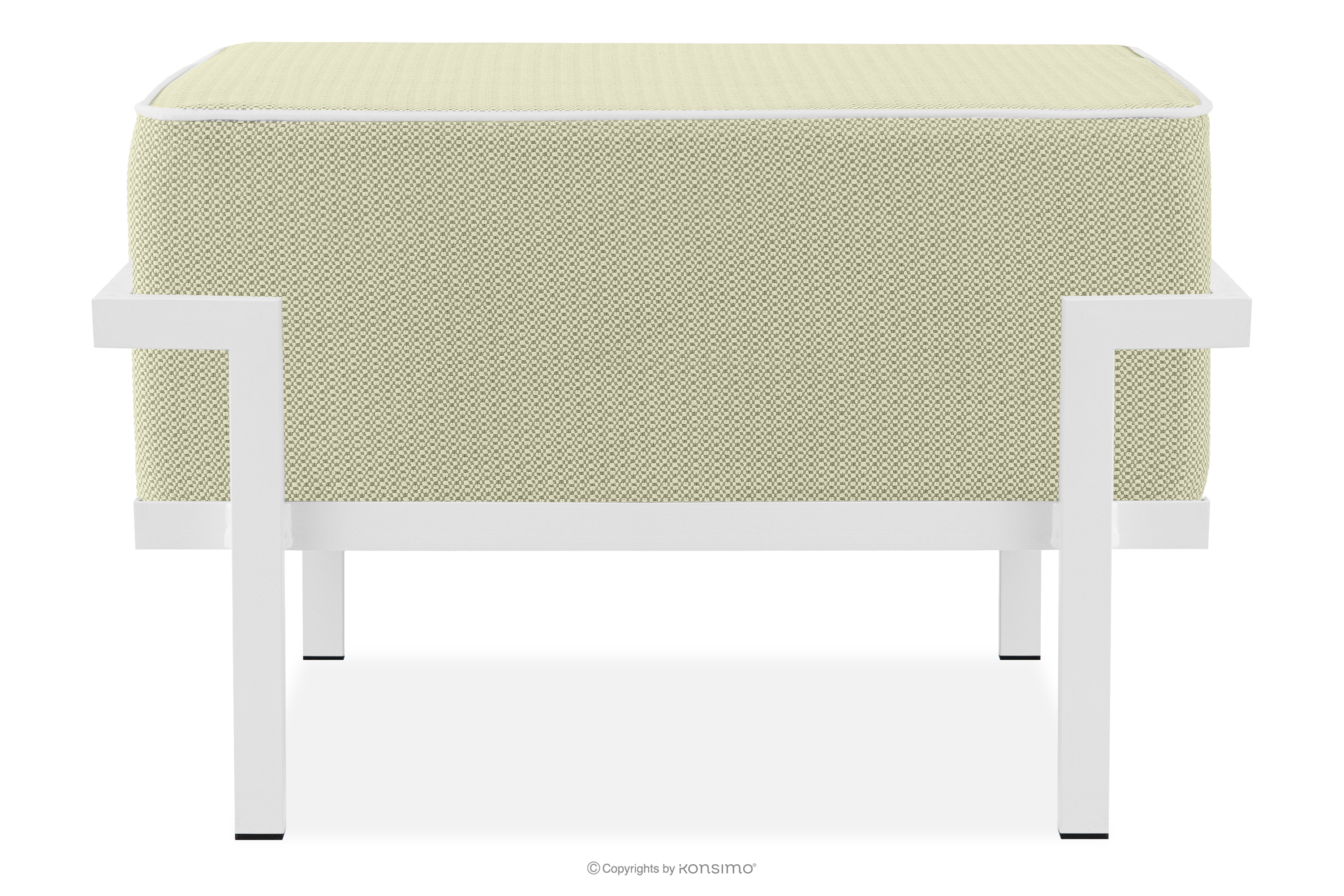 Gartenhocker auf Metallbeinen weiß/hellgrün/weiß aus strapazierfähigem Stahl gefertigt, verleiht dem Raum nicht nur Eleganz, sondern sorgt auch für außergewöhnlichen Komfort. Dank der weichen Schaumstoffpolsterung von Sitzfläche und Rückenlehne wird das Entspannen im Freien zu einem wahren Vergnügen. Das Möbelstück steht auf soliden Beinen aus pulverbeschichtetem Stahl und bleibt auch bei intensiver Nutzung stabil.
